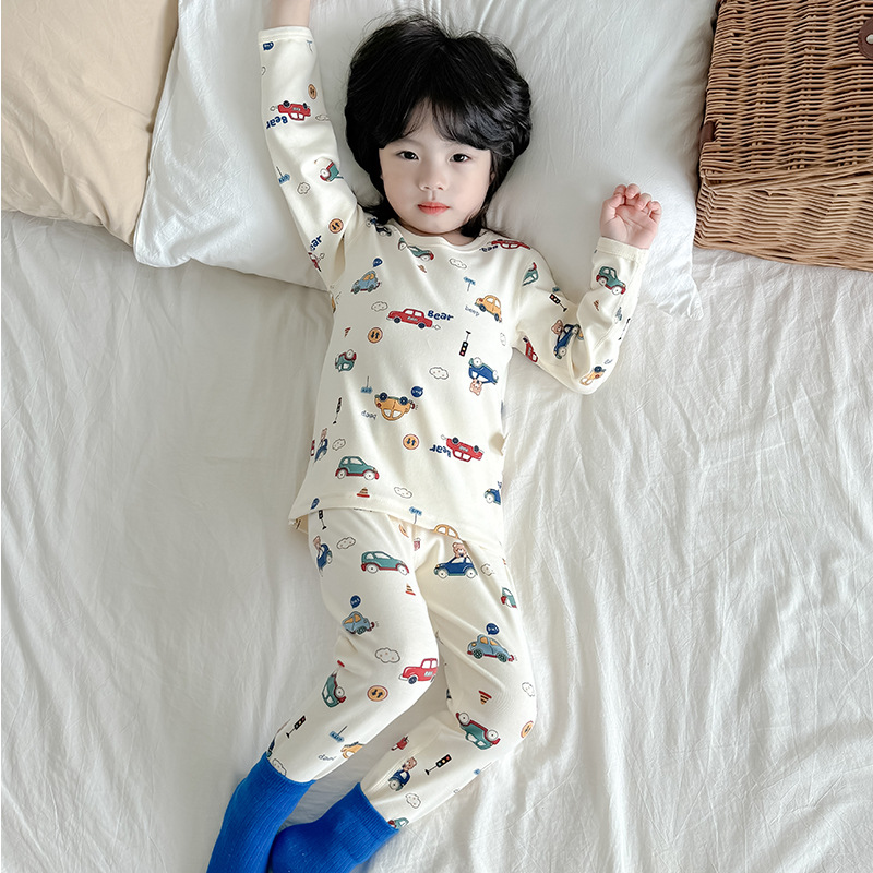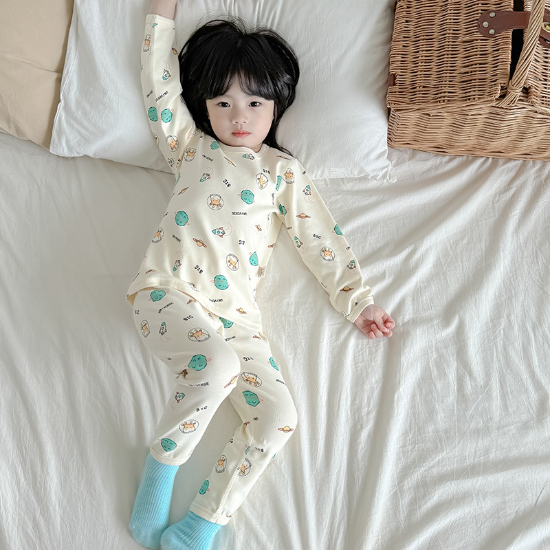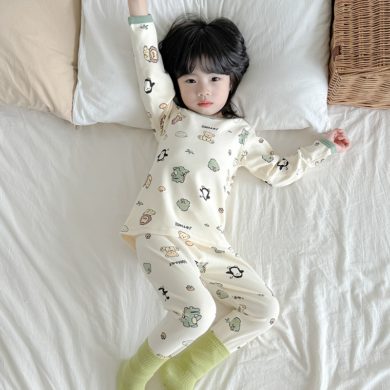 2024 년 새 소년 가을 옷과 바지 세트 여자 아기 홈 옷 어린이 열 속옷 면 중소 어린이스토어 가기
