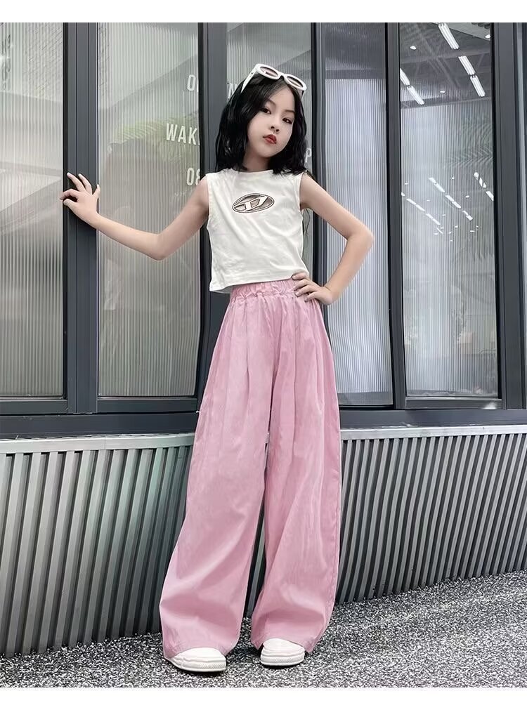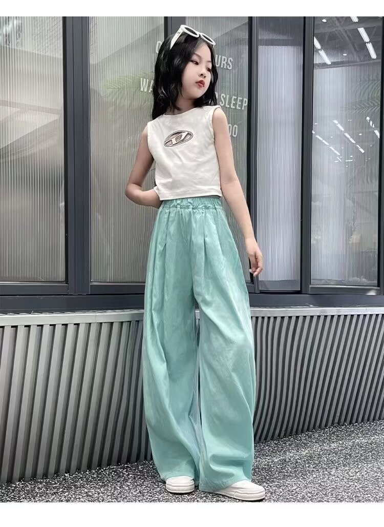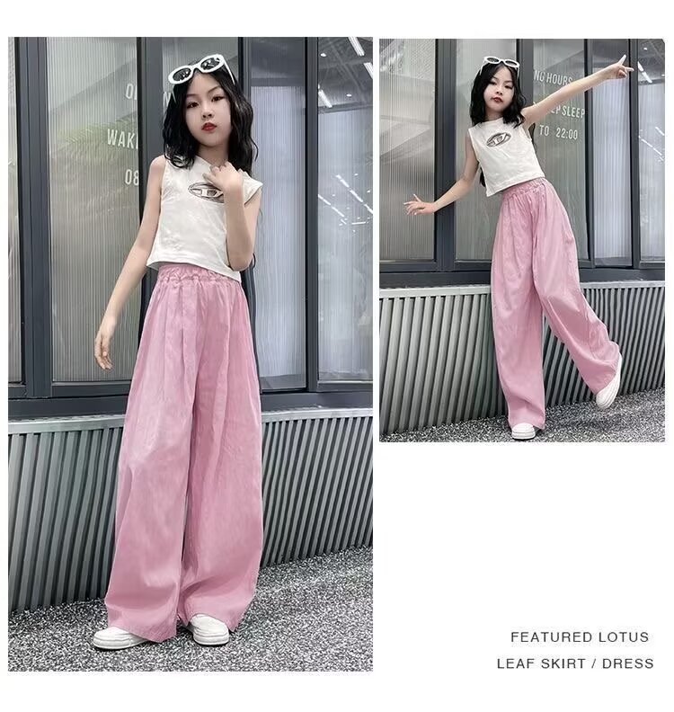 새로운 2024 여름 소녀 새로운 캐주얼 바지 시원한 느슨한 빛 통기성 긴 바지 트렌드
