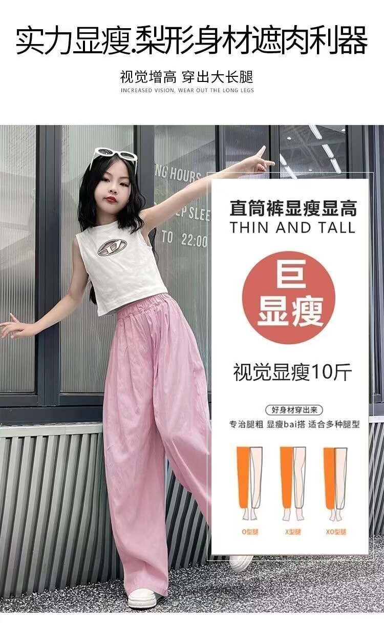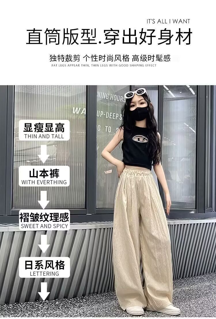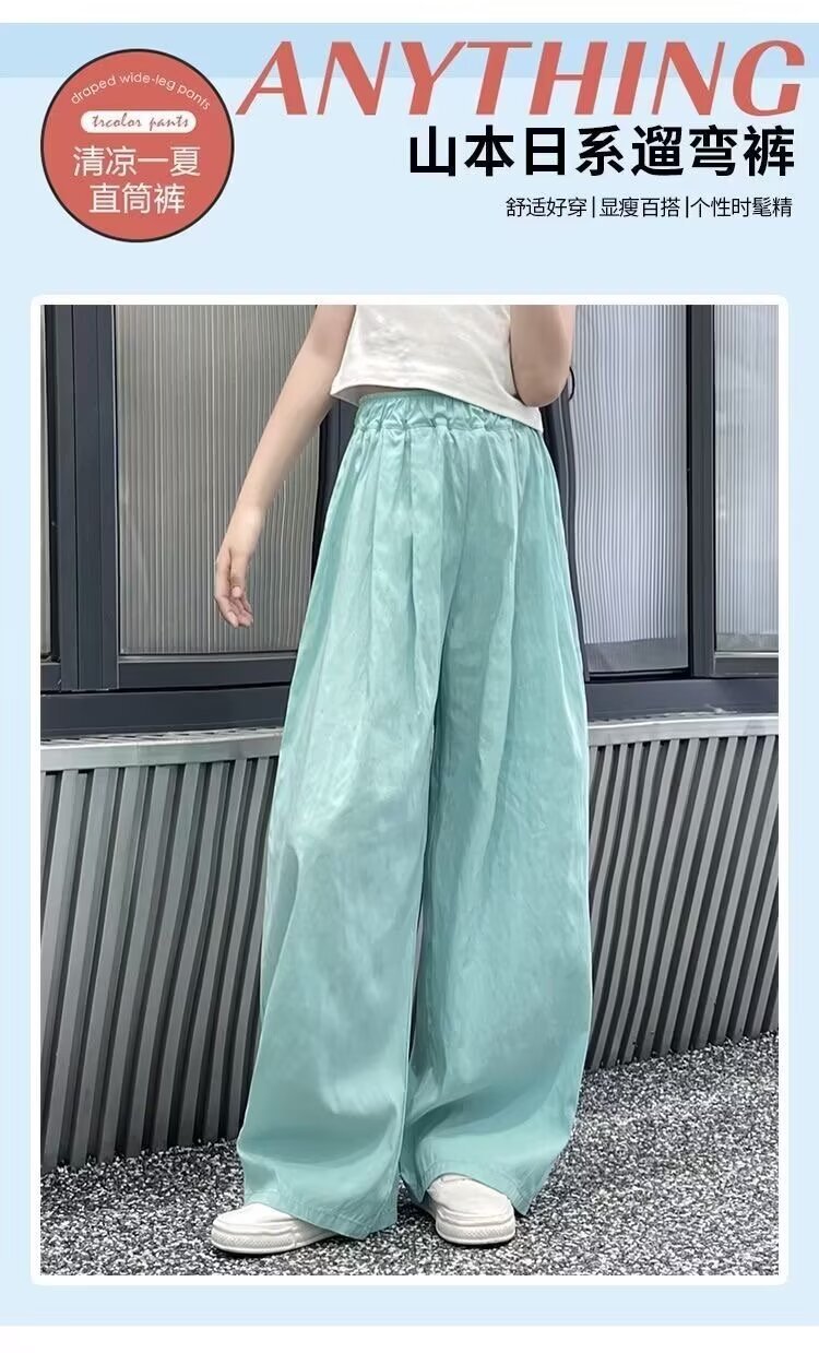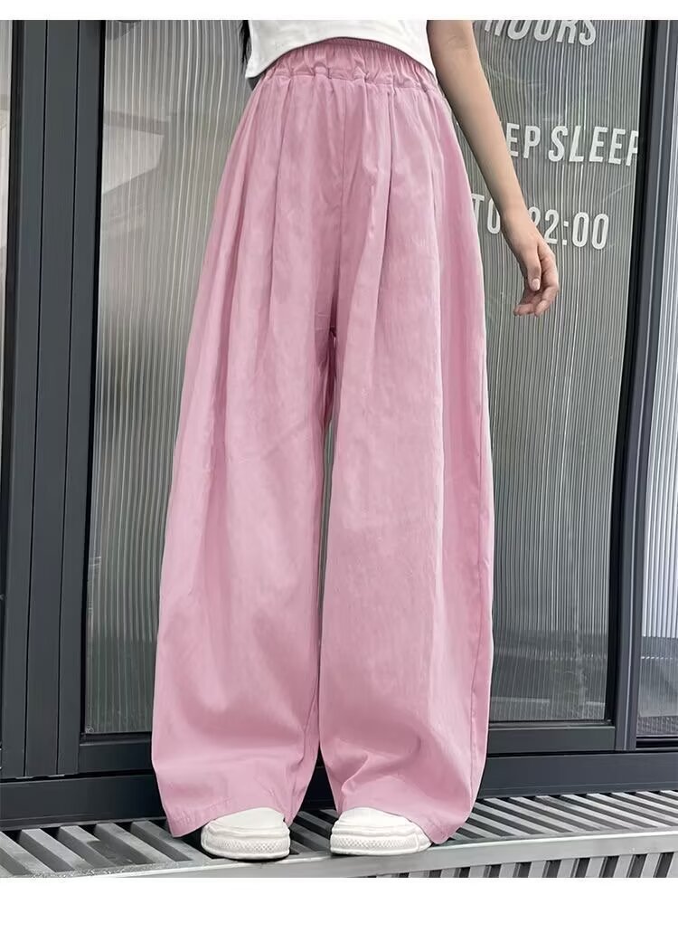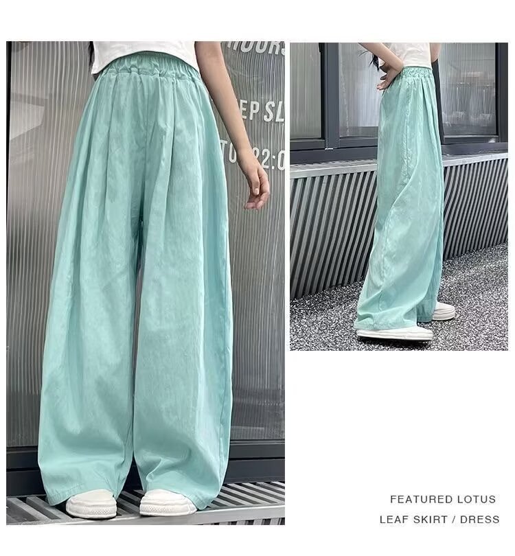 새로운 2024 여름 소녀 새로운 캐주얼 바지 시원한 느슨한 빛 통기성 긴 바지 트렌드스토어 가기