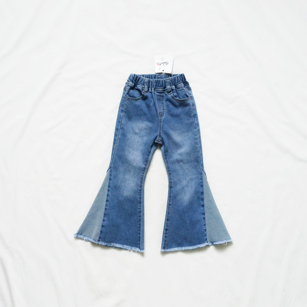 ANKRT 봄 여름 신작 여아용 신축성 있는 타이트한 플레어 팬츠 청바지 아동용 컬러 블록 데님 롱 팬츠