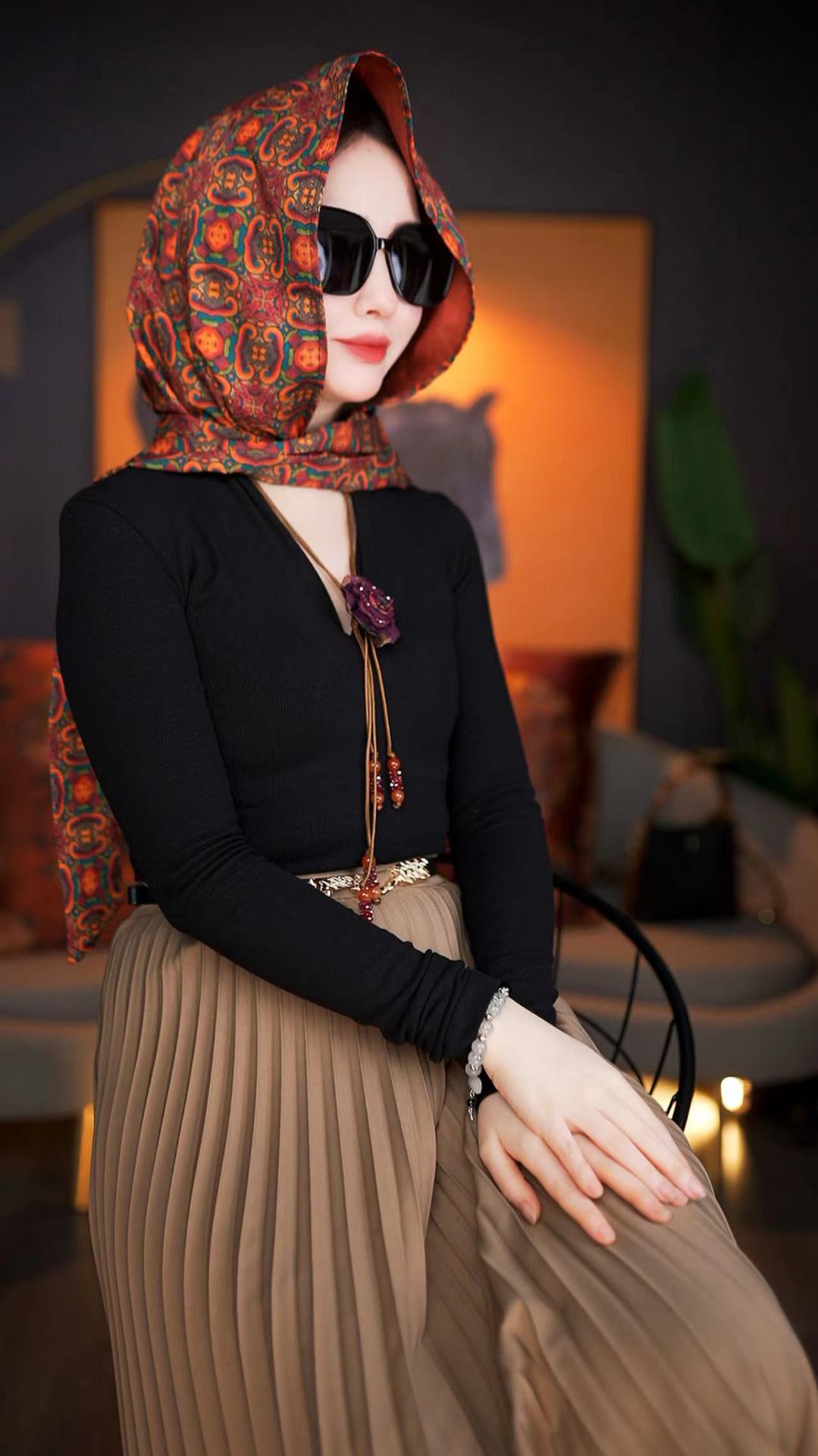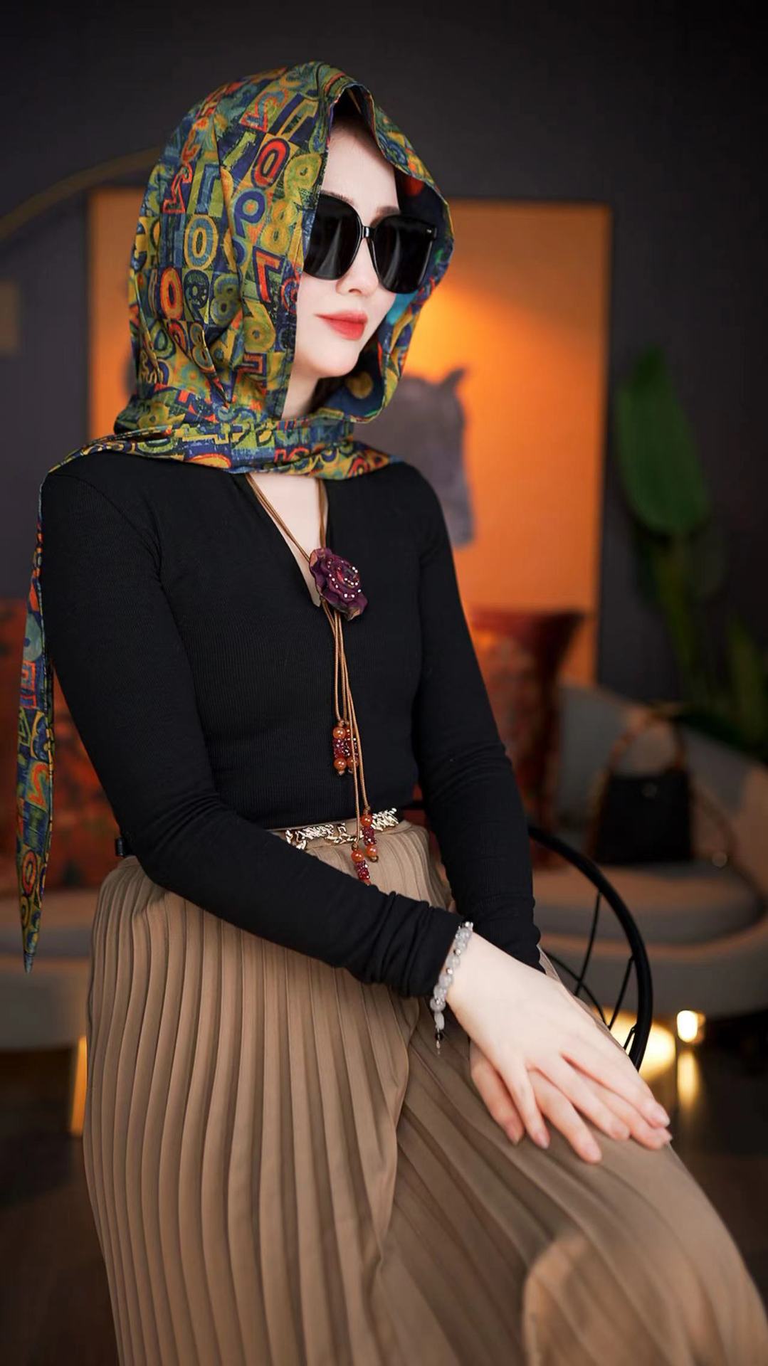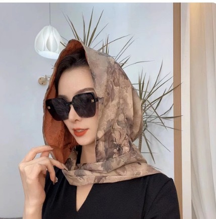 바오터우 실크 스카프 여성 후드 스카프 봄과 여름 다기능 여행 선 스크린 목도리 모든 경기 리본 얇은 헤드 스카프 모자스토어 가기