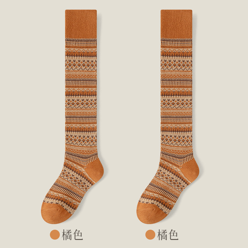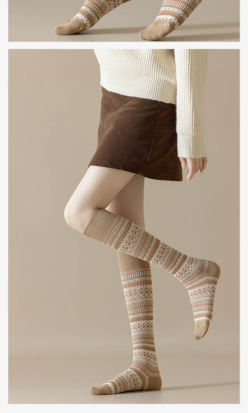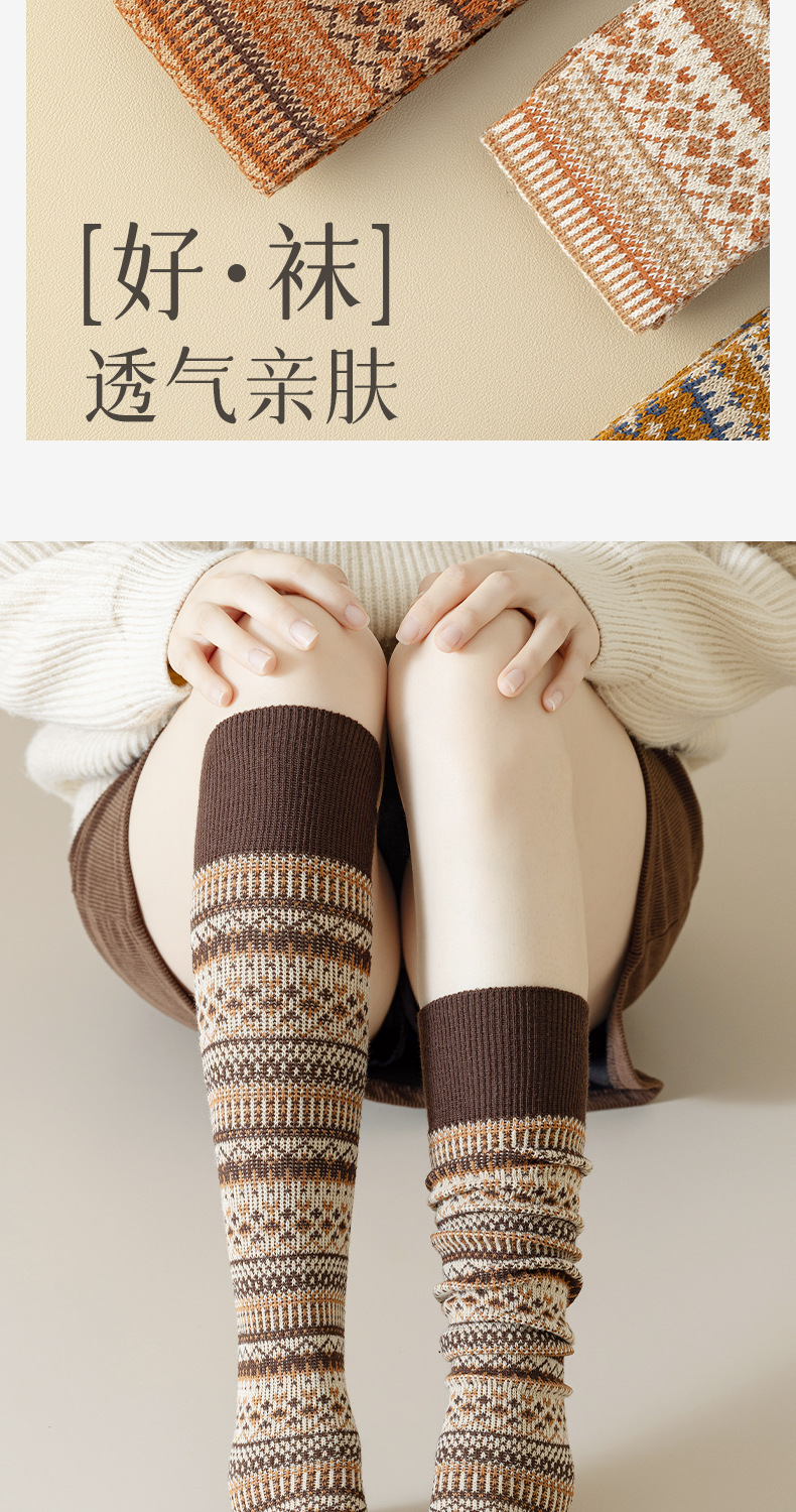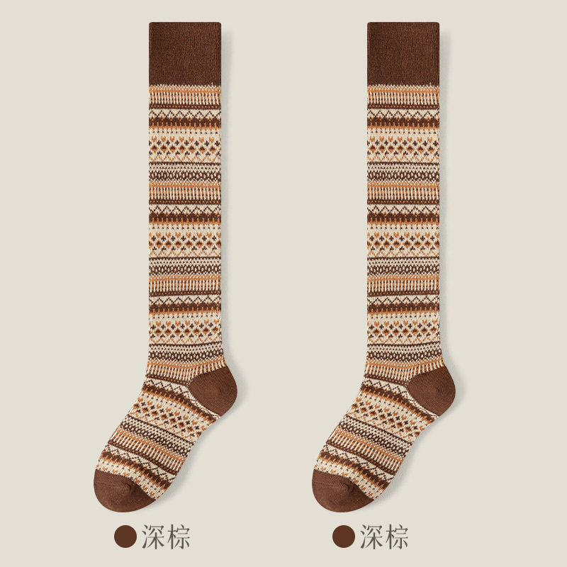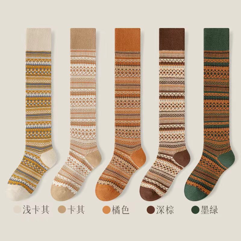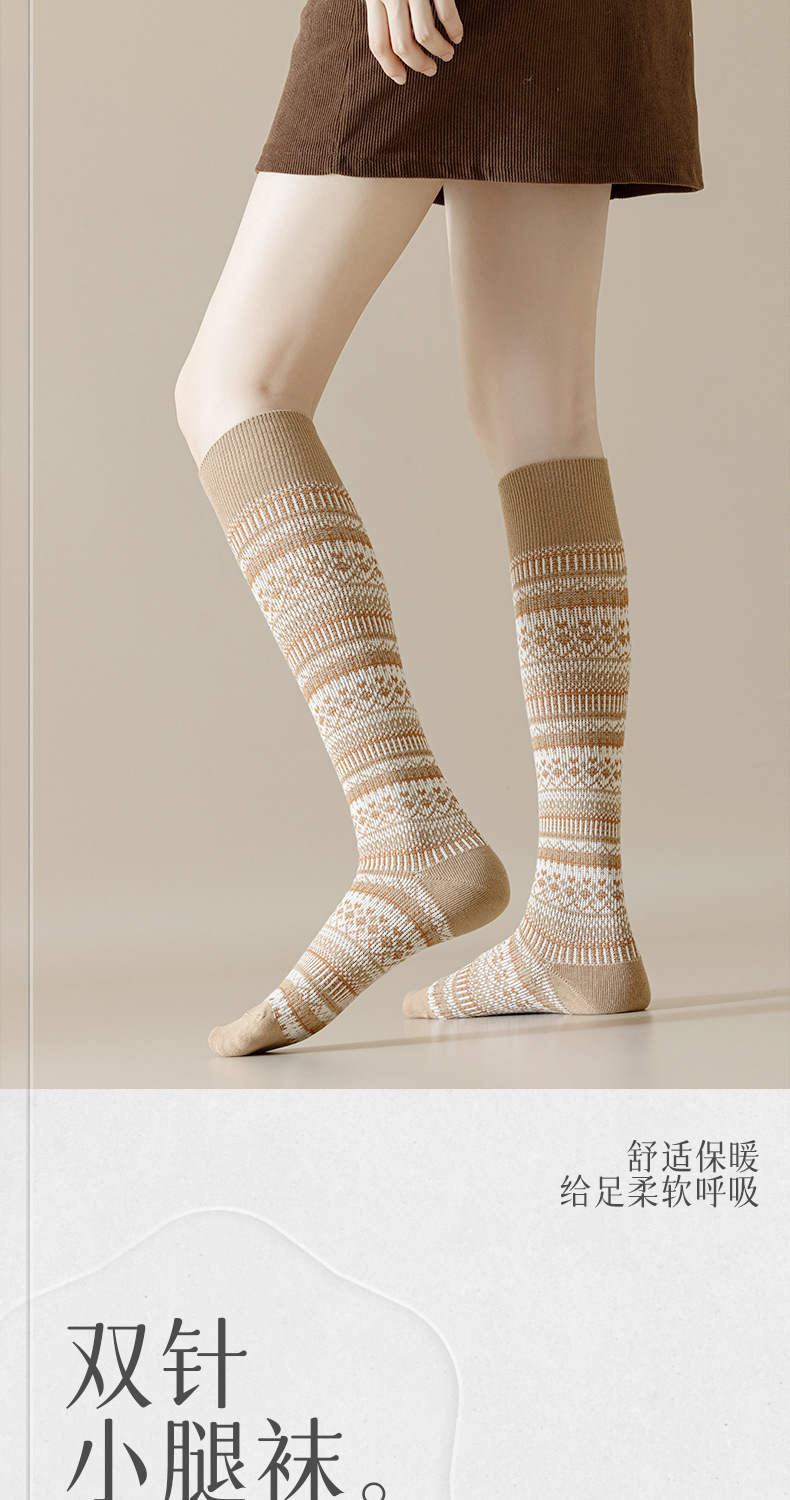 웨이브 더블 바늘 가을과 겨울 작은 다리 양말 빈티지 민족 스타일 따뜻한 양말 인터넷 유행 슬리밍 스트라이프 높은 면 양말