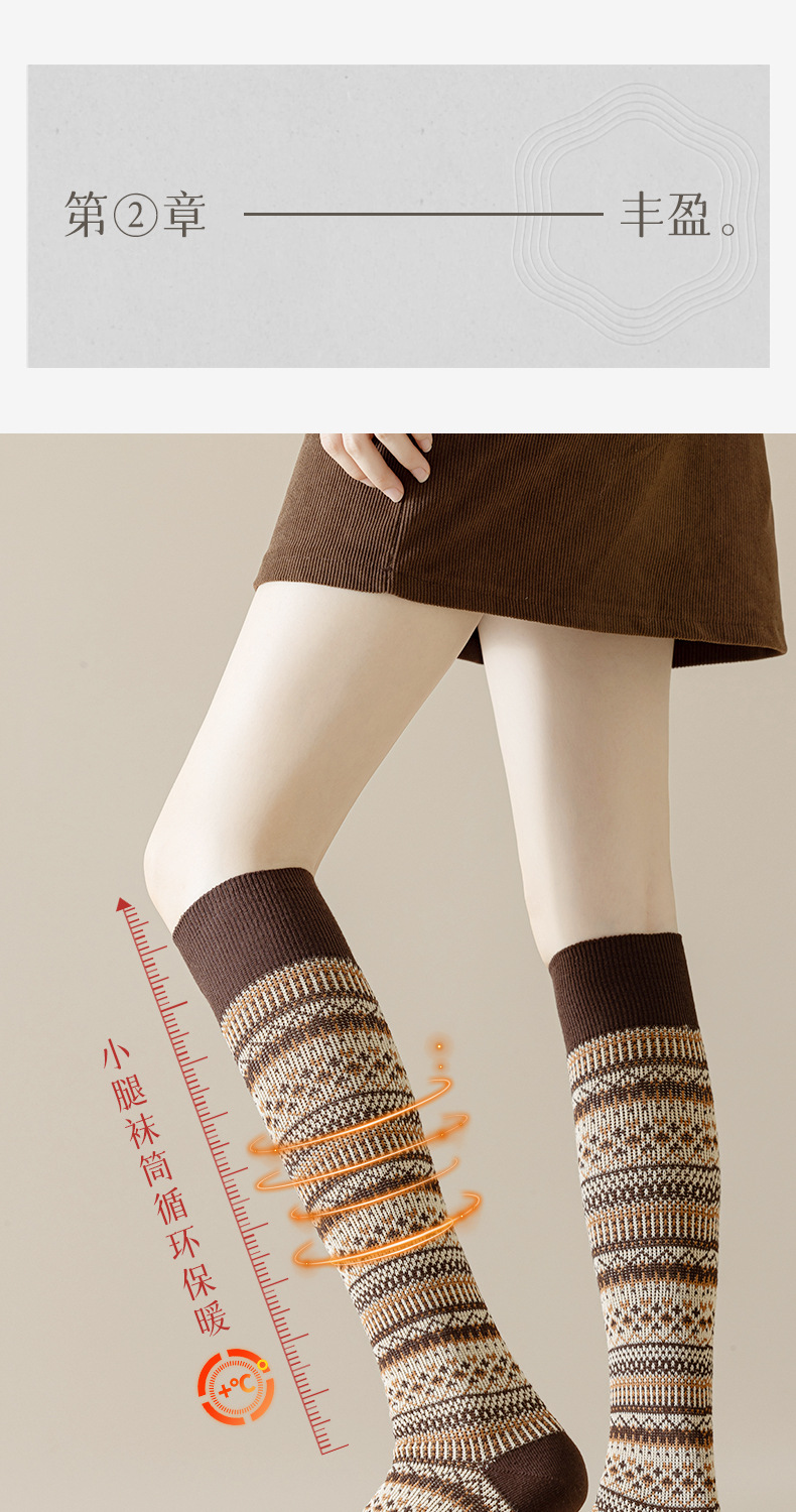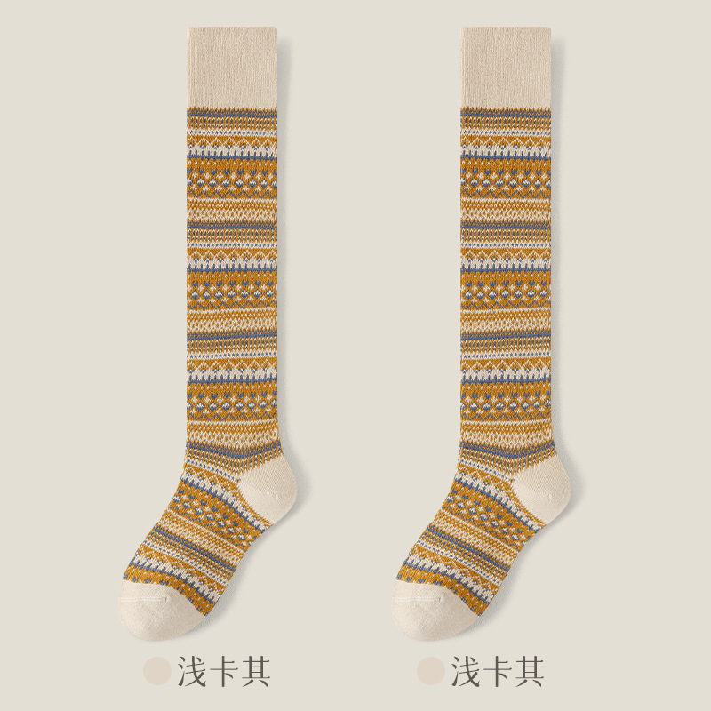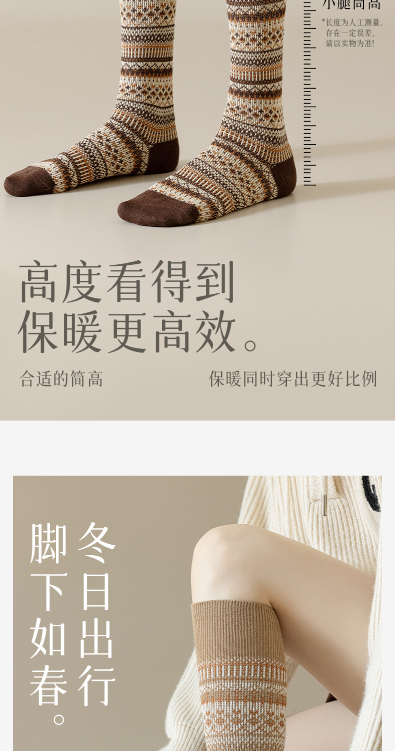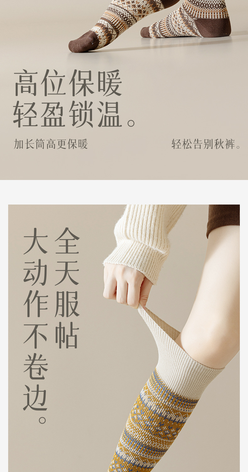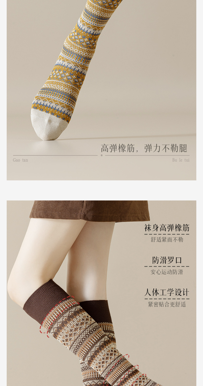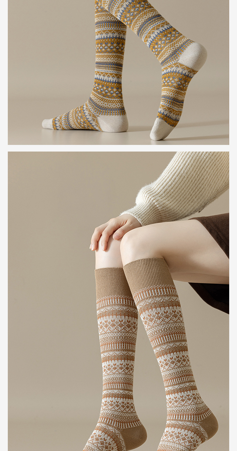 웨이브 더블 바늘 가을과 겨울 작은 다리 양말 빈티지 민족 스타일 따뜻한 양말 인터넷 유행 슬리밍 스트라이프 높은 면 양말
