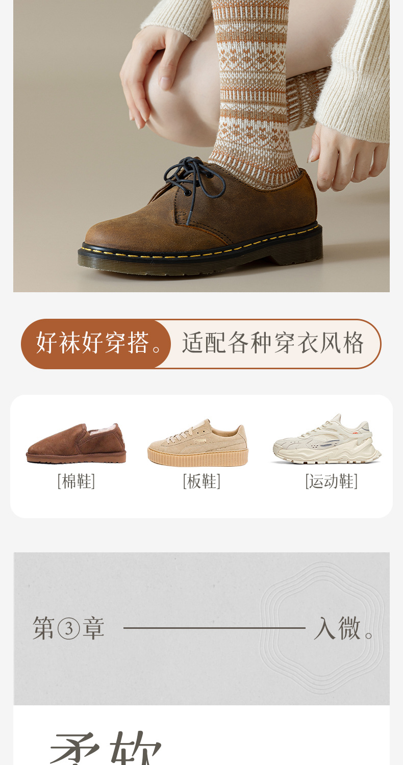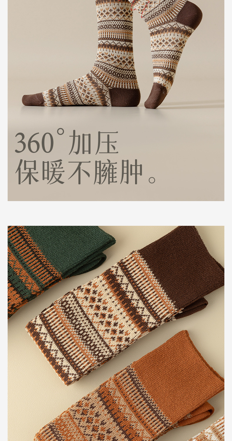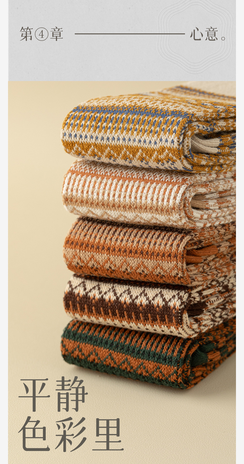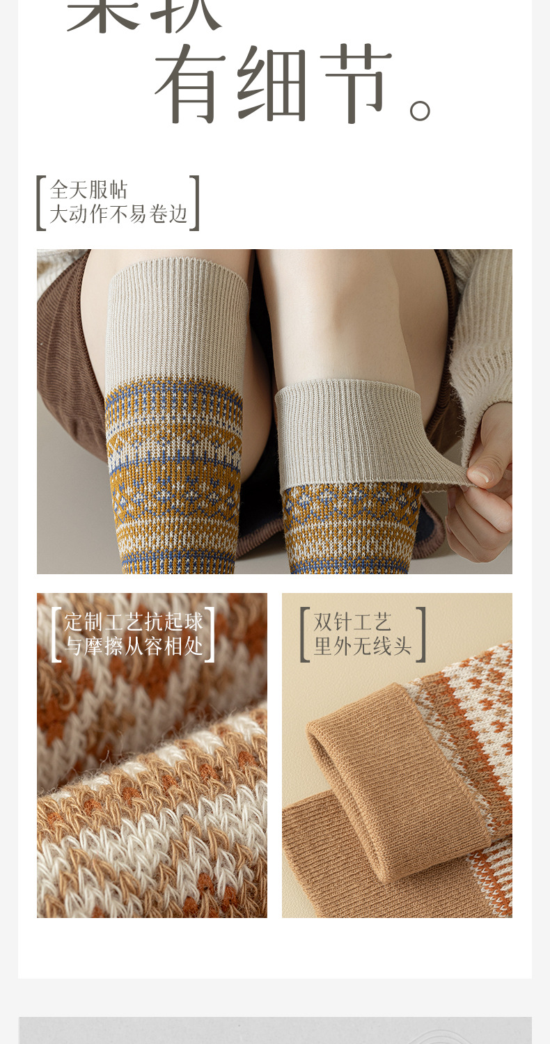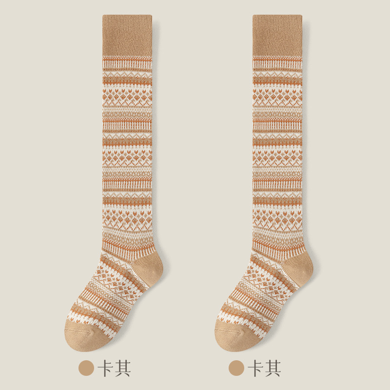웨이브 더블 바늘 가을과 겨울 작은 다리 양말 빈티지 민족 스타일 따뜻한 양말 인터넷 유행 슬리밍 스트라이프 높은 면 양말