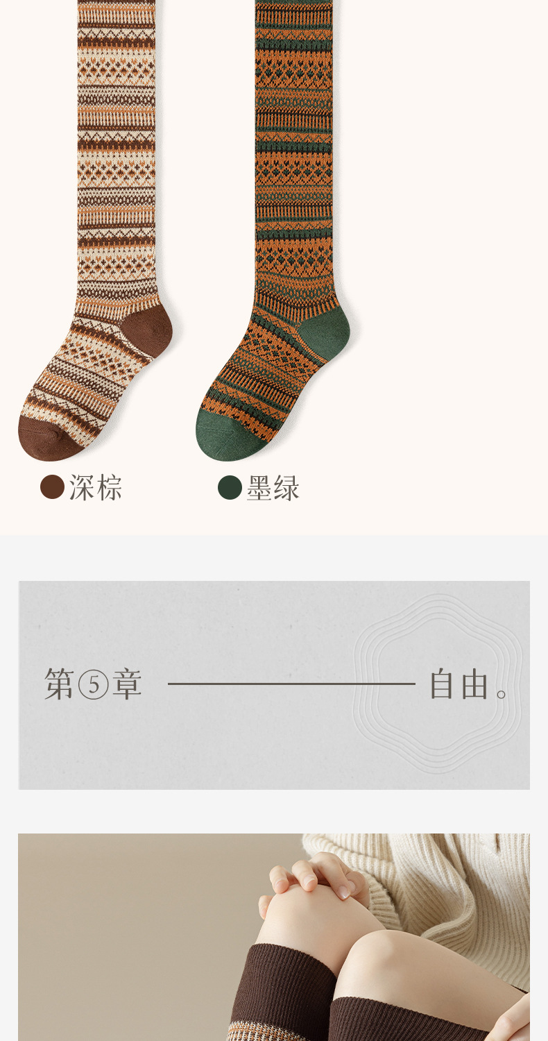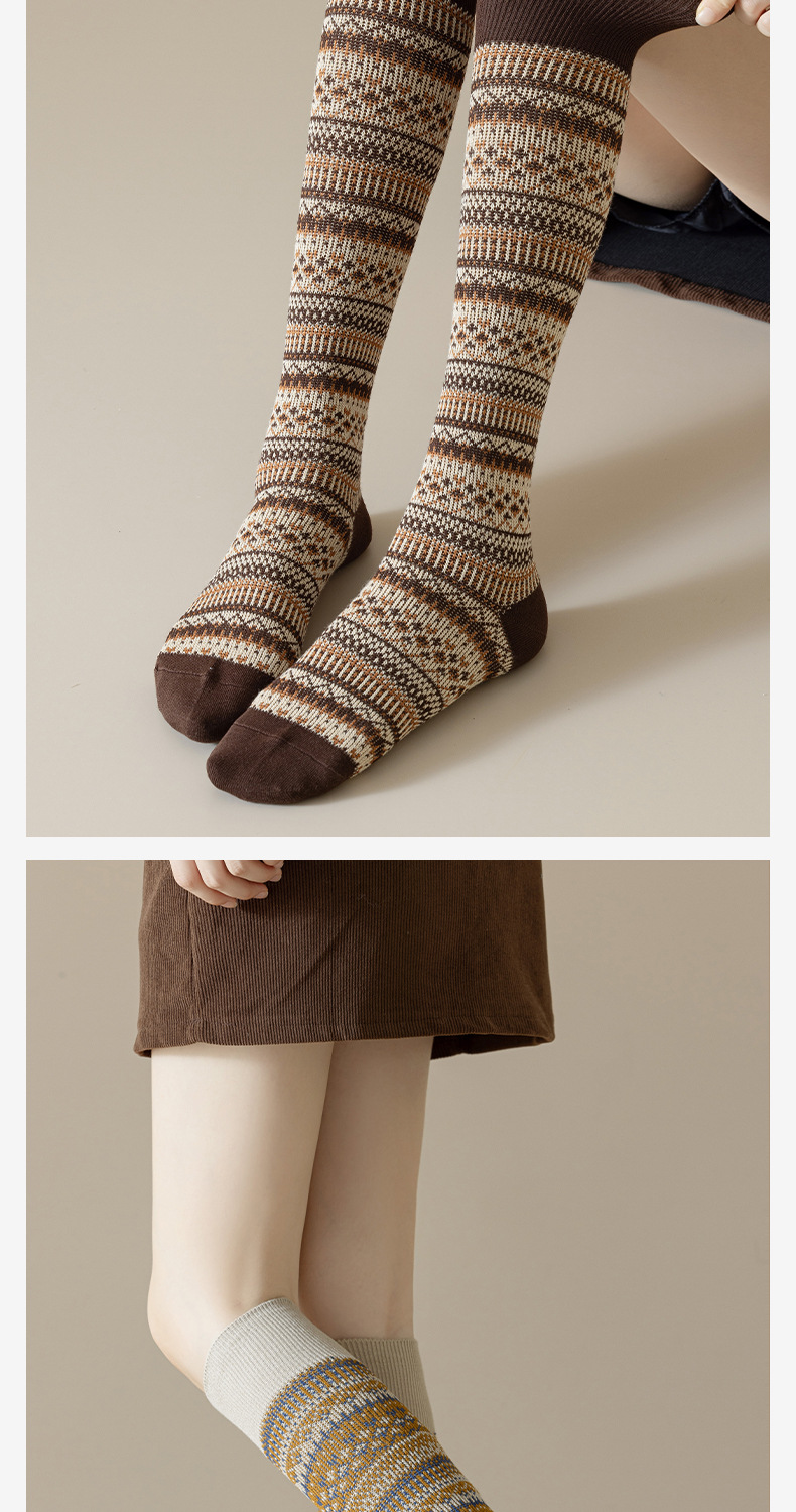 웨이브 더블 바늘 가을과 겨울 작은 다리 양말 빈티지 민족 스타일 따뜻한 양말 인터넷 유행 슬리밍 스트라이프 높은 면 양말스토어 가기