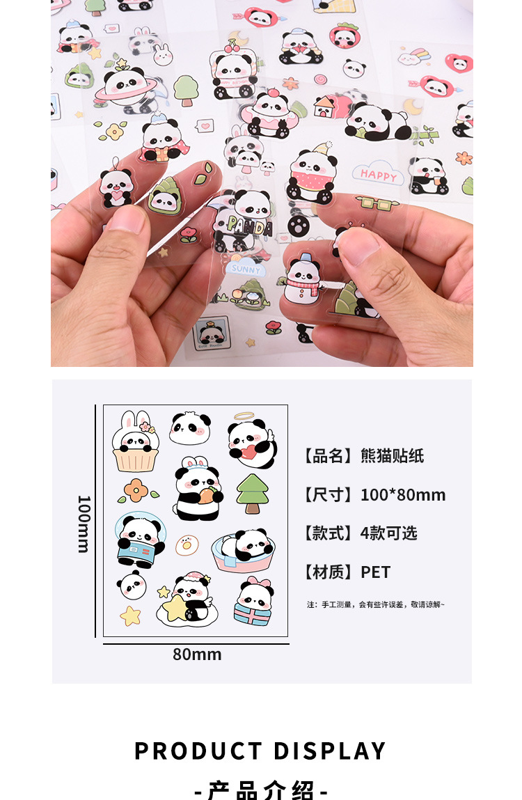 귀여운 수제 팬더 스티커 만화 PET 스티커 어린이 재미 자기 접착 손 계정 스티커 방수 표현 재료스토어 가기