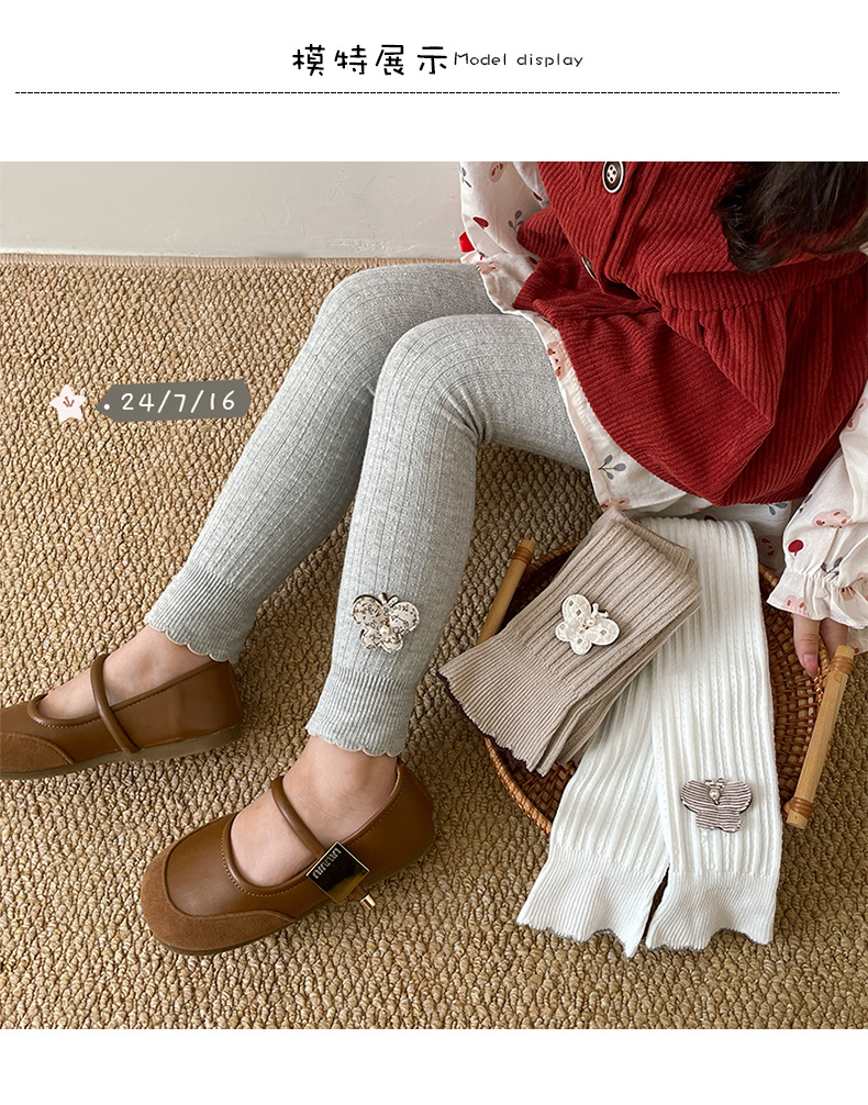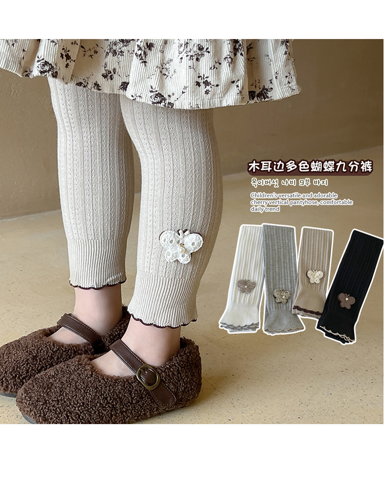 2024 년 어린이 봄과 가을 새로운 얇은 9 포인트 레이스 바지 높은 탄성 통기성 큰 어린이 나비 조커베이스 도매스토어 가기