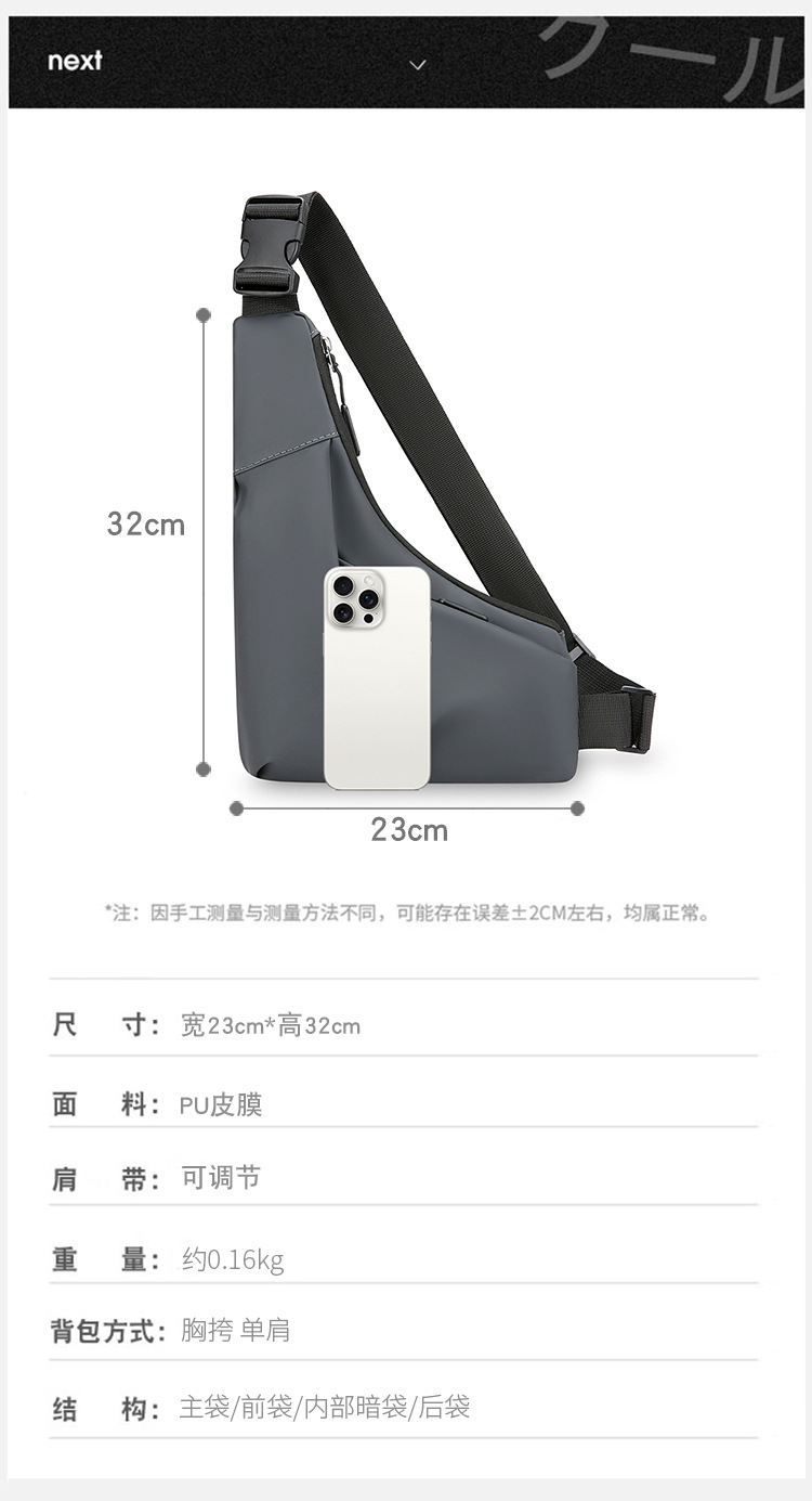 국경 간 새로운 도착 도난 방지 총 가방 삼각형 가방 캐주얼 가죽 마이크 가방 왼쪽과 오른쪽 크로스 바디 캐주얼 가슴 가방스토어 가기