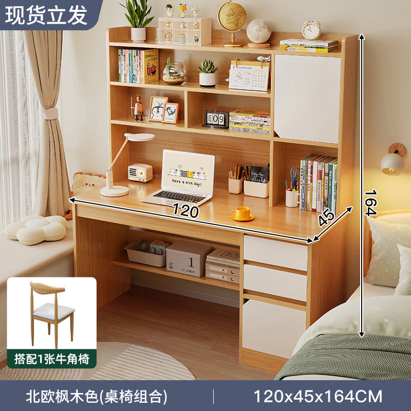 책상 학생 학습 테이블 컴퓨터 테이블 홈 테이블 책장이있는 간단한 테이블과 의자 세트 침실 간단한 책상스토어 가기