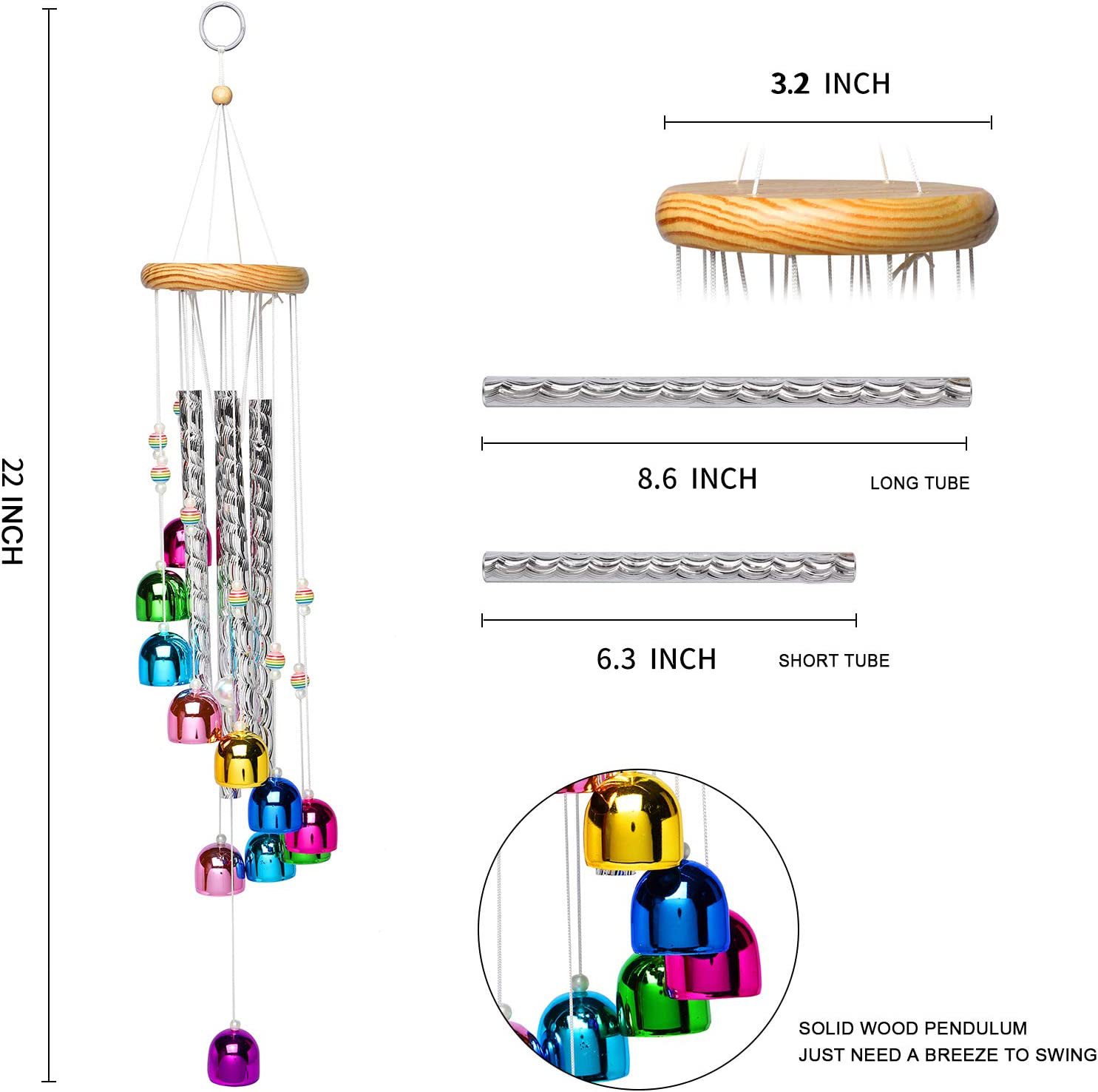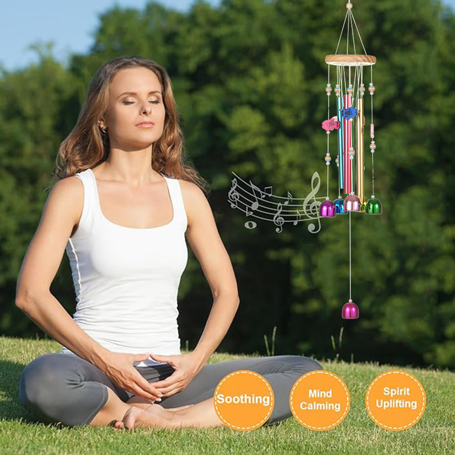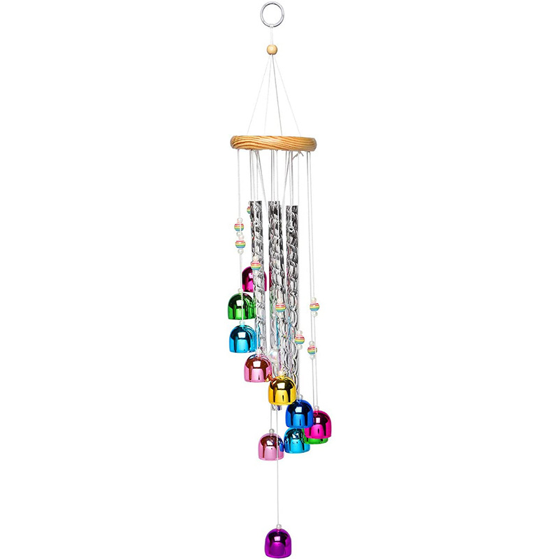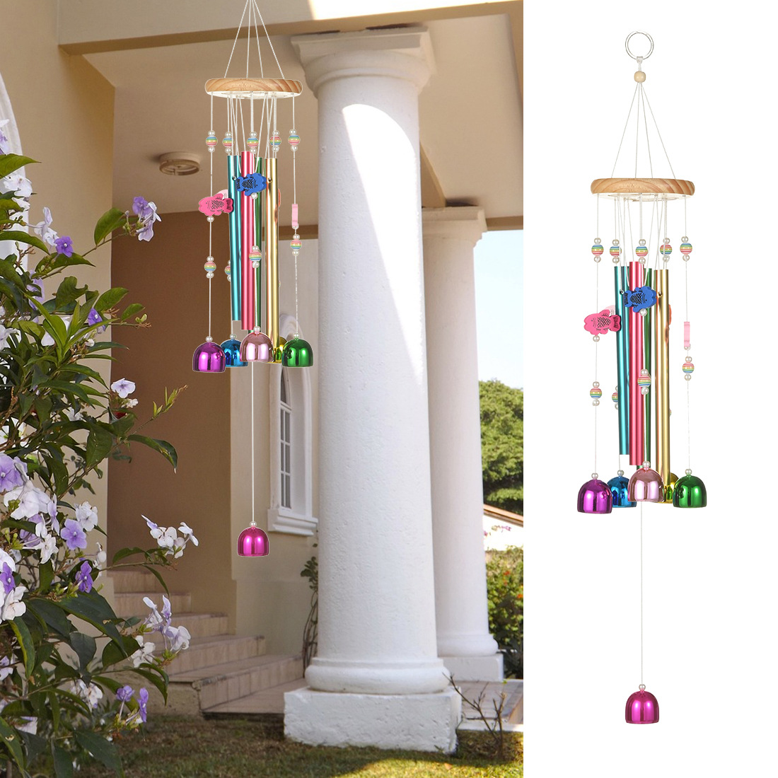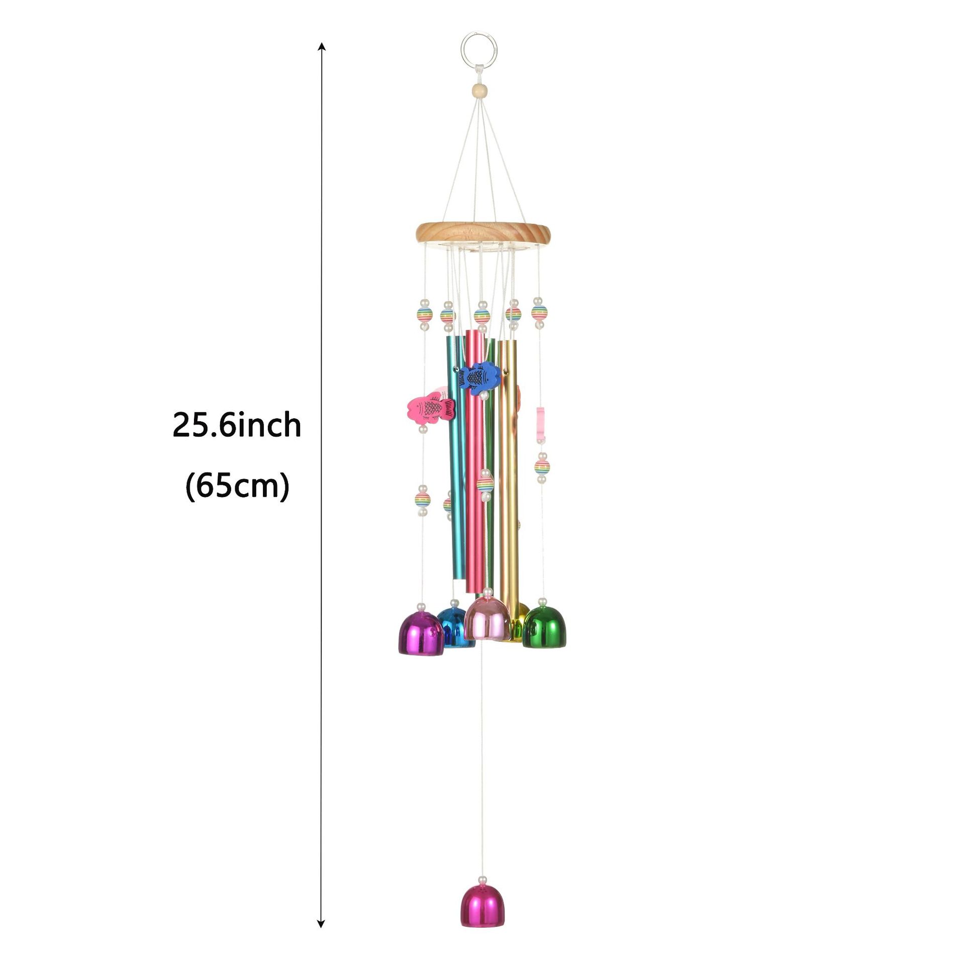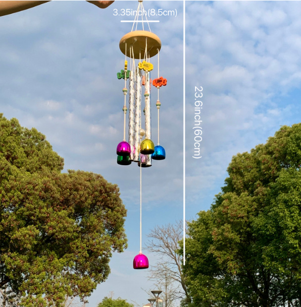 국경 핫 컬러풀 벨 바람 벨 솔리드 우드 알루미늄 튜브 홈 발코니 매달려 바람 벨 장식 벽 장식 도매