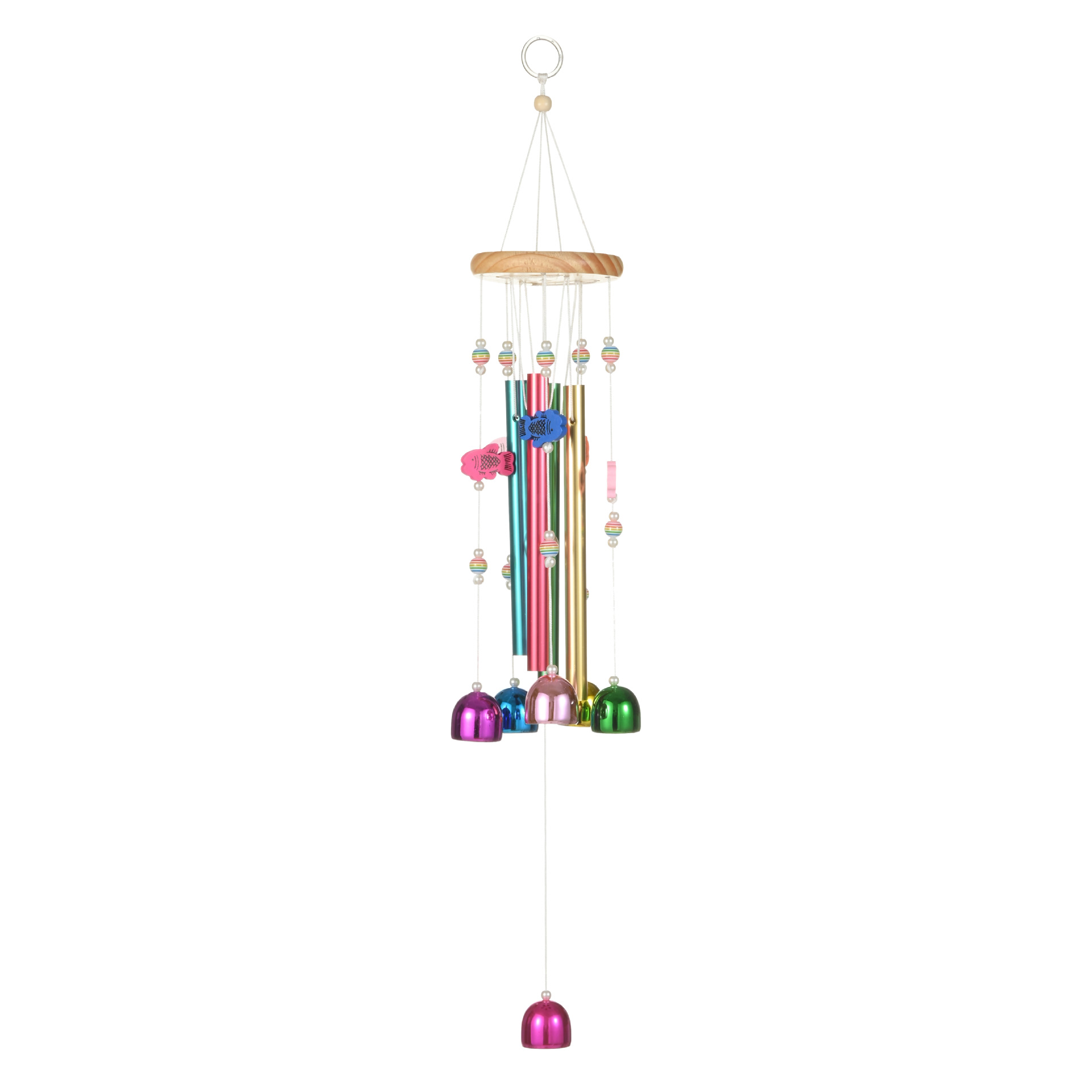 국경 핫 컬러풀 벨 바람 벨 솔리드 우드 알루미늄 튜브 홈 발코니 매달려 바람 벨 장식 벽 장식 도매스토어 가기