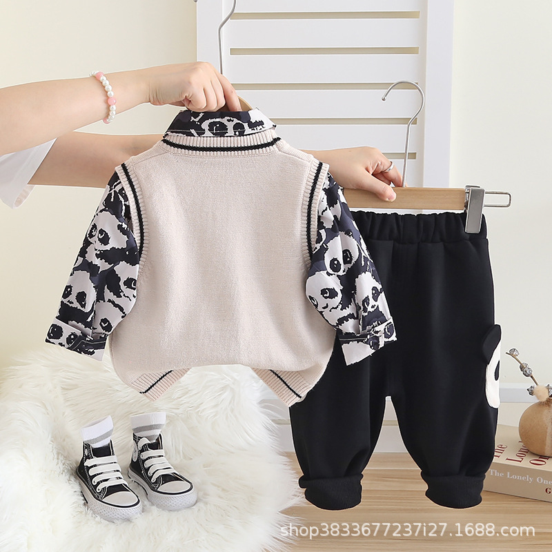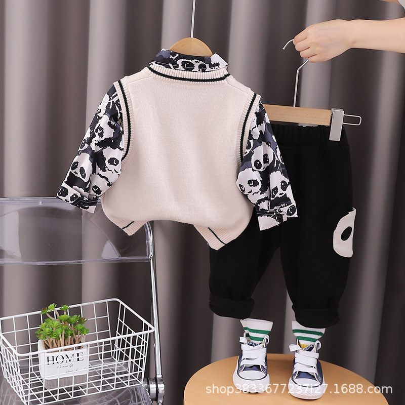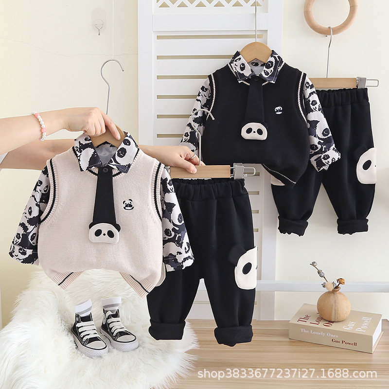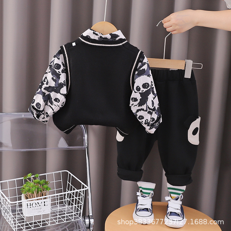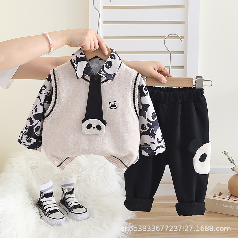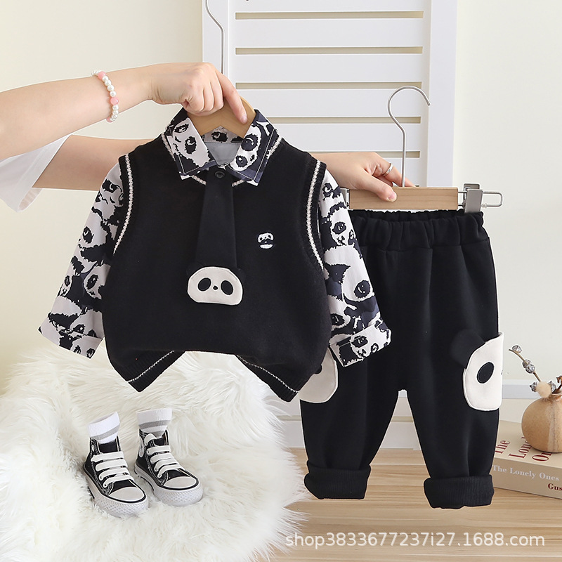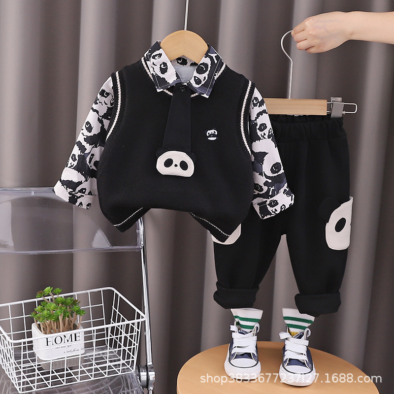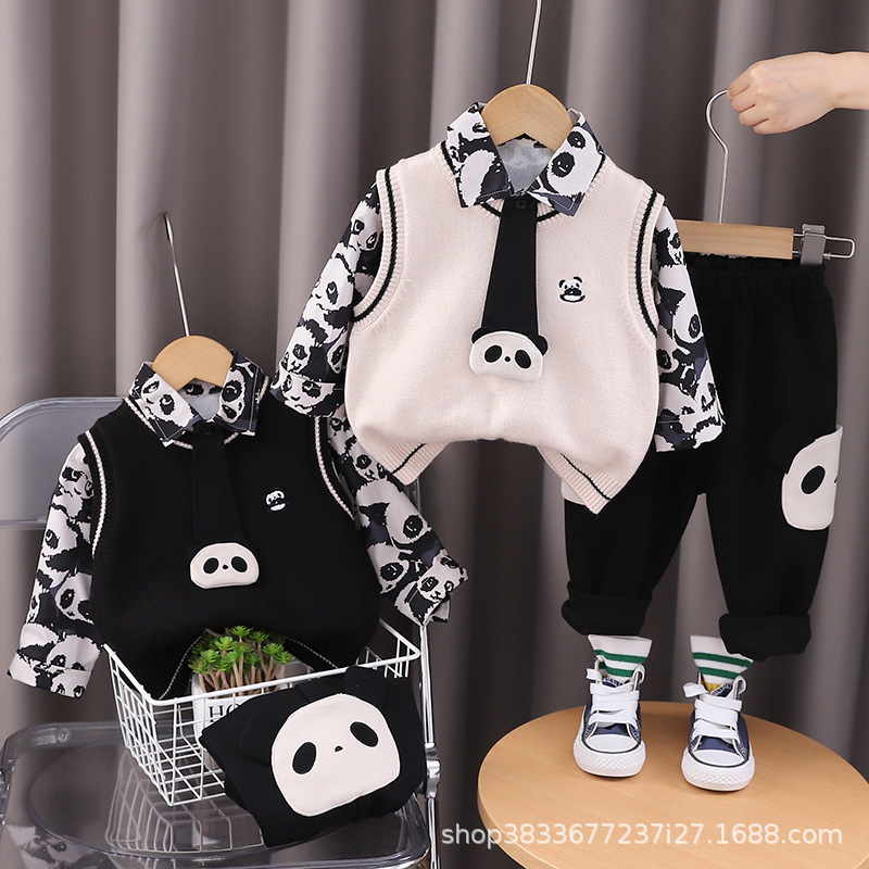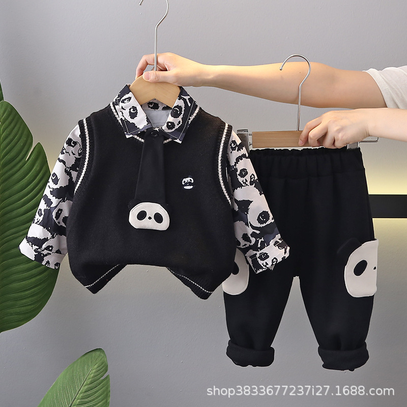 소년의 가을 세트 새로운 잘 생긴 아이들의 봄과 가을 외국 스타일 아기 팬더 넥타이 스웨터 3 피스 도매스토어 가기
