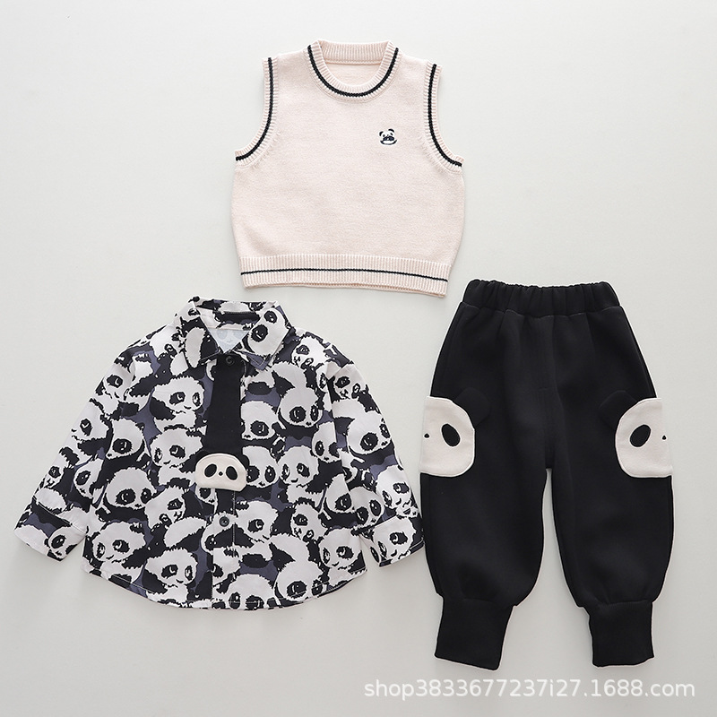 소년의 가을 세트 새로운 잘 생긴 아이들의 봄과 가을 외국 스타일 아기 팬더 넥타이 스웨터 3 피스 도매