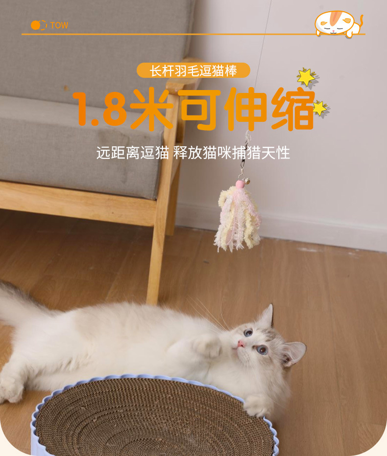 고양이 스틱 리프팅 및 수축 막대는 길이가 1.8 미터이며 4 섹션 텔레스코픽 막대 고양이 롱 막대는 하이 장난감 도매에서 머리를 대체 할 수 있습니다.스토어 가기