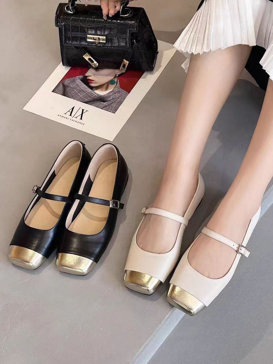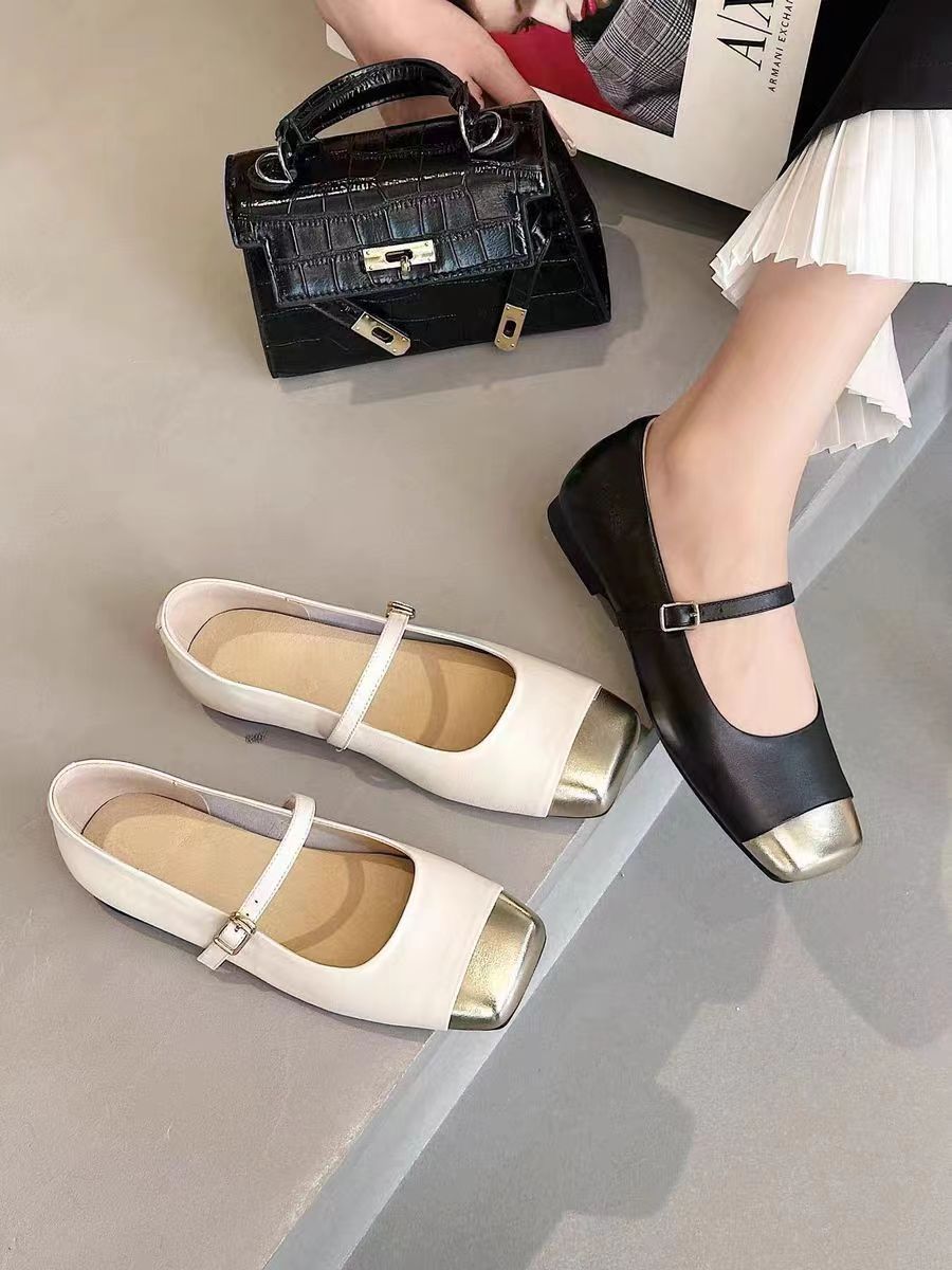 여성 플랫 신발 2024 새로운 봄 프랑스 메리 제인 신발 늦은 저녁 부드러운 스커트 콩 신발스토어 가기