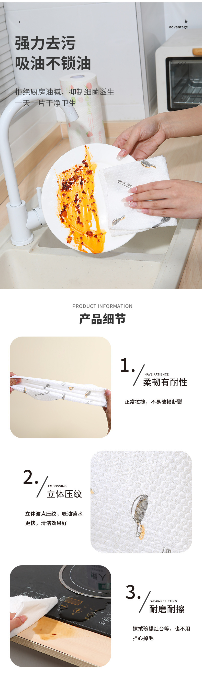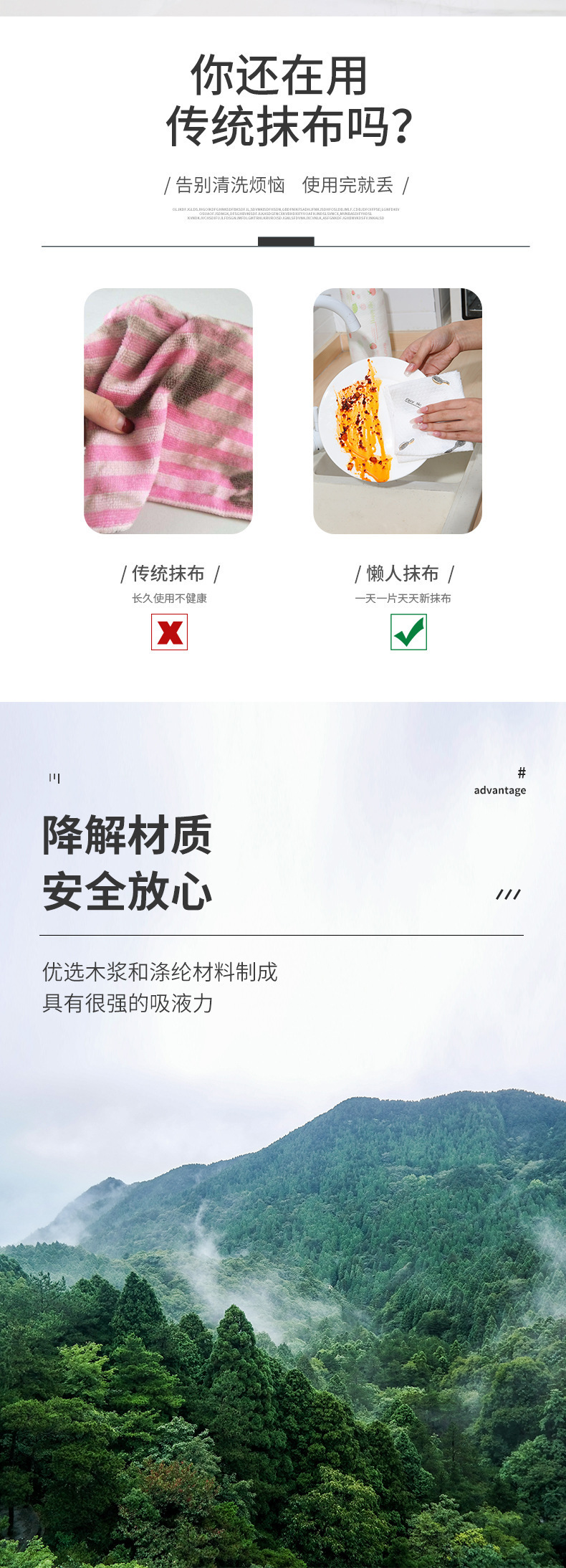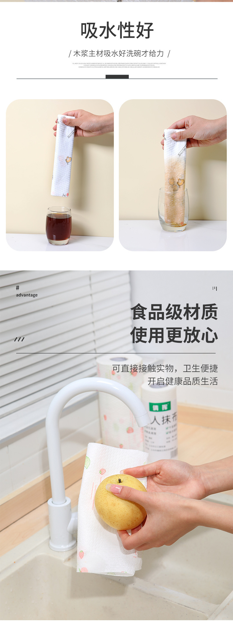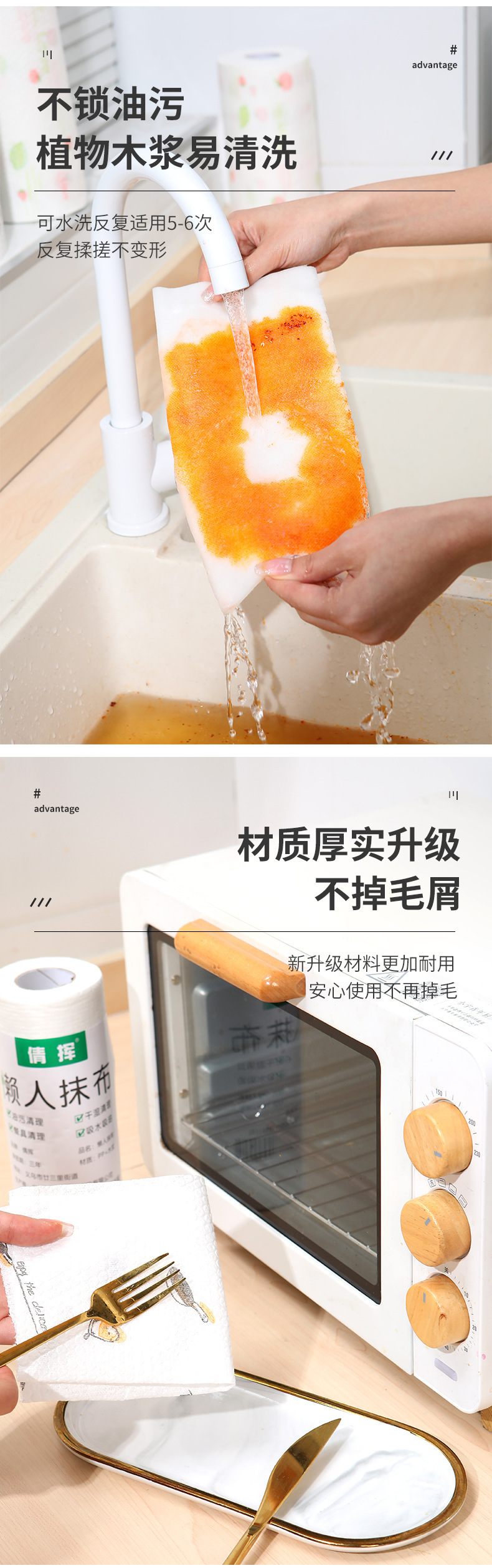 게으른 헝겊 젖은 마른 일회용 식기 세척 천 두꺼운 가정용 주방 종이 부직포 직물 흡수제