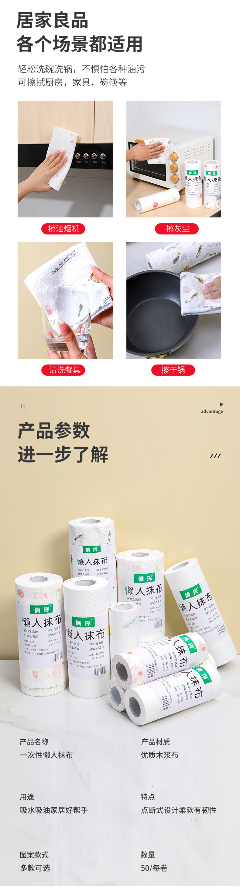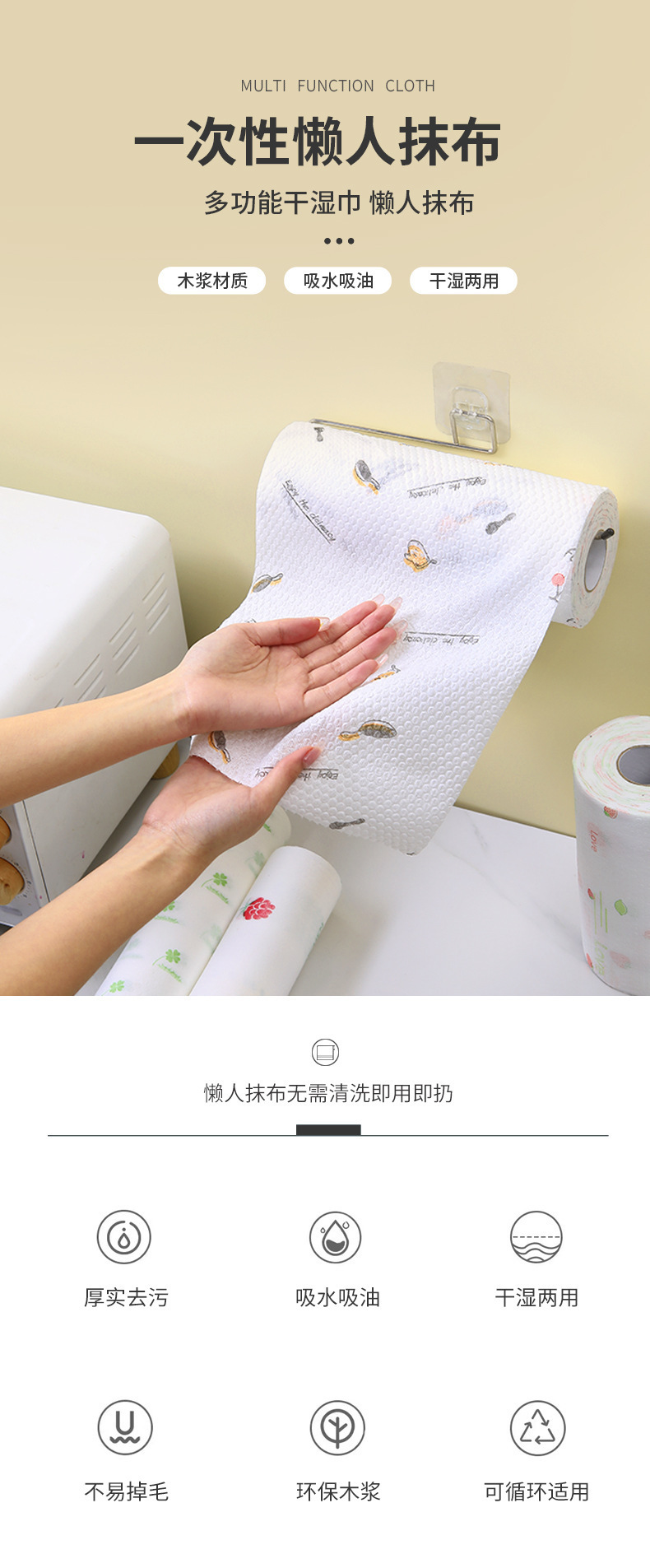 게으른 헝겊 젖은 마른 일회용 식기 세척 천 두꺼운 가정용 주방 종이 부직포 직물 흡수제스토어 가기