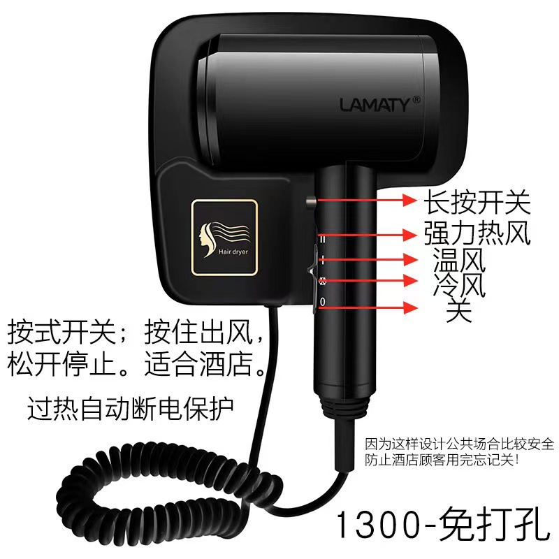 호텔용 헤어드라이어, 벽걸이형 호텔 욕실 및 화장실, 벽걸이형 가정용 헤어드라이어, 펀치 없음 제조업체 도매스토어 가기