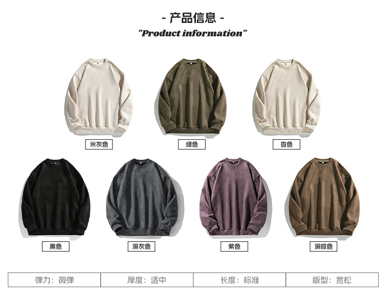 400g 스웨이드 솔리드 컬러 스웨트 셔츠 남성용 봄 신작 아메리칸 레트로 탑 커플 풀오버 재킷 2개로 사용 가능스토어 가기
