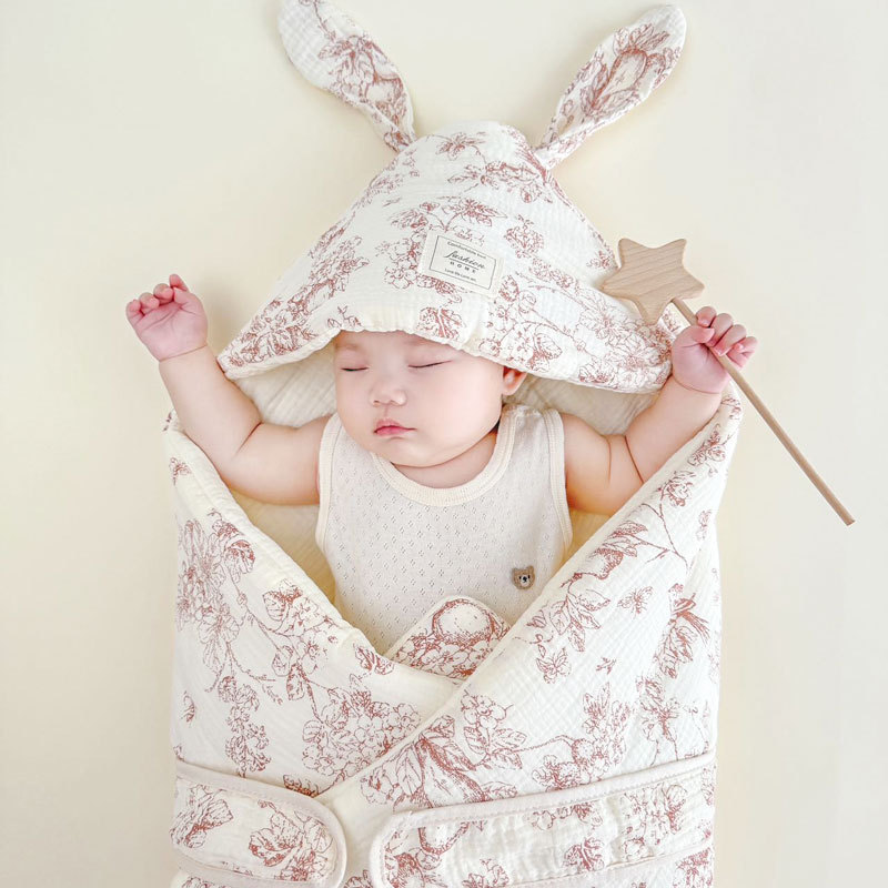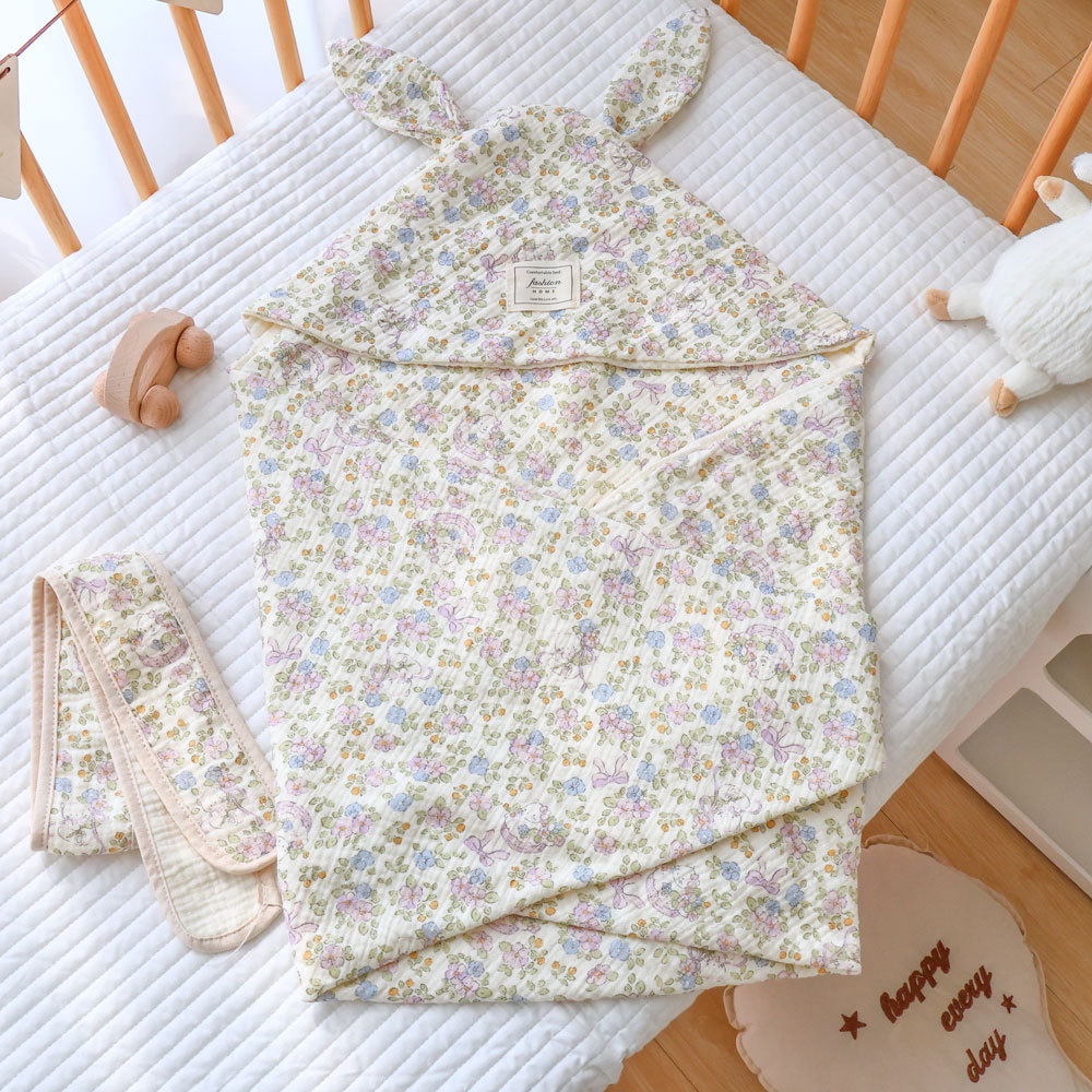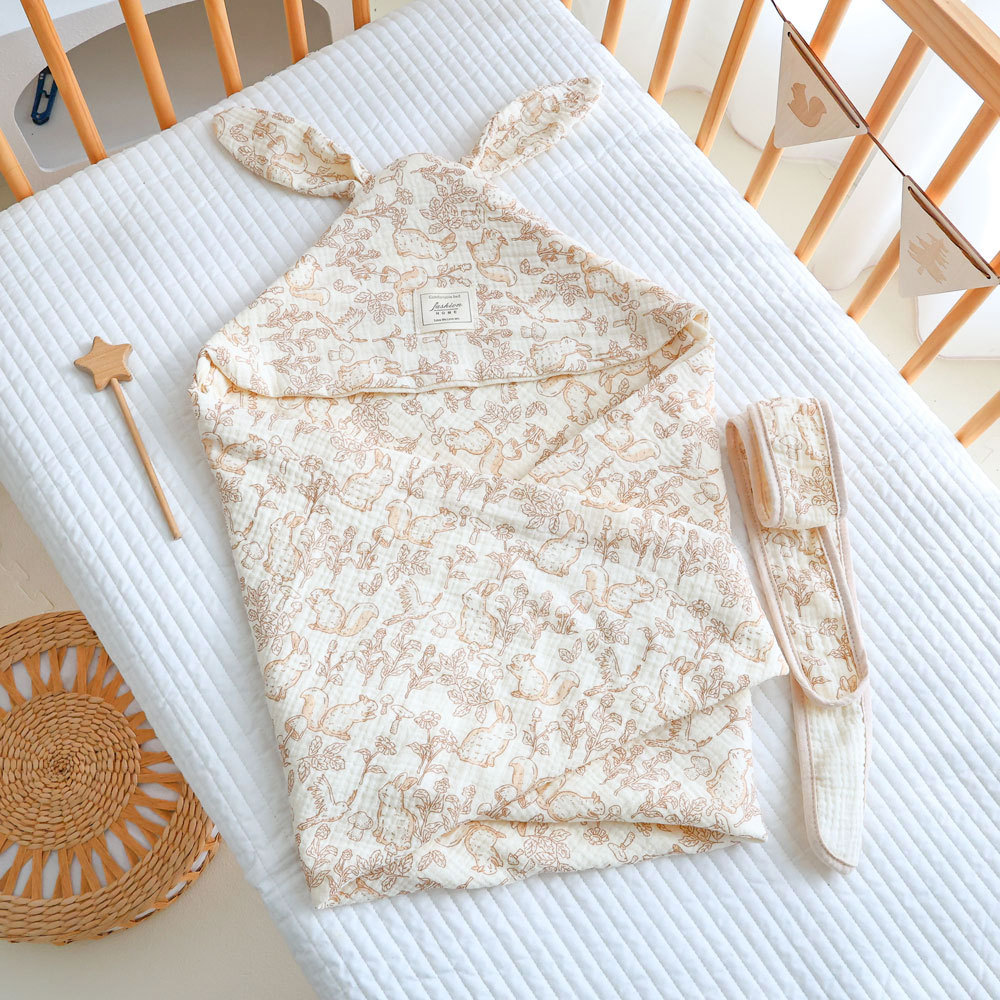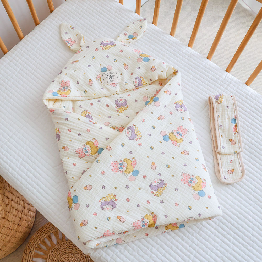 아기 담요 도매 프린트 신생아 분만실 큰 귀 담요 이중 거즈 면 가을 겨울 두꺼운 담요