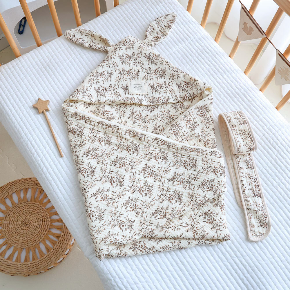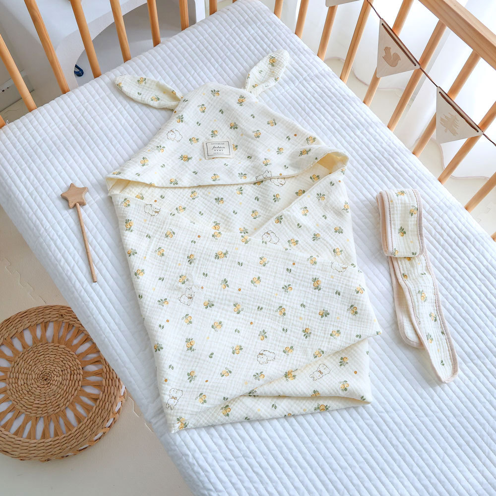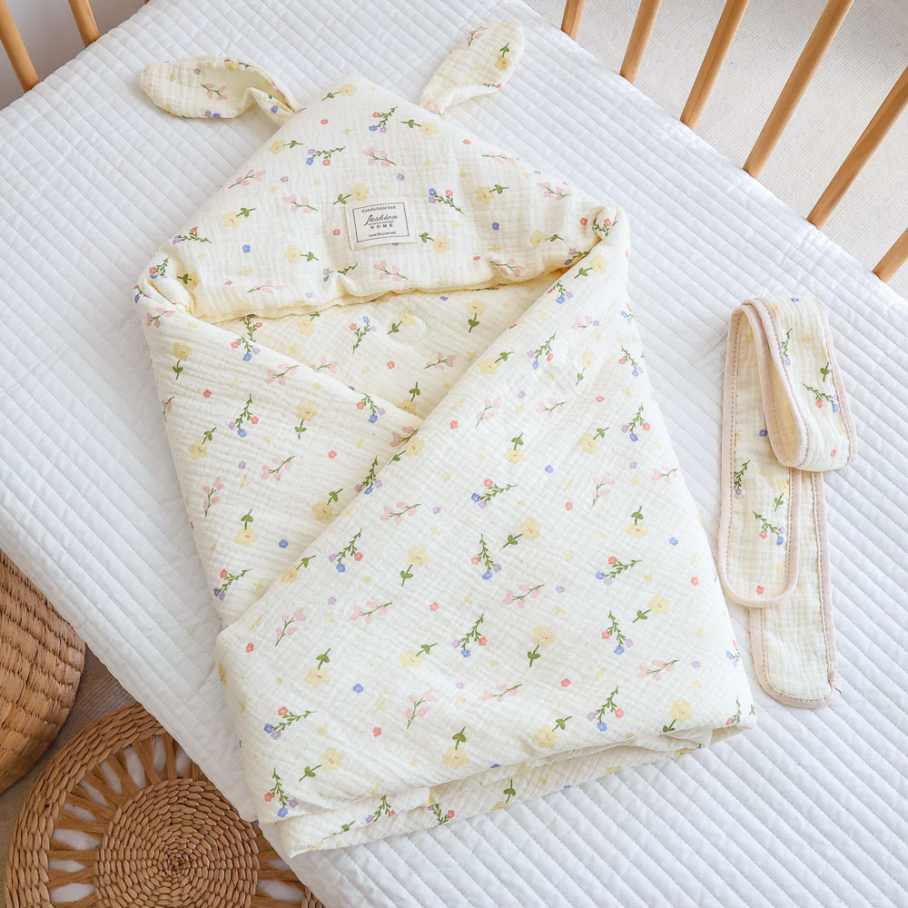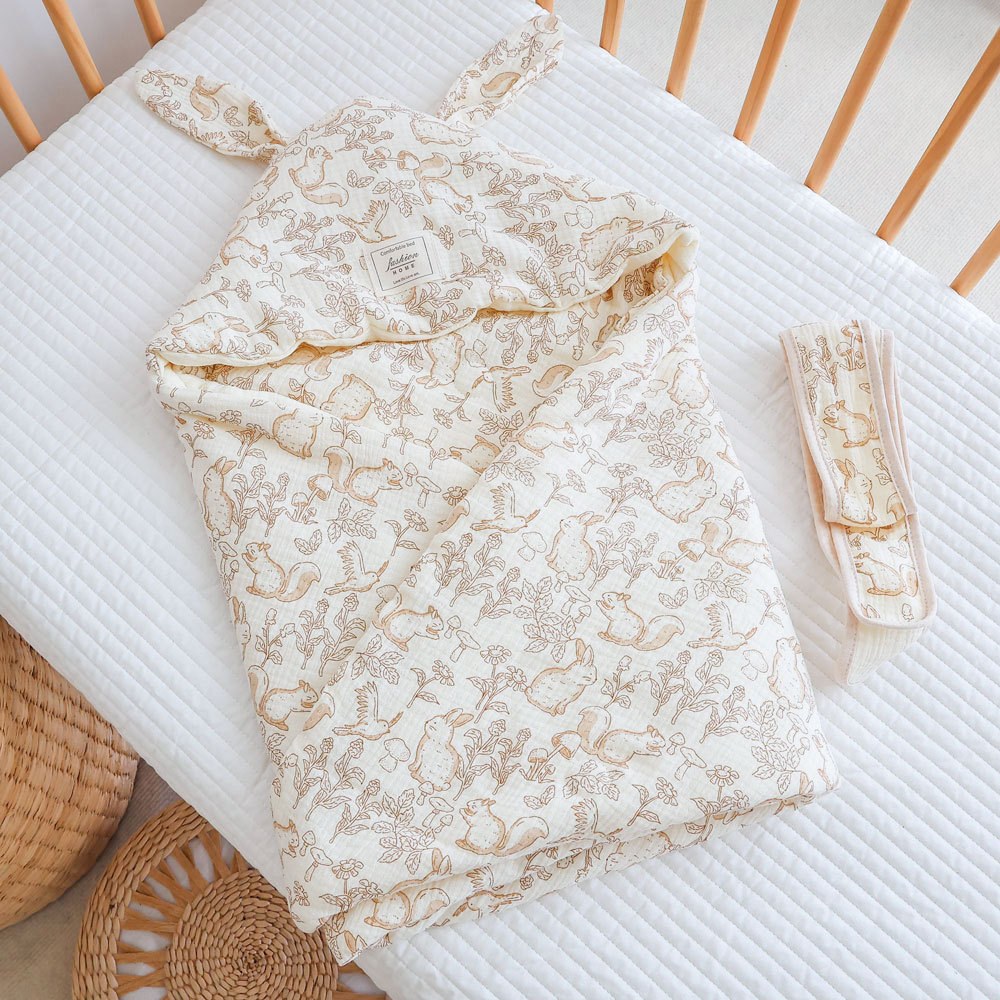 아기 담요 도매 프린트 신생아 분만실 큰 귀 담요 이중 거즈 면 가을 겨울 두꺼운 담요