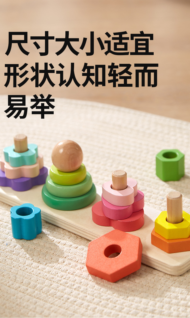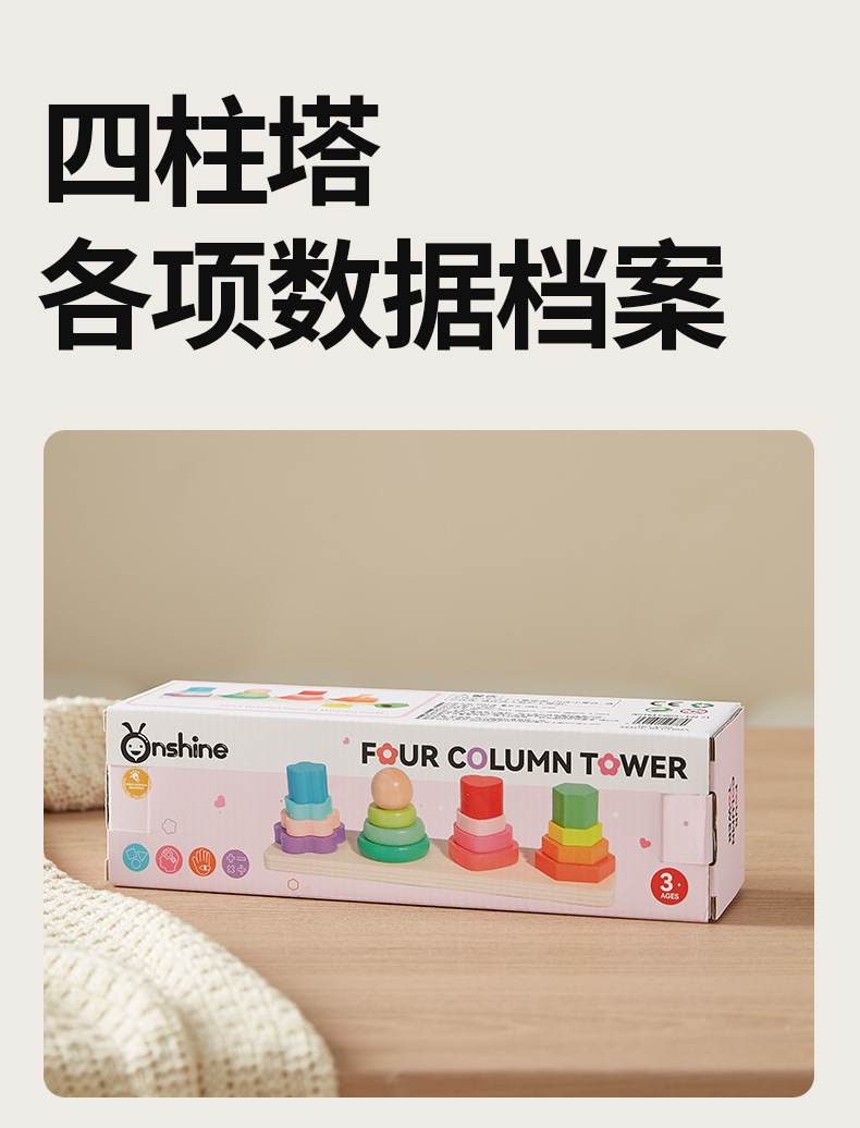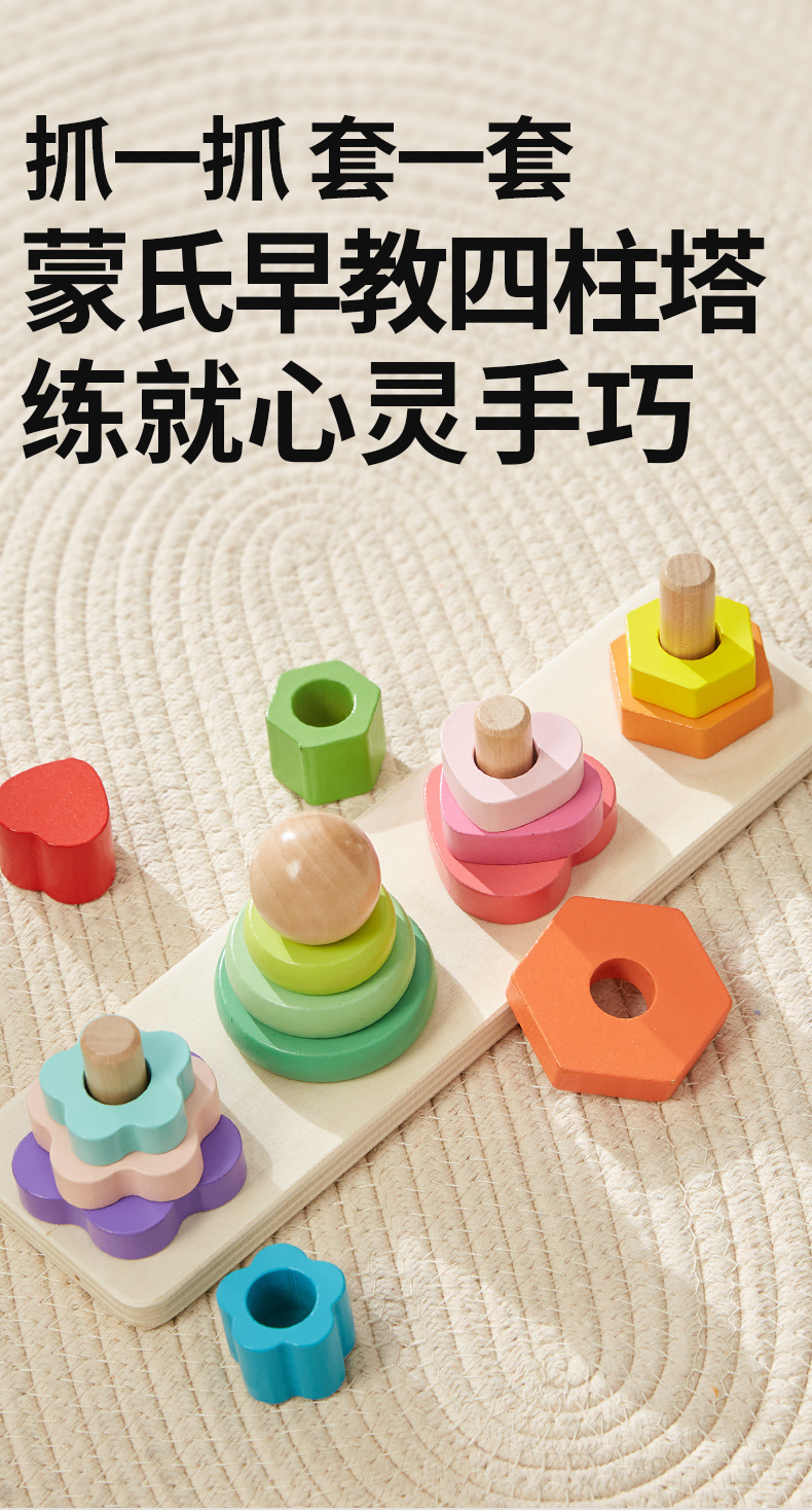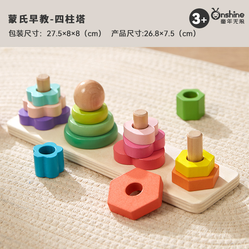 Onshine 4 기둥 타워 빌딩 블록 Montessori 교육 인식 세트 칼럼 스택 높은 조기 교육 어린이 손 눈 조정 교육 장난감스토어 가기