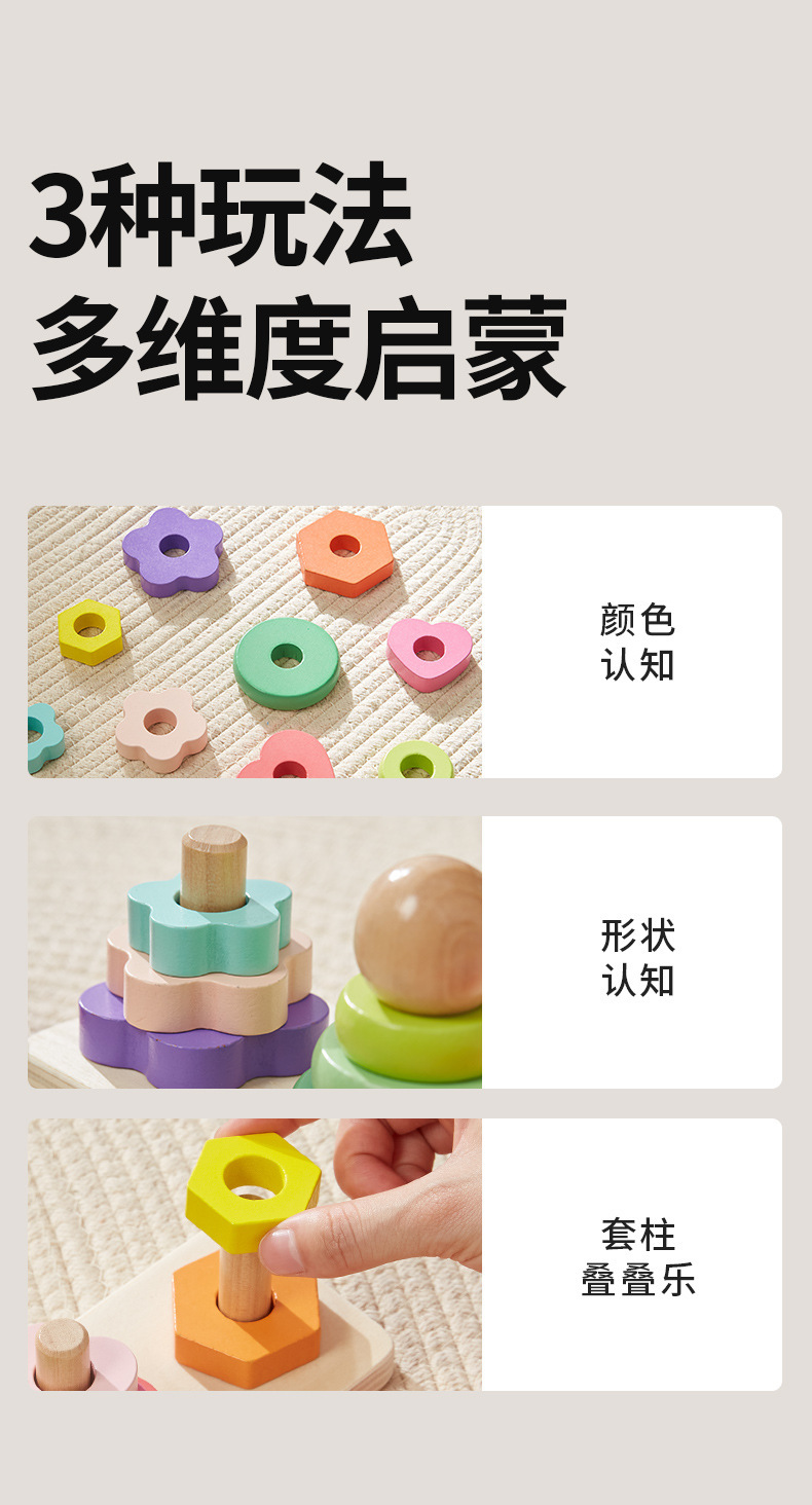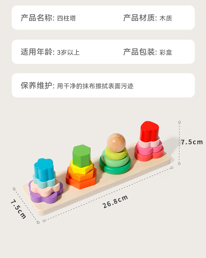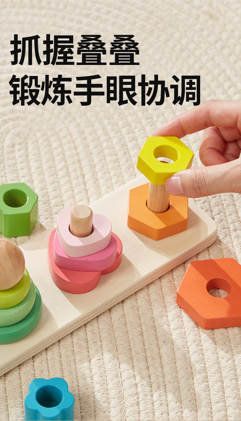 Onshine 4 기둥 타워 빌딩 블록 Montessori 교육 인식 세트 칼럼 스택 높은 조기 교육 어린이 손 눈 조정 교육 장난감스토어 가기