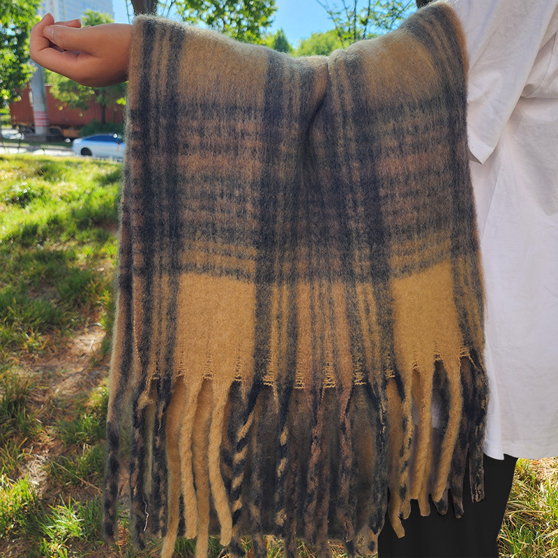 여성을 위한 국경 간 인기 격자 무늬 스카프, 두껍고 따뜻하며 고급스러운 모조 캐시미어, 남성용 다용도 가을 겨울 단색 숄 도매스토어 가기