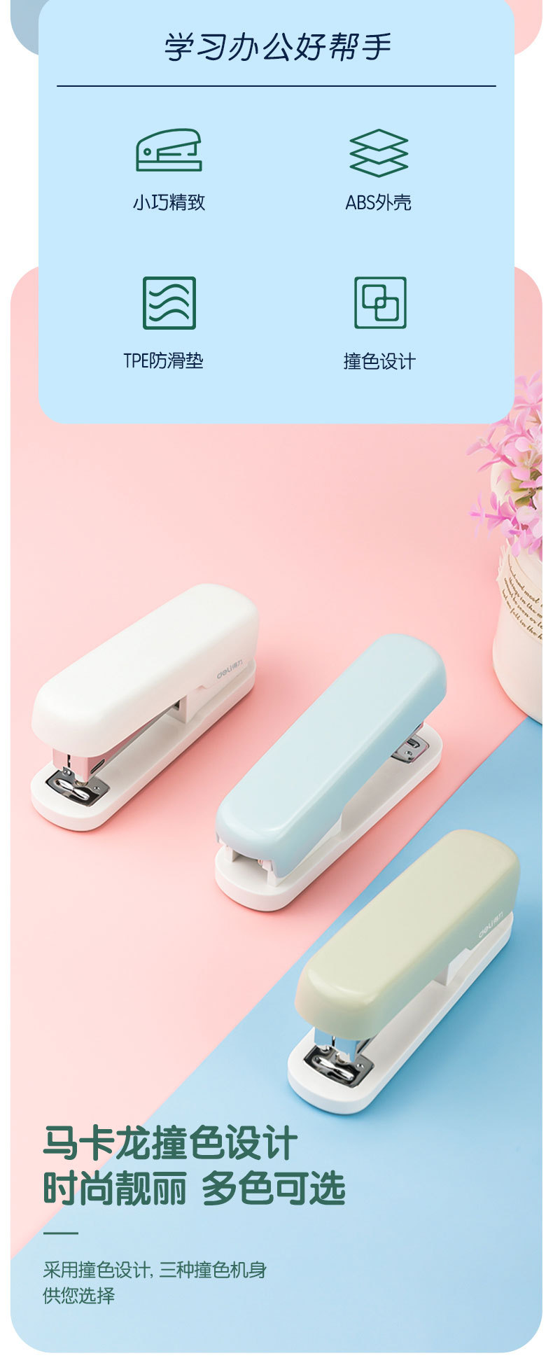 델리 스테이플러 12 # 스몰 사이즈 사무용품 미끄럼 방지 스테이플러 학습 문구 도매 스테이플러