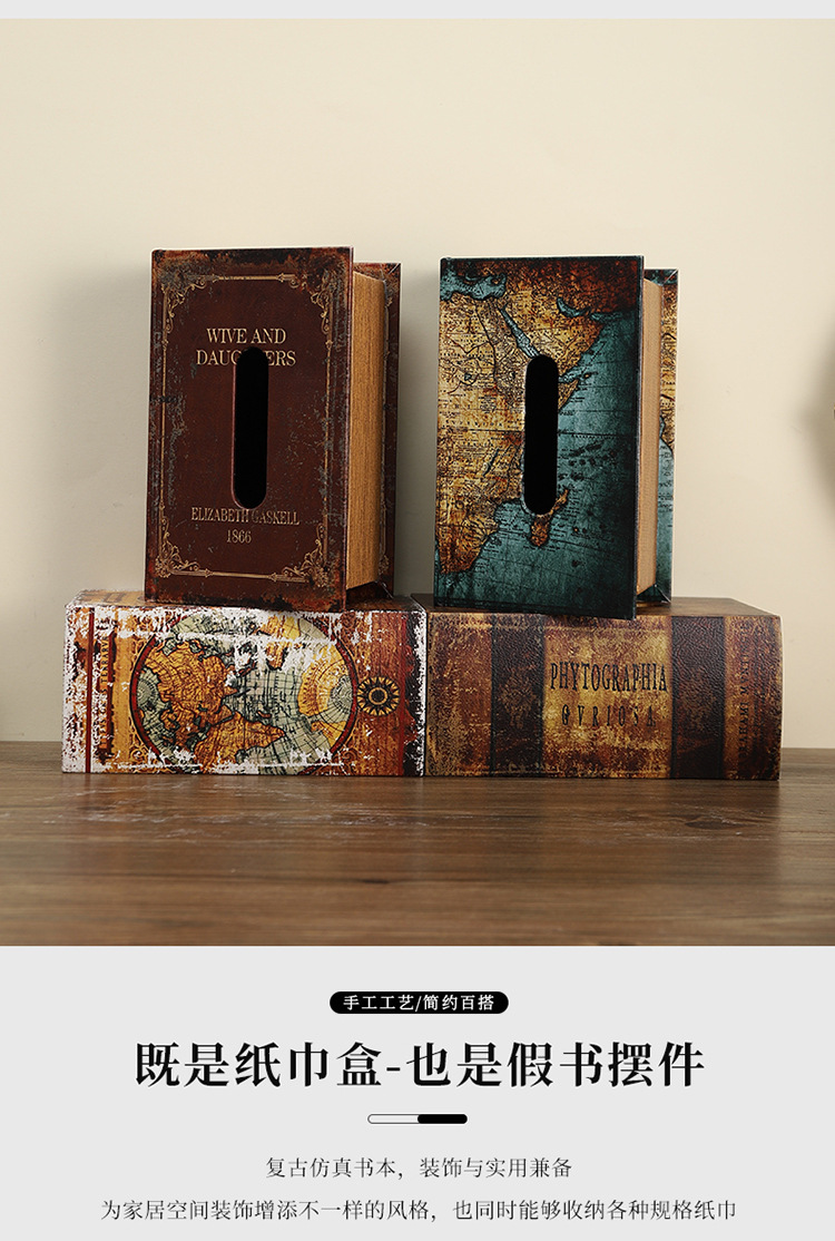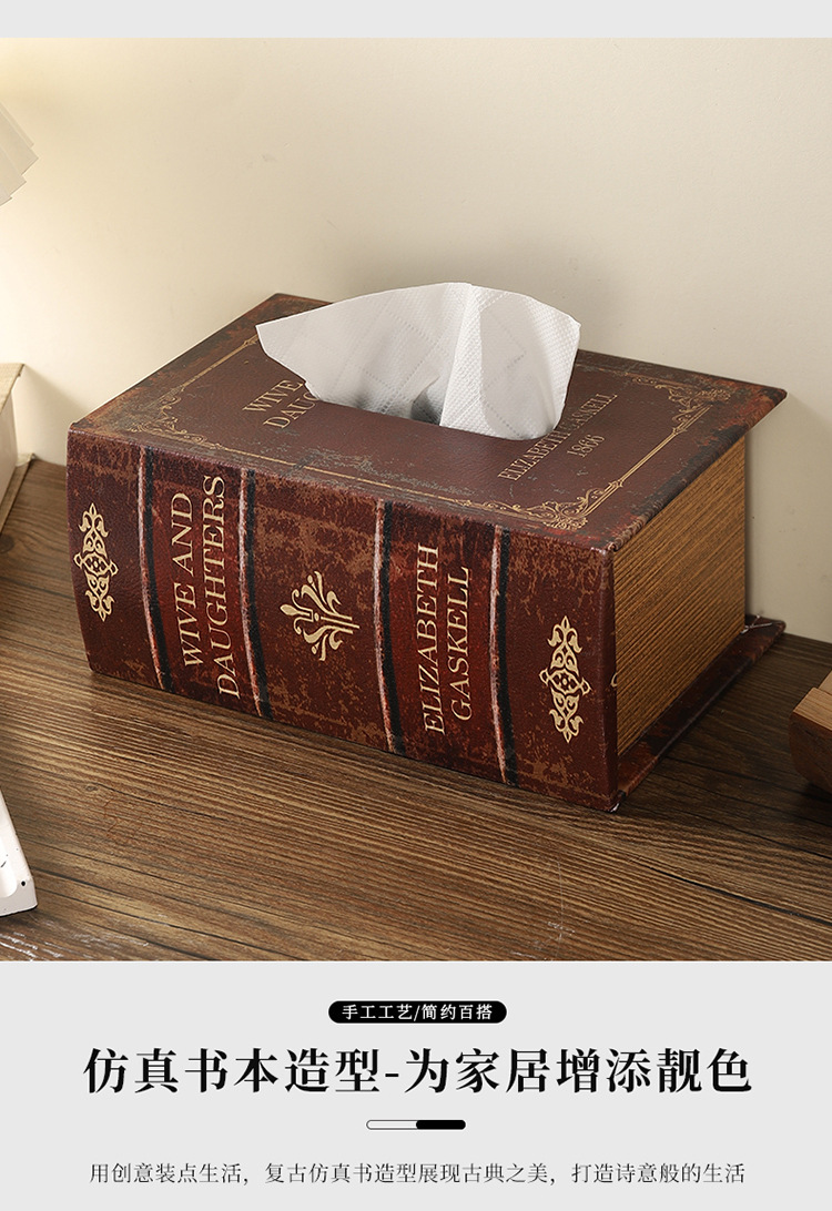 창조적 인 미국 복고풍 시뮬레이션 책 나무 조직 상자 홈 오피스 데스크탑 PU 가죽 책 유형 종이 상자스토어 가기