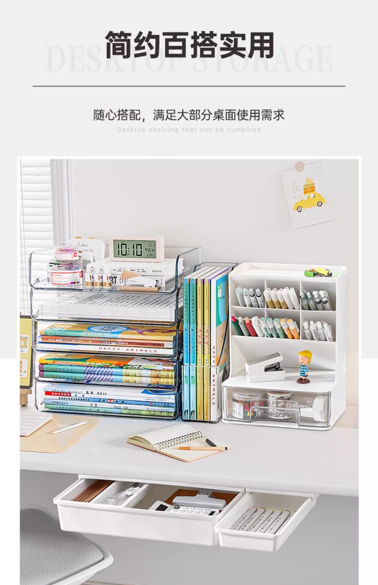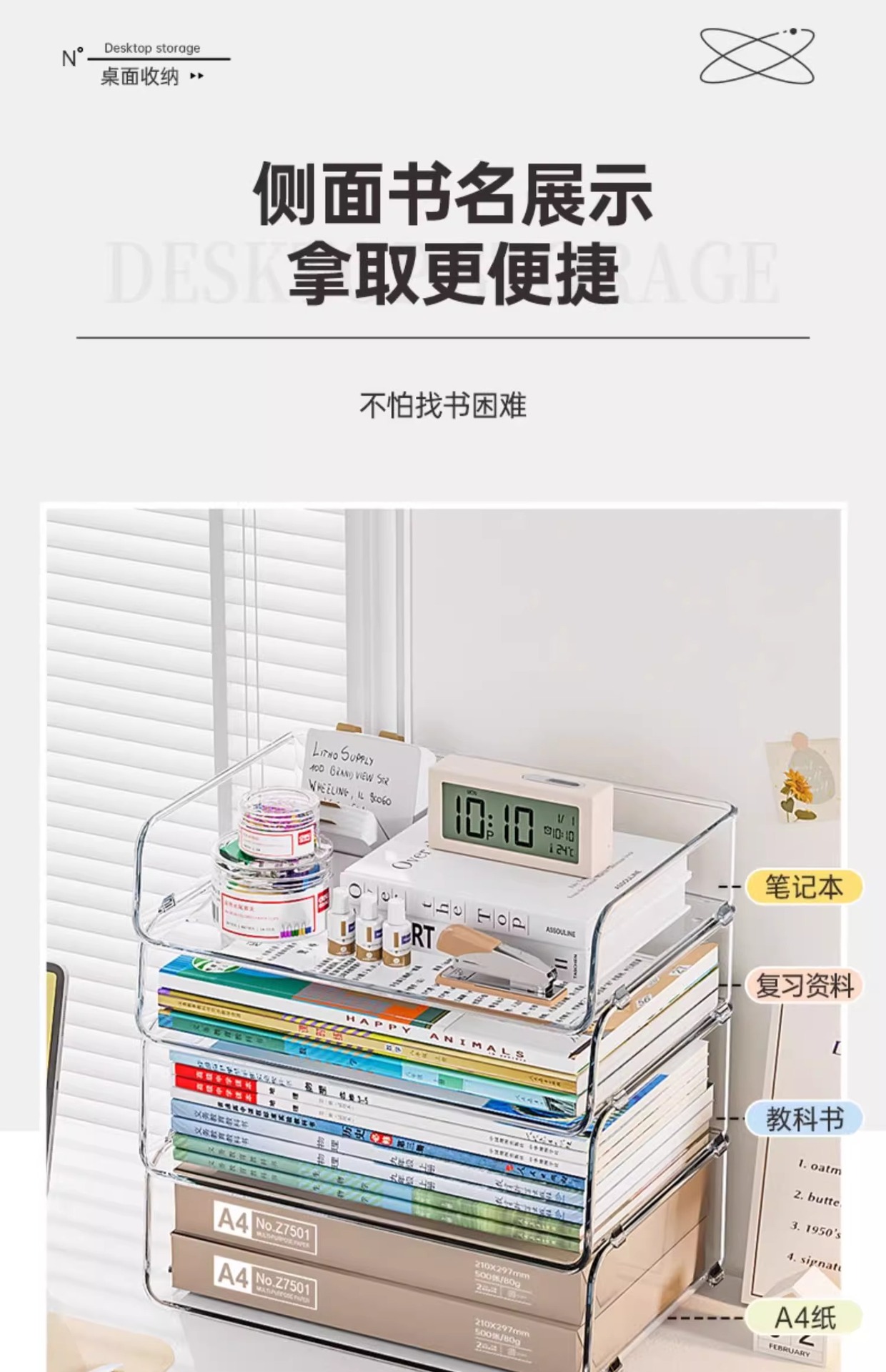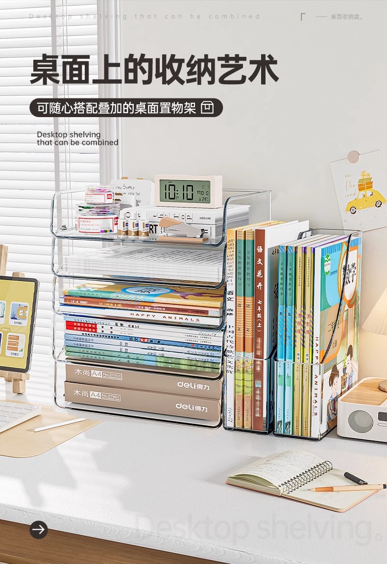 개학 시즌 데스크탑 아크릴 수납함 투명 정리함 사무용 파일 문구 책 정리함스토어 가기