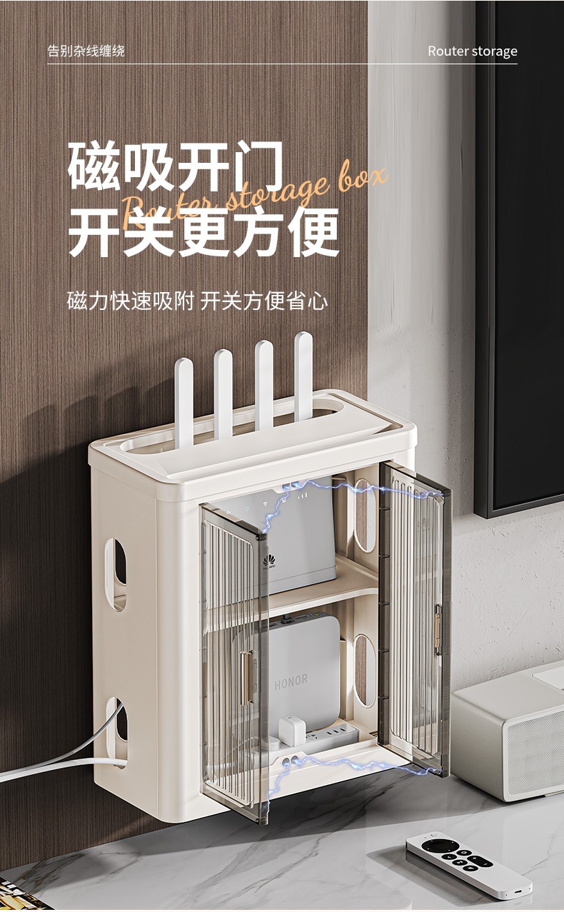 라우터 스토리지 박스 마그네틱 도어 벽에 장착 된 셋톱 박스 와이파이 소켓 광학 고양이 와이어 차폐 마무리 스토리지 박스