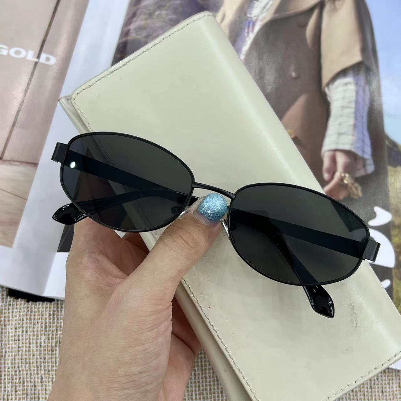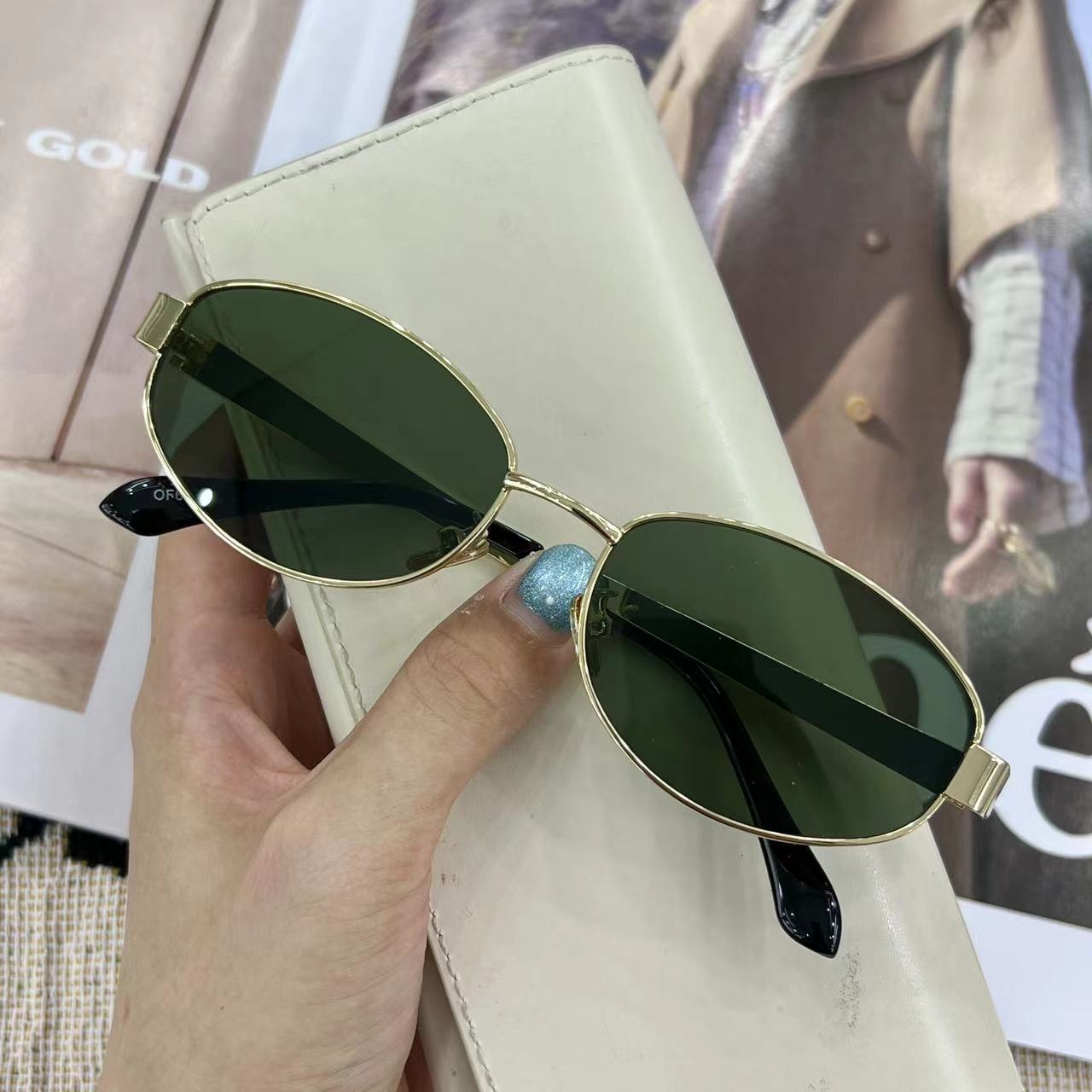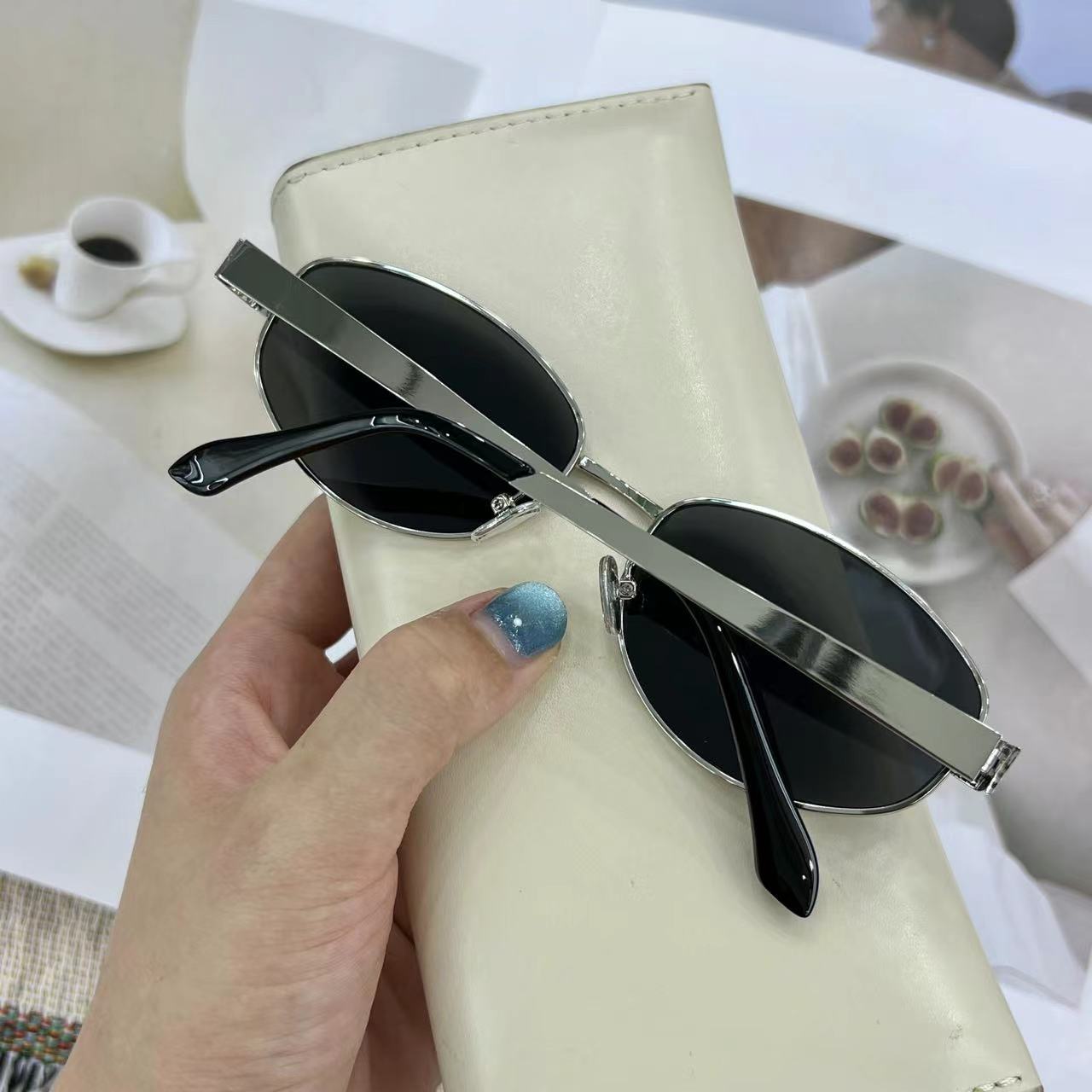 패셔너블한 인스타 감성 선글라스, 여성용 사진 촬영에 어울리는 레트로 타원형 선글라스, 남성용 홍콩 스타일 메탈 프레임, 뉴&올드 머니 스타일 선글라스
