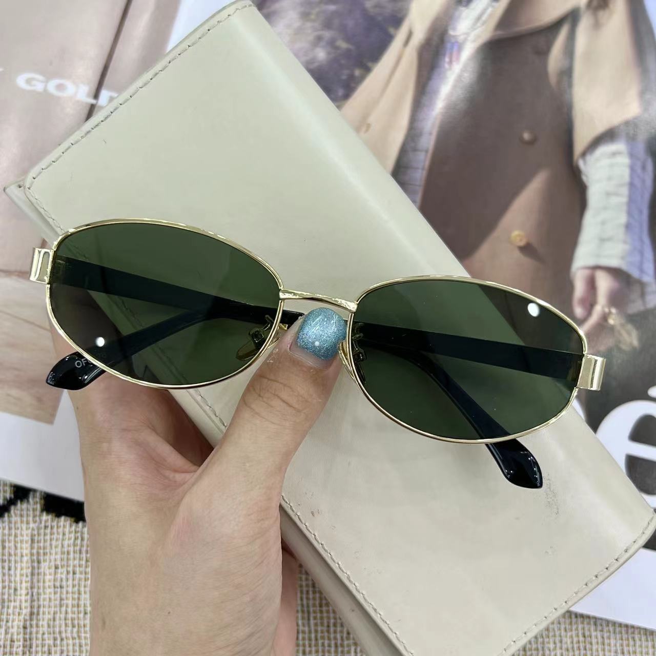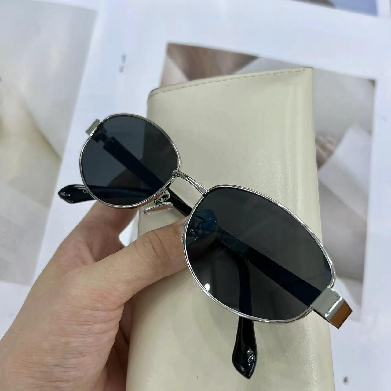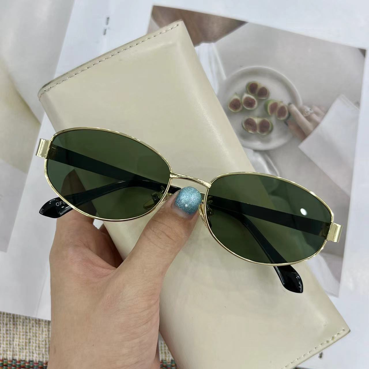 패셔너블한 인스타 감성 선글라스, 여성용 사진 촬영에 어울리는 레트로 타원형 선글라스, 남성용 홍콩 스타일 메탈 프레임, 뉴&올드 머니 스타일 선글라스