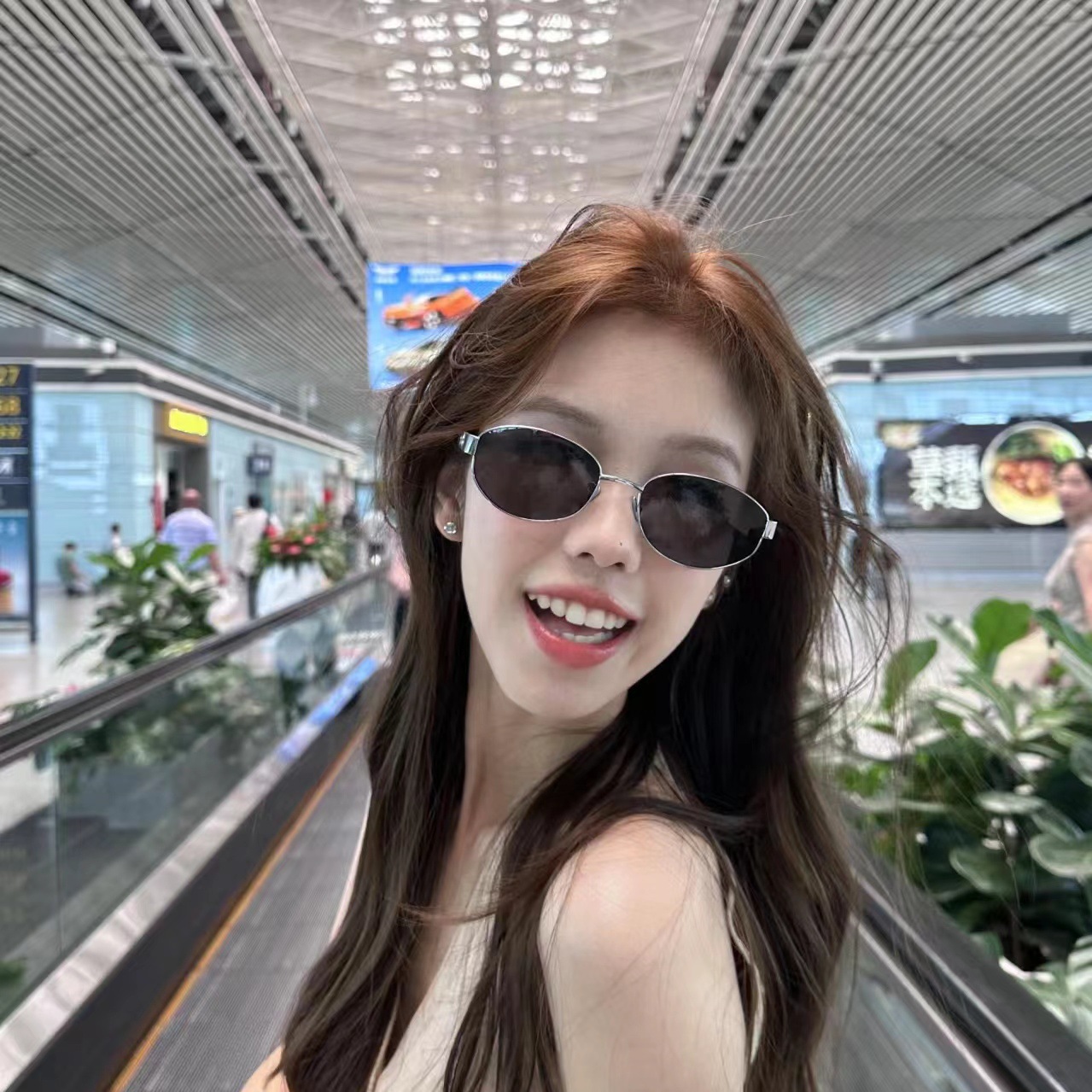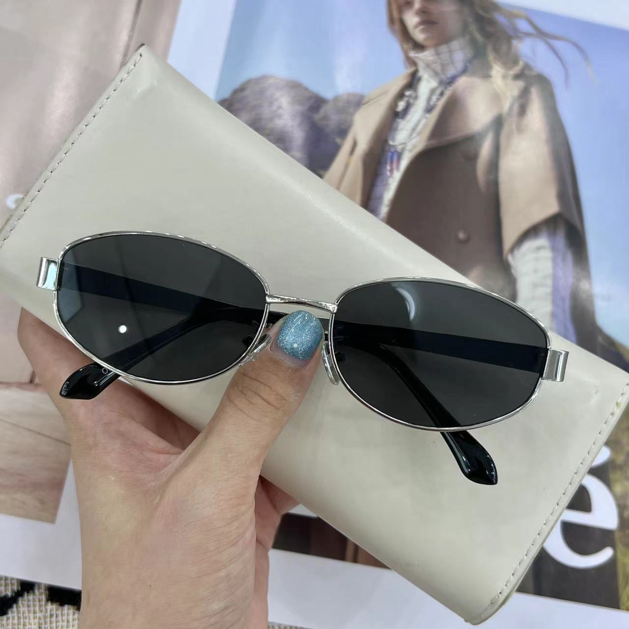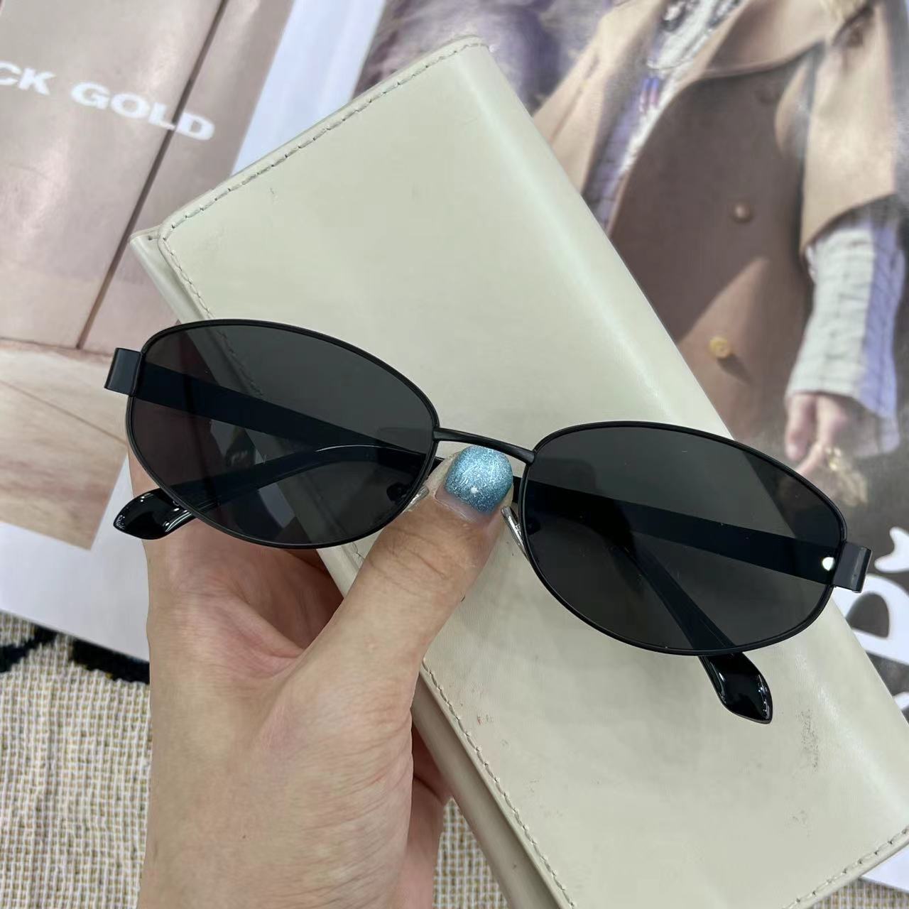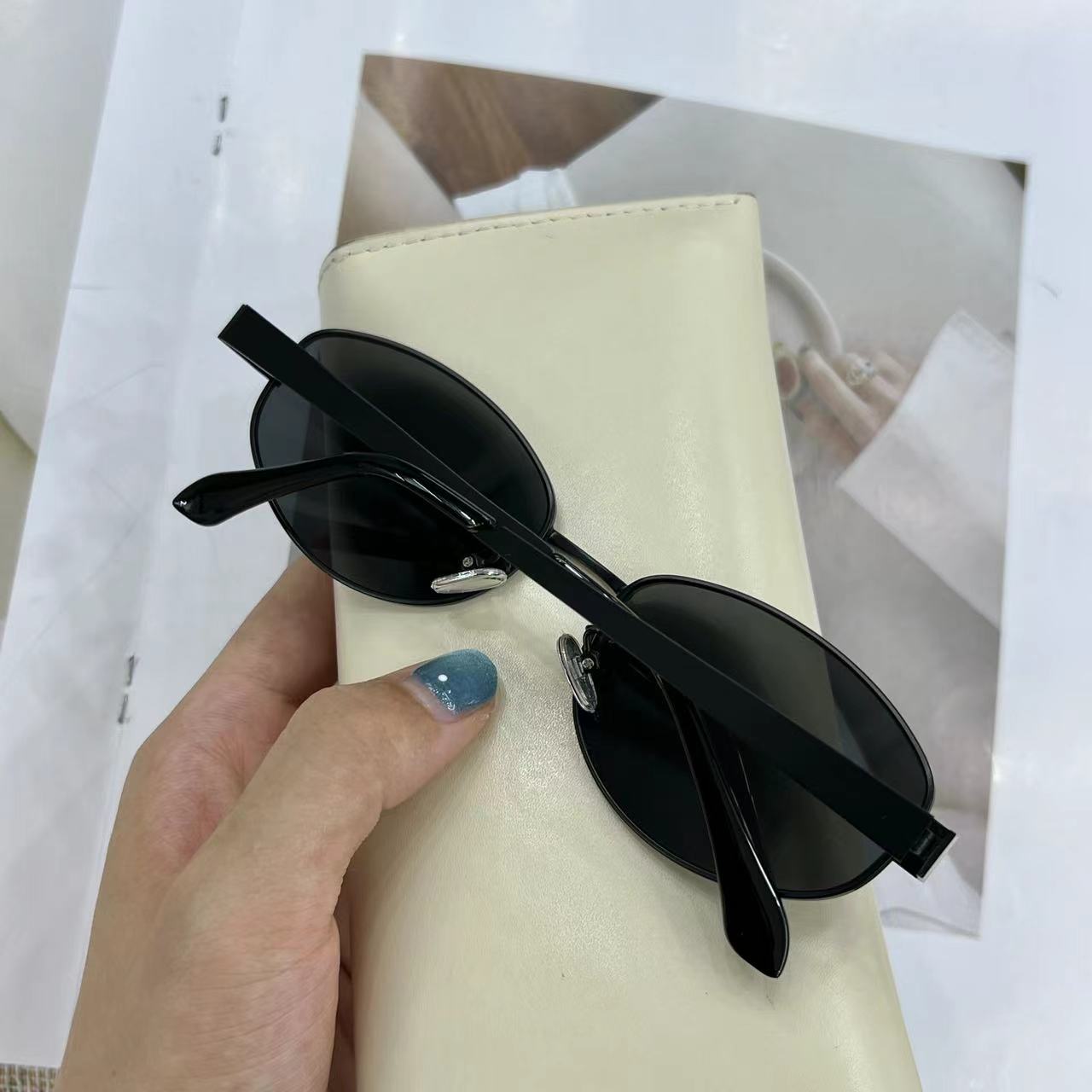 패셔너블한 인스타 감성 선글라스, 여성용 사진 촬영에 어울리는 레트로 타원형 선글라스, 남성용 홍콩 스타일 메탈 프레임, 뉴&올드 머니 스타일 선글라스스토어 가기