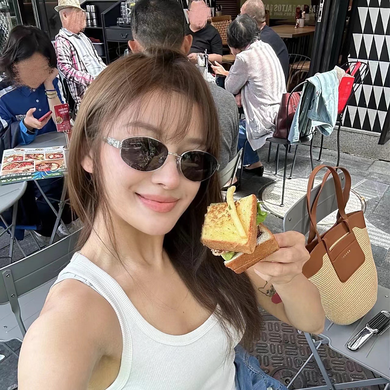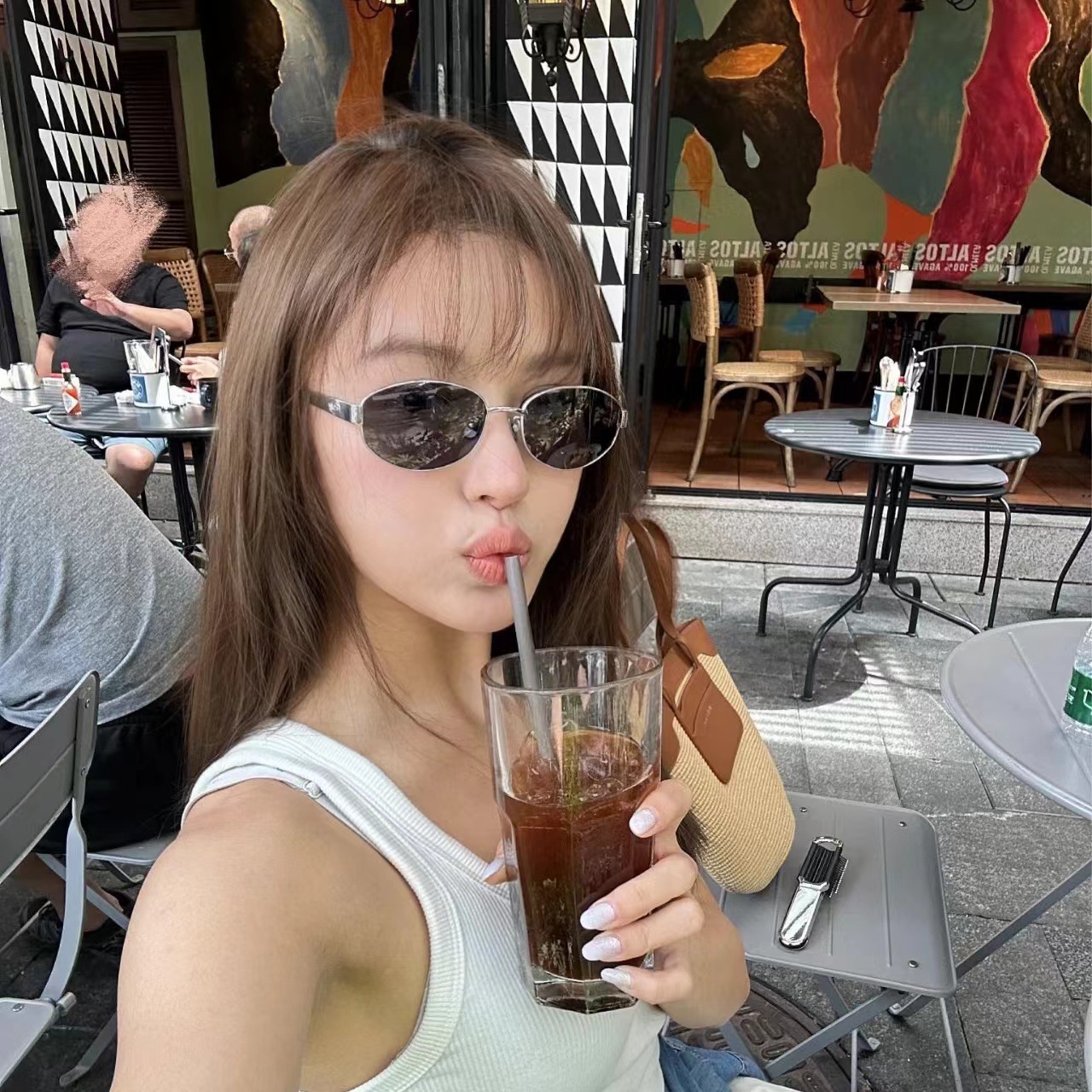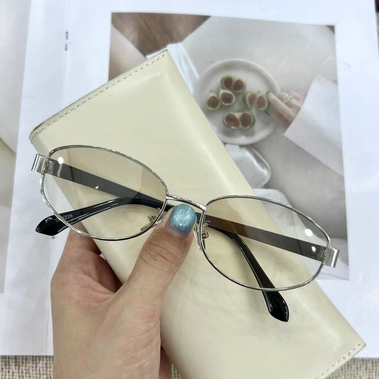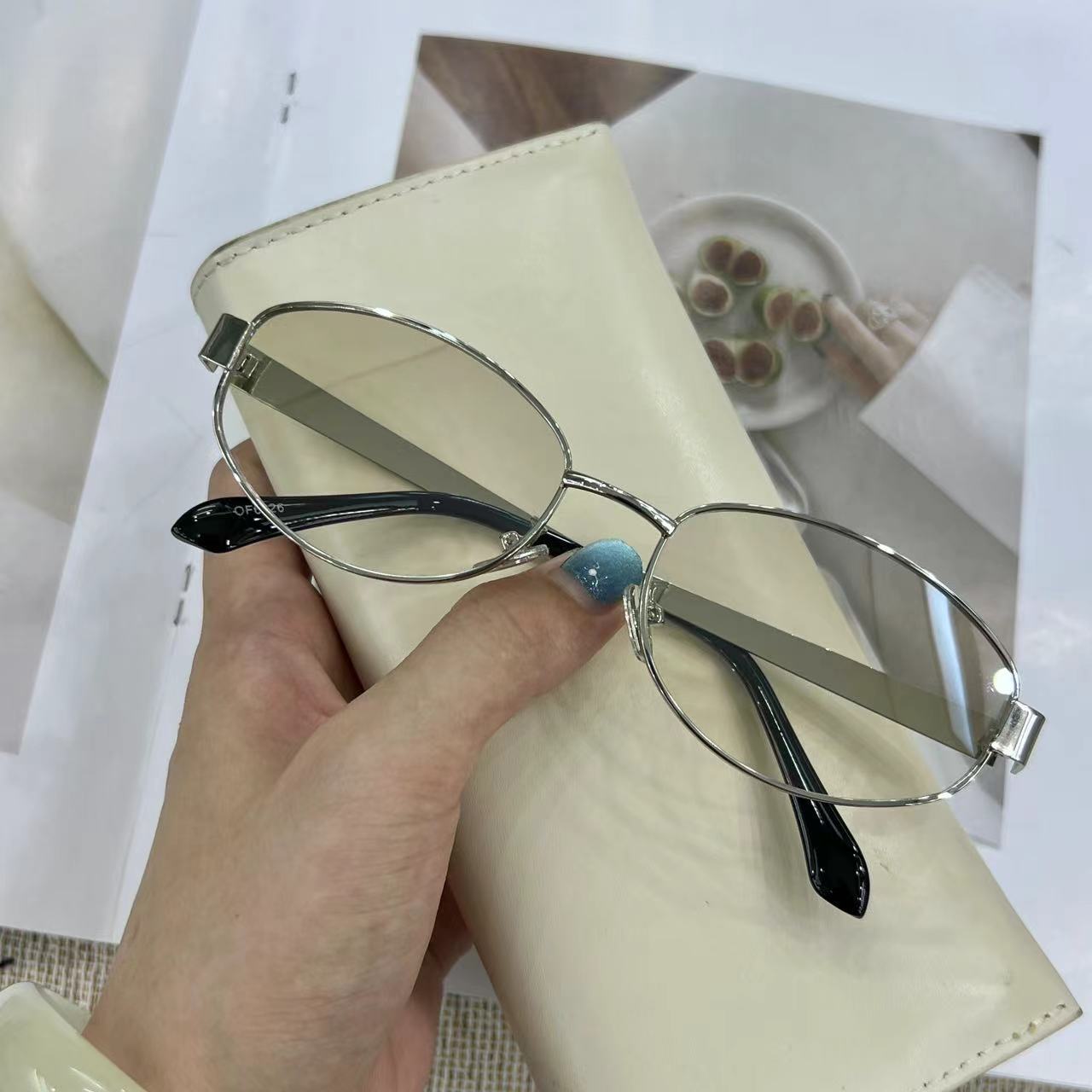 패셔너블한 인스타 감성 선글라스, 여성용 사진 촬영에 어울리는 레트로 타원형 선글라스, 남성용 홍콩 스타일 메탈 프레임, 뉴&올드 머니 스타일 선글라스스토어 가기