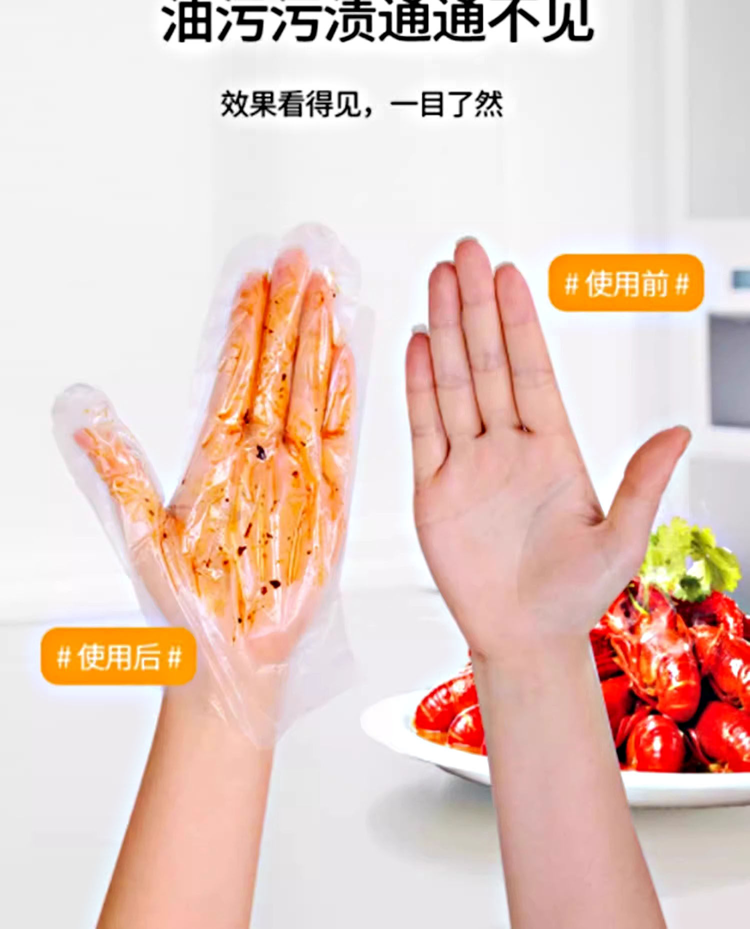 일회용 식품 등급 장갑 두꺼운 식용 랍스터 주방 가정용 상업용 투명 핸드 필름 테이크 아웃 장갑