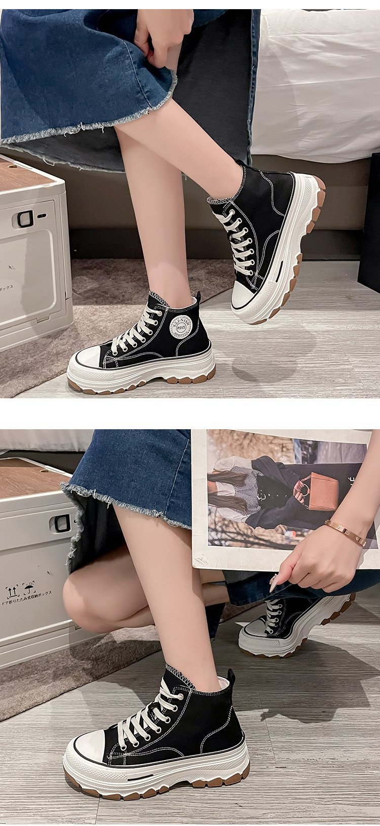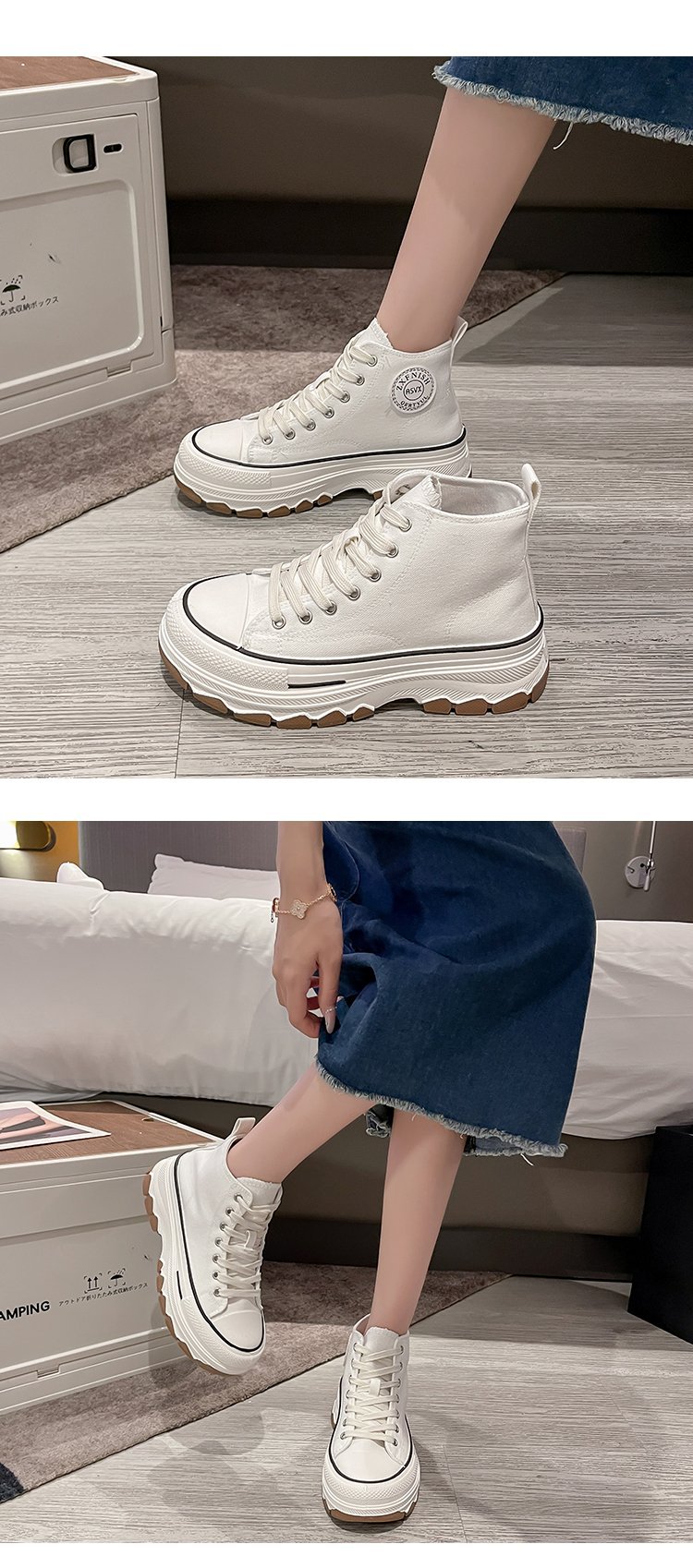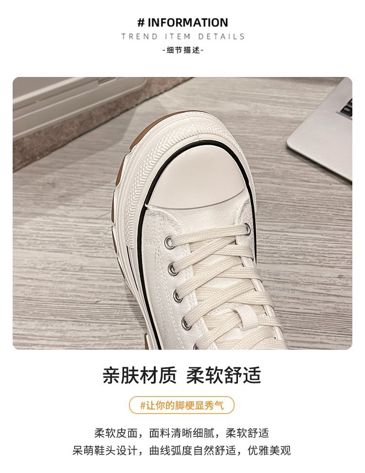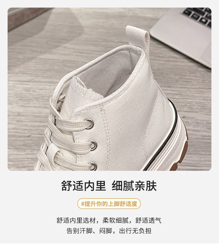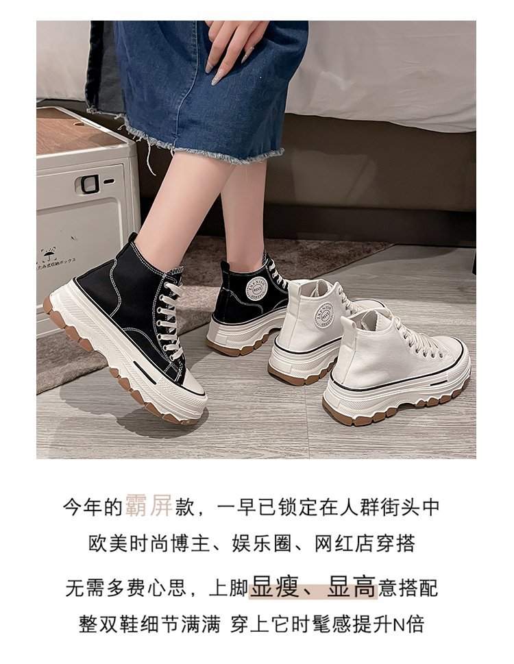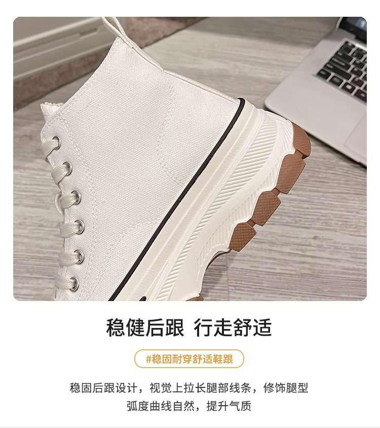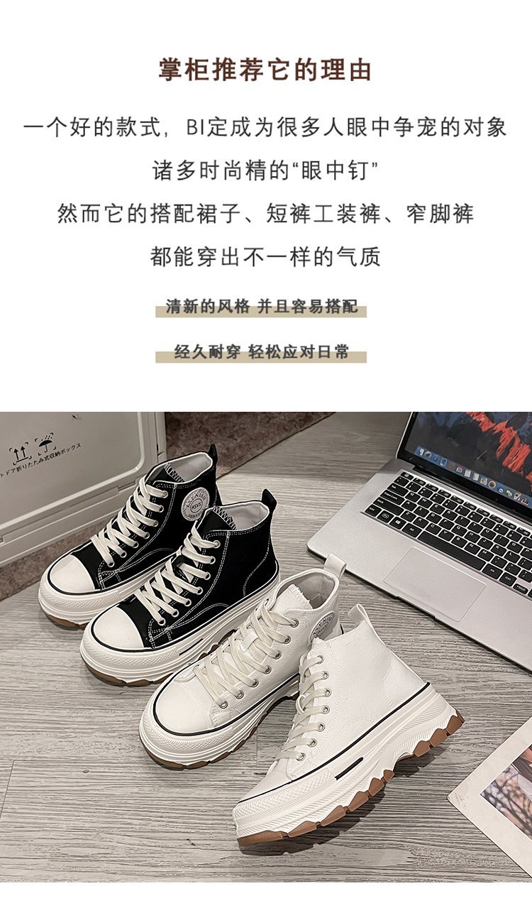 봄 새 캔버스 신발 여학생 하이탑 두꺼운 밑창 흰색 신발 증가 캐주얼 스니커즈 올매치 Ins 싱글 슈즈스토어 가기