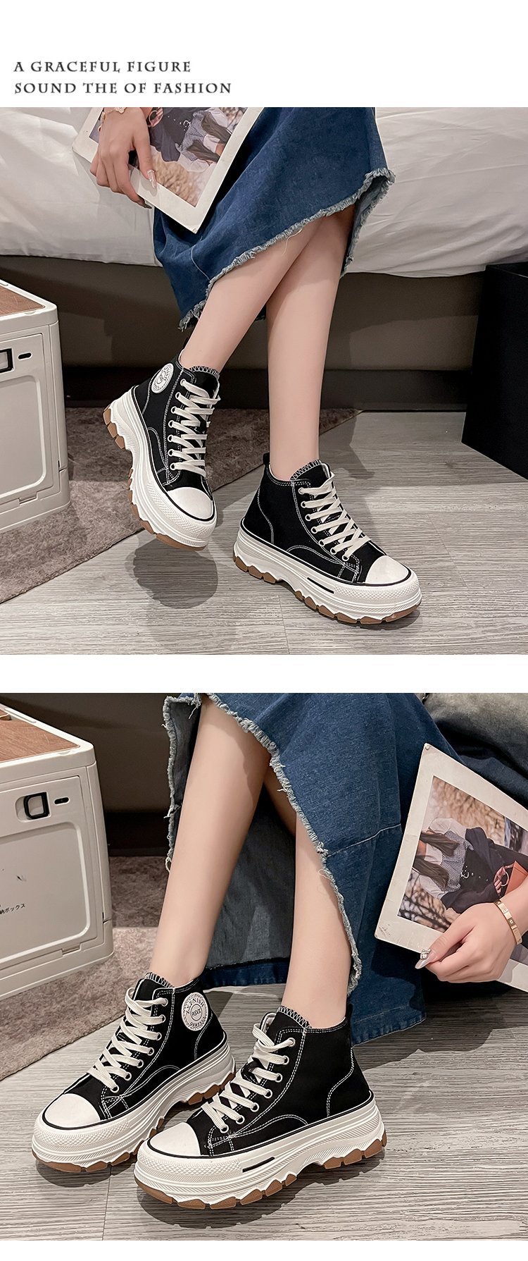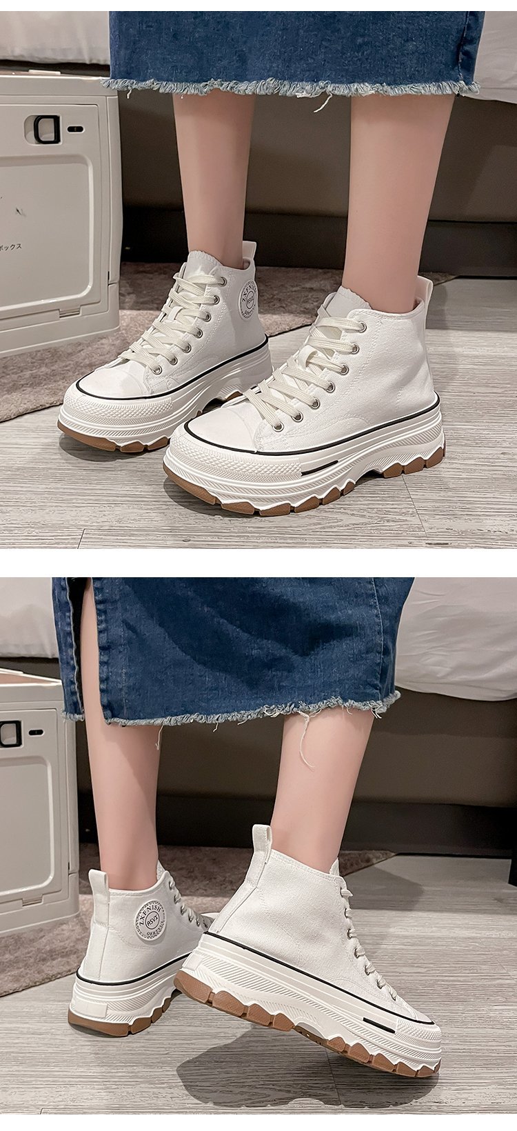 봄 새 캔버스 신발 여학생 하이탑 두꺼운 밑창 흰색 신발 증가 캐주얼 스니커즈 올매치 Ins 싱글 슈즈