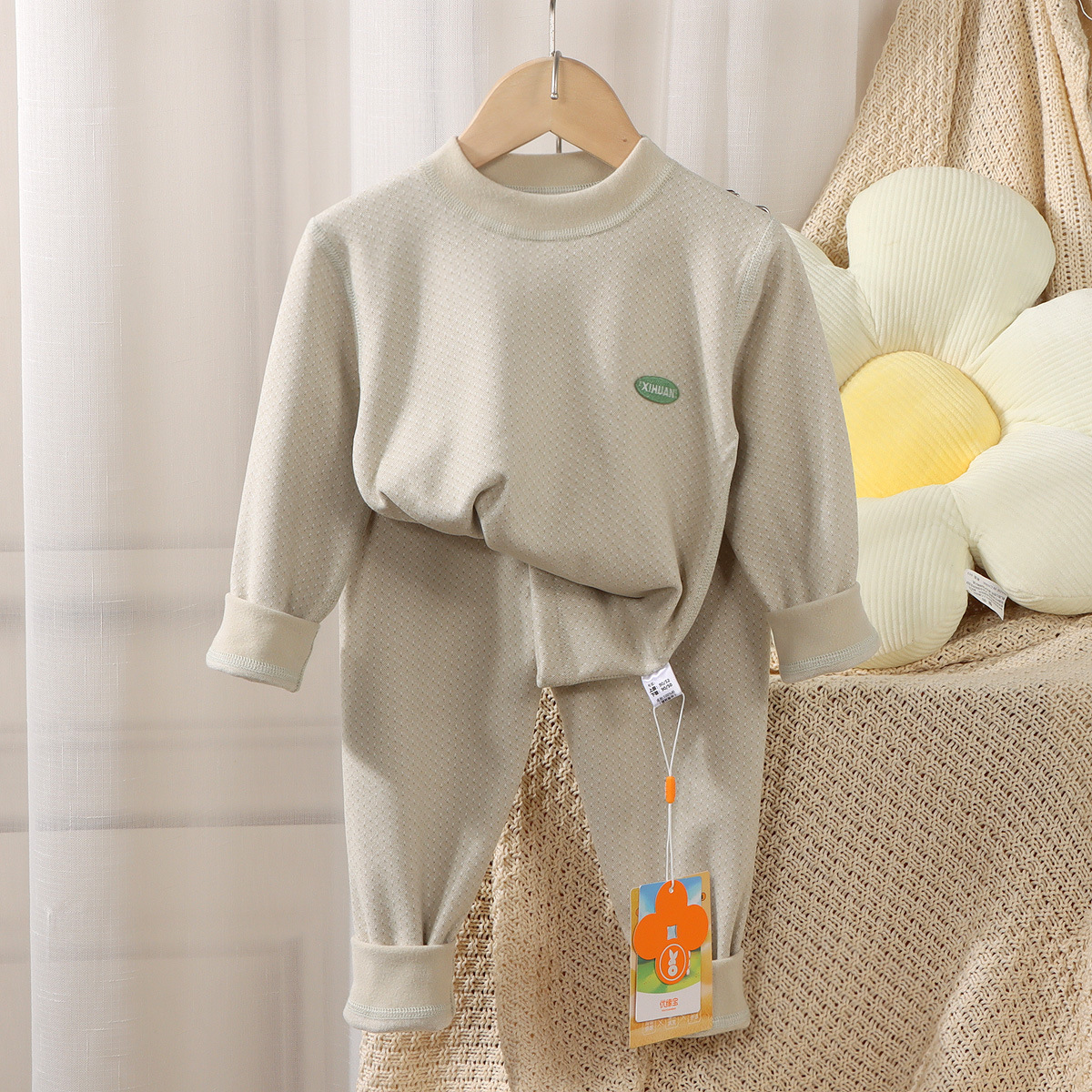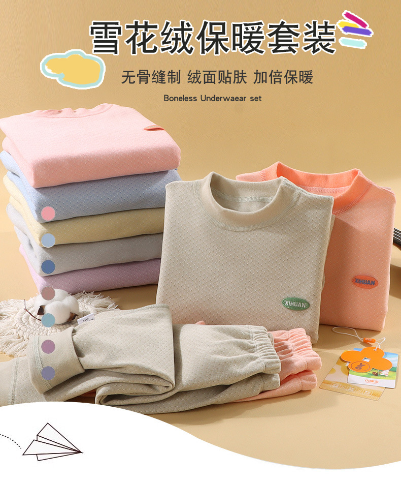 가을과 겨울 새로운 큰 소년과 소녀 뼈없는 눈송이 벨벳 열 속옷 세트스토어 가기