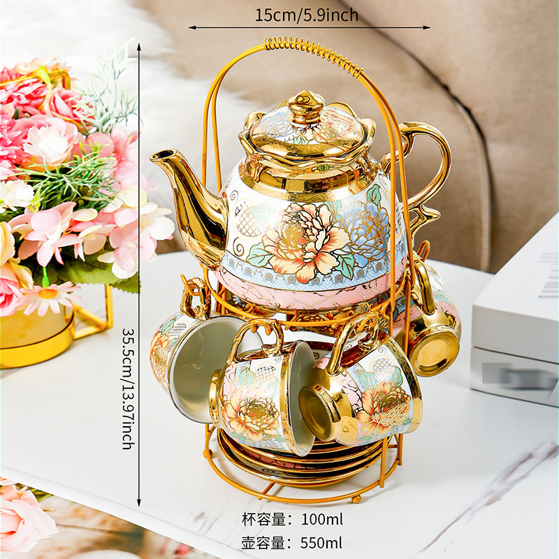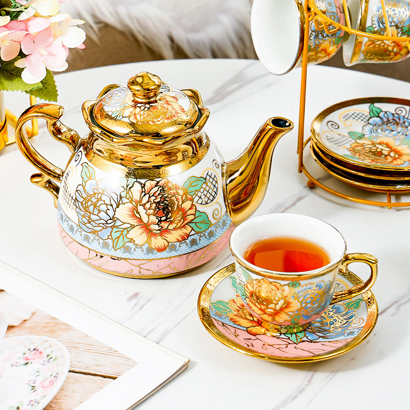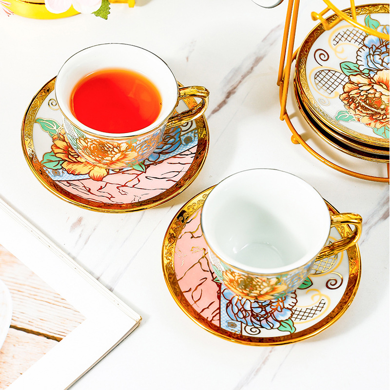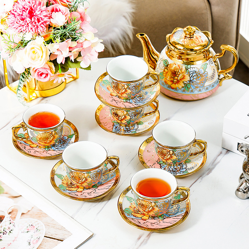 미국 및 유럽 스타일의 고급 수출용 고급 복고풍 고급 섬세한 고급 차 세트 세라믹 커피 컵 세트