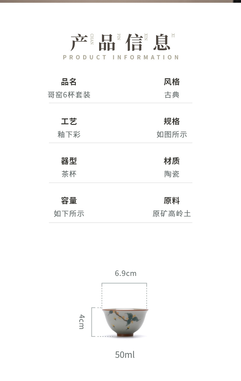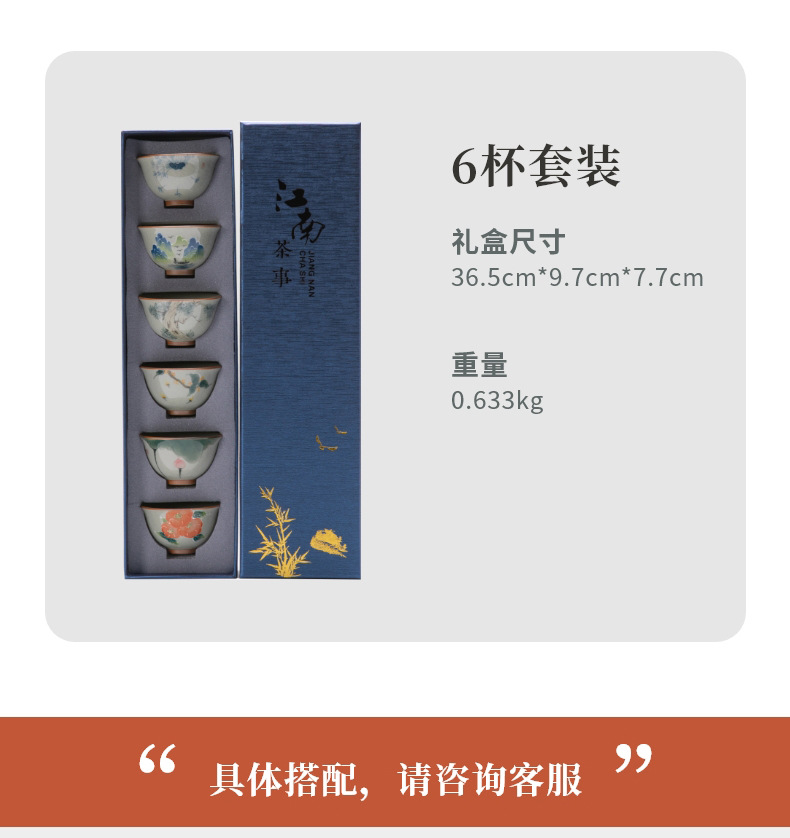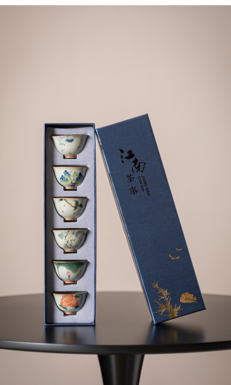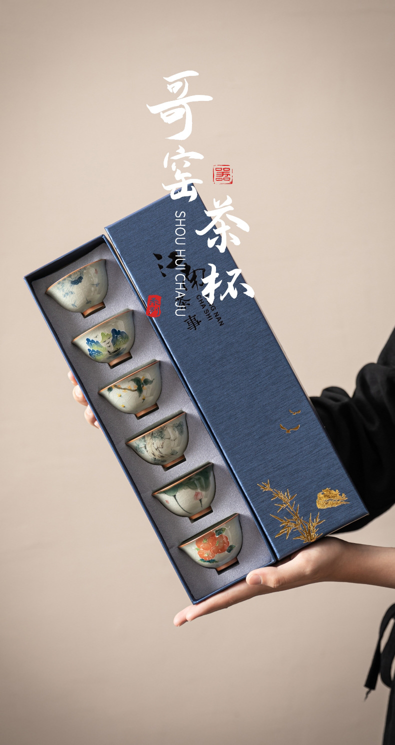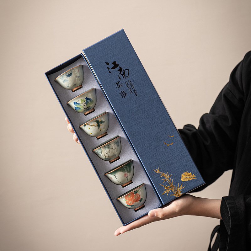 Geyao Tea Cup 6 컵 세트 손으로 그린 쿵푸 차 세트 세라믹 마스터 컵 선물 상자 티 컵 비즈니스 선물