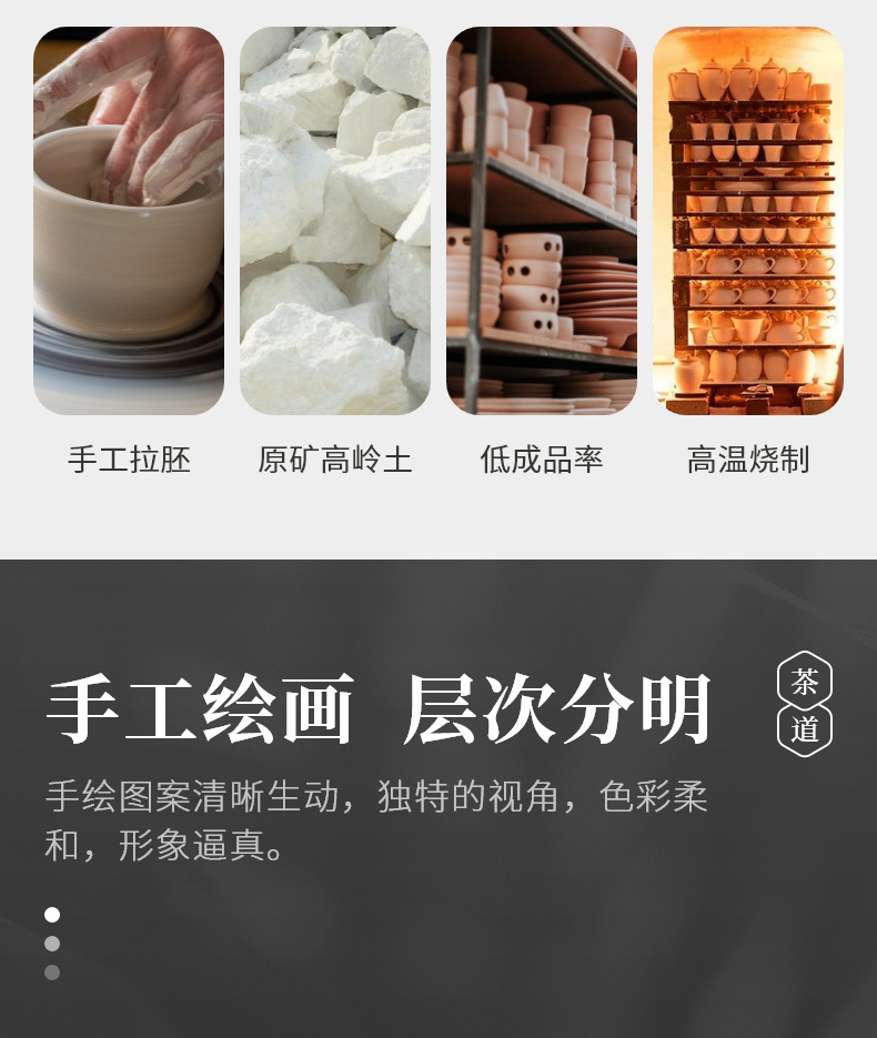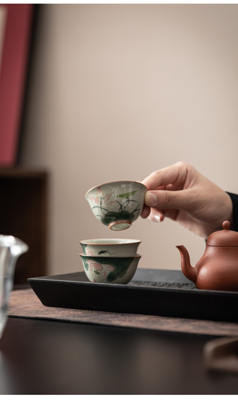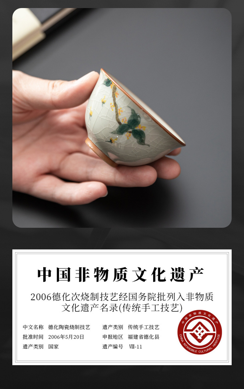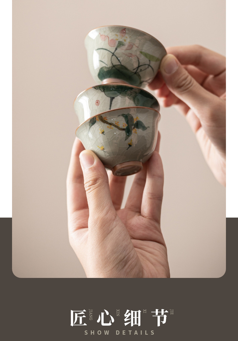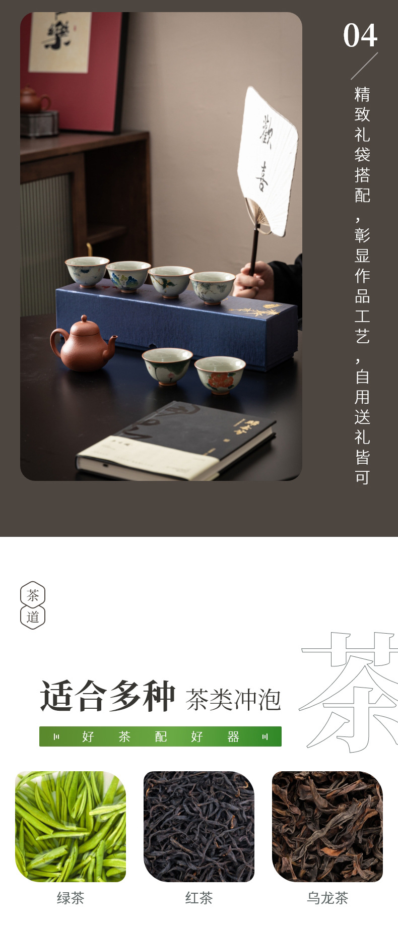 Geyao Tea Cup 6 컵 세트 손으로 그린 쿵푸 차 세트 세라믹 마스터 컵 선물 상자 티 컵 비즈니스 선물