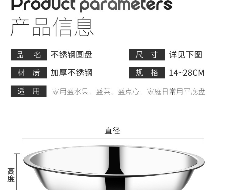 스테인레스 스틸 플레이트 접시 가정용 디스크 얕은 플레이트 창조적 인 만두 플레이트 두꺼운 접시 차가운 피부 접시 디너 플레이트스토어 가기