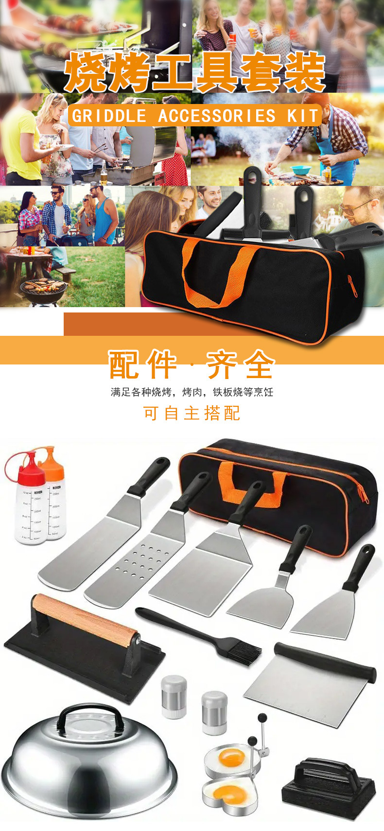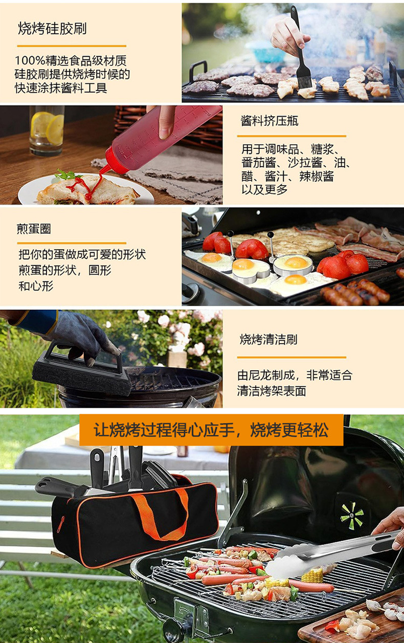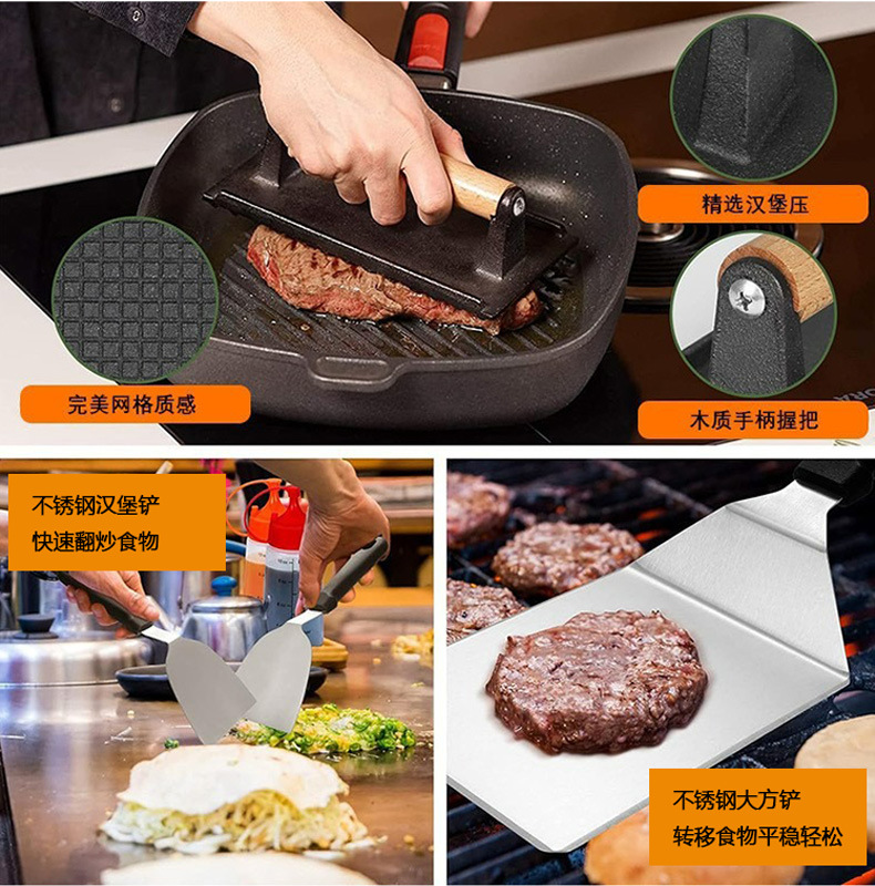 亚马逊跨境热销不锈钢烧烤工具套装 料理铲组合烤具户外露营BBQ烧烤套装Griddle Accessories Kit 烧烤配件