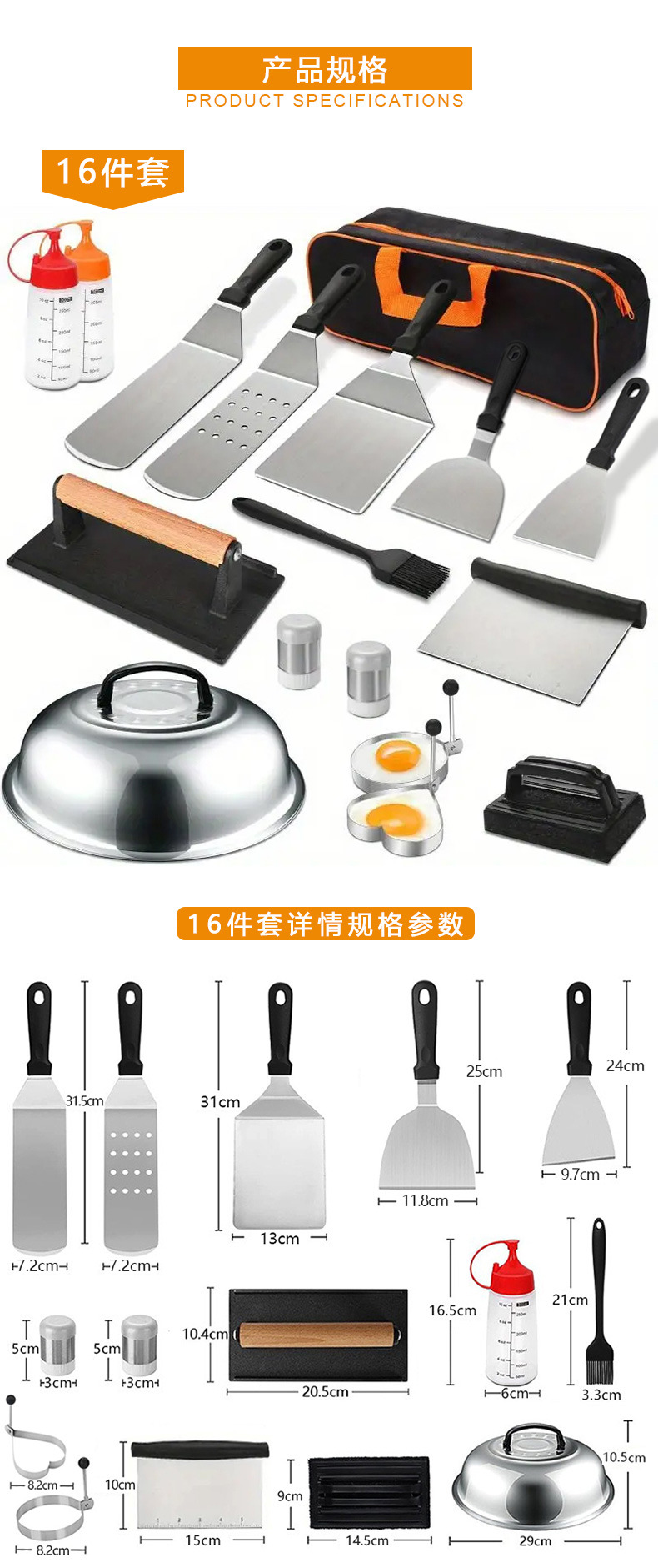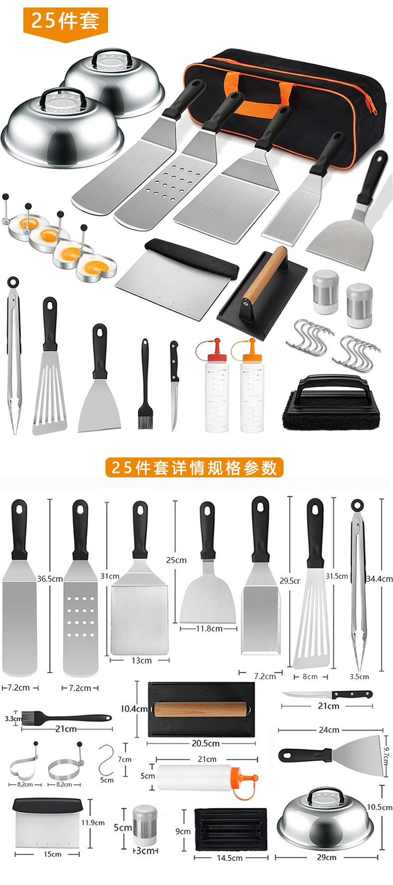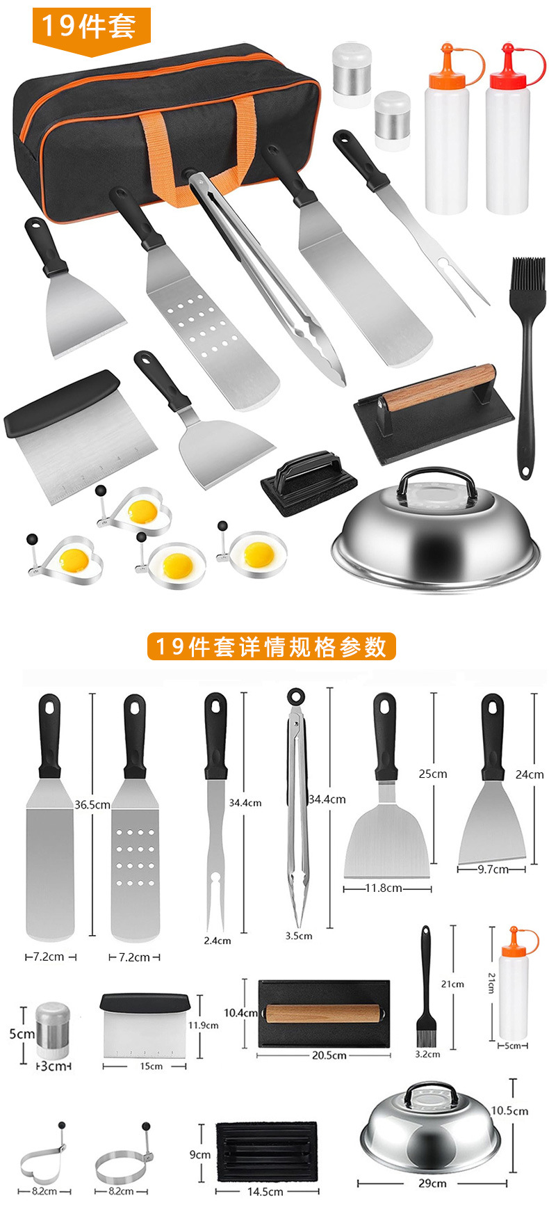 亚马逊跨境热销不锈钢烧烤工具套装 料理铲组合烤具户外露营BBQ烧烤套装Griddle Accessories Kit 烧烤配件