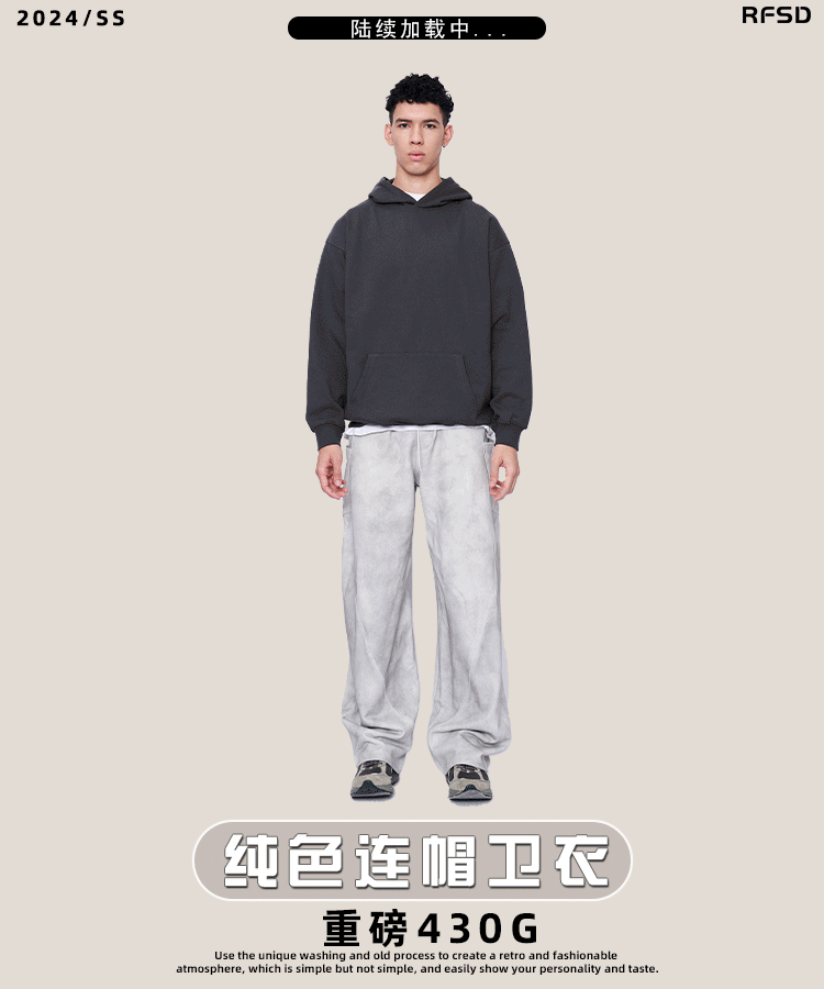 RFSD 남성복 | 가을/겨울 2024 무거운 미국 조수 브랜드 솔리드 컬러 후드 착용 느슨한 두꺼운 착용 세트 남성스토어 가기