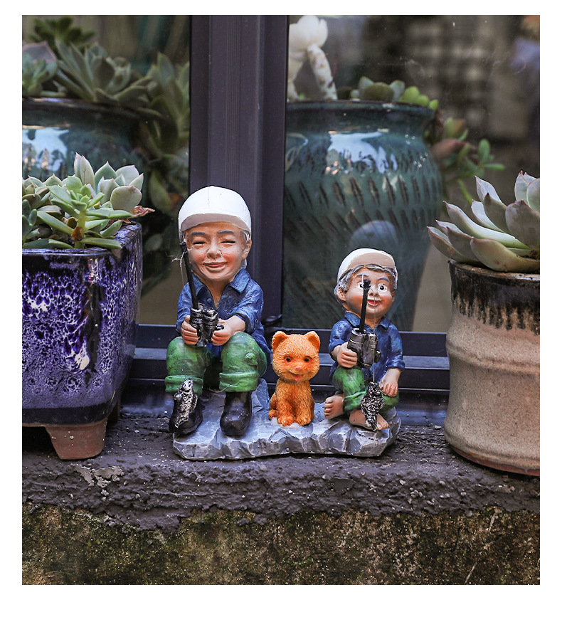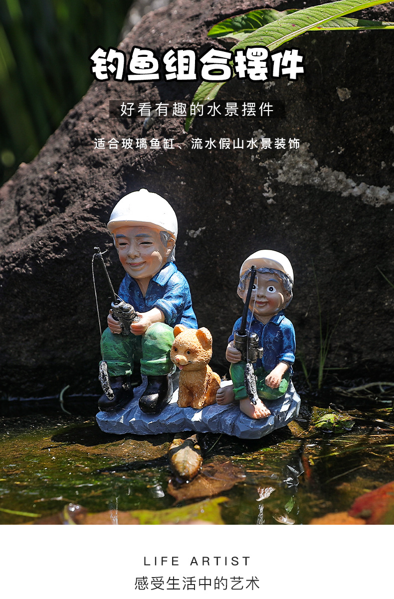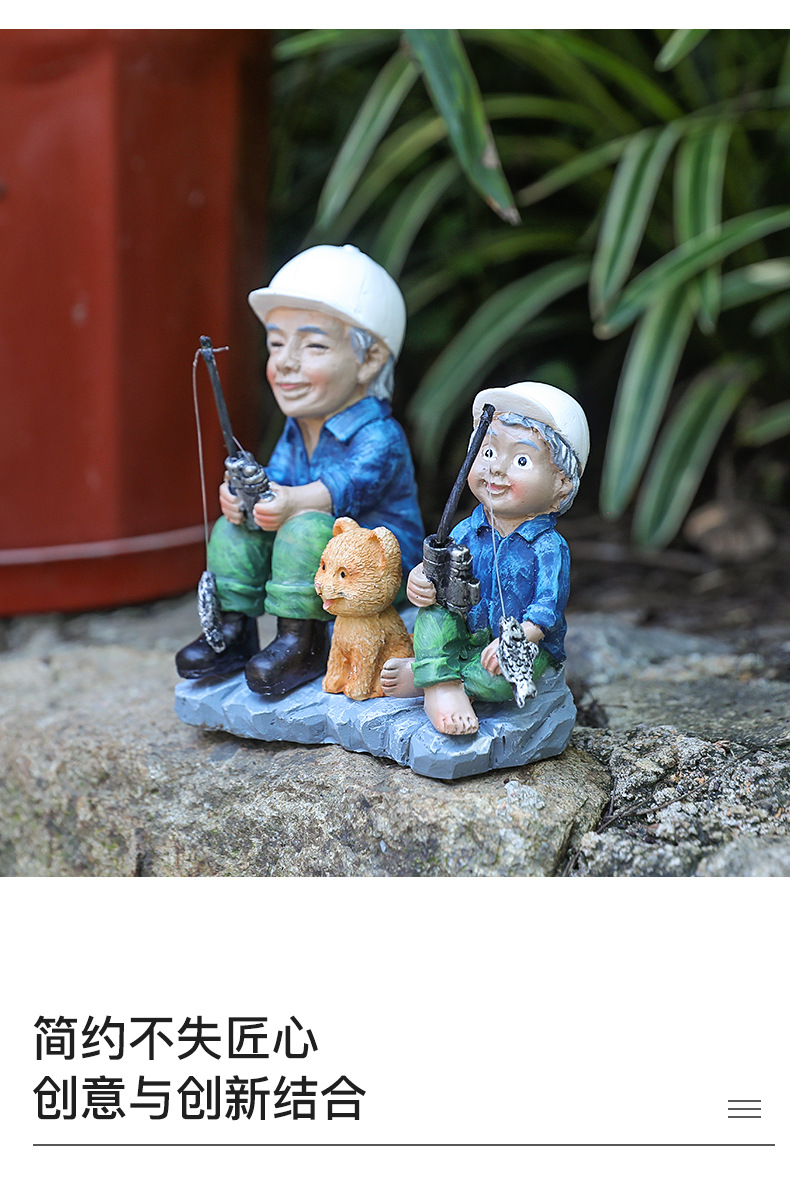 국경 간 신제품 북유럽 창조적 인 아버지-아들 낚시 수지 어류 탱크 조경 장식 정원 화분 풍경 장식품스토어 가기