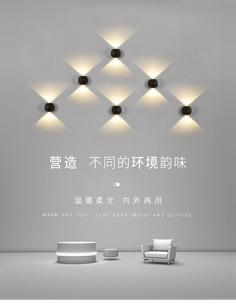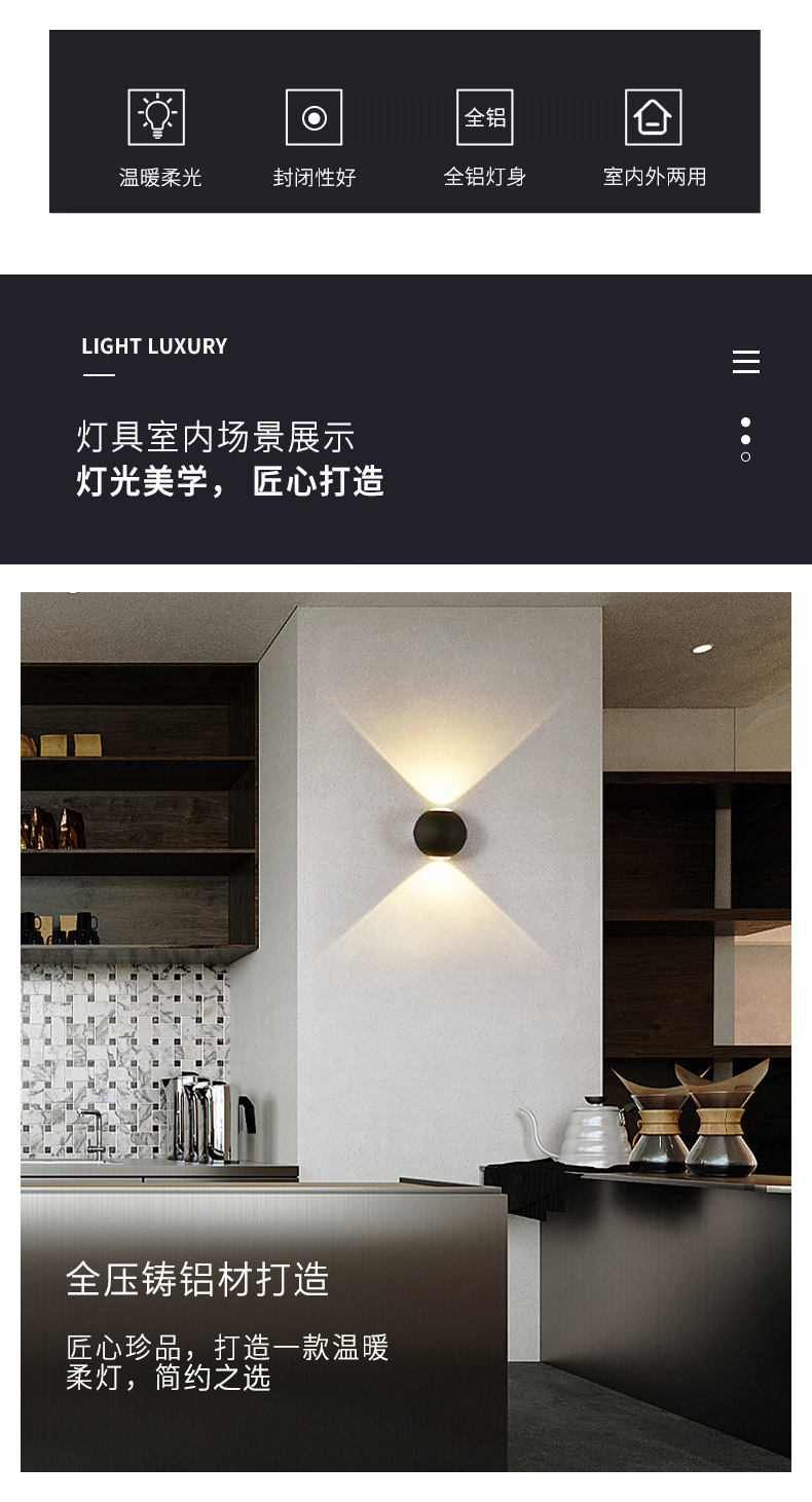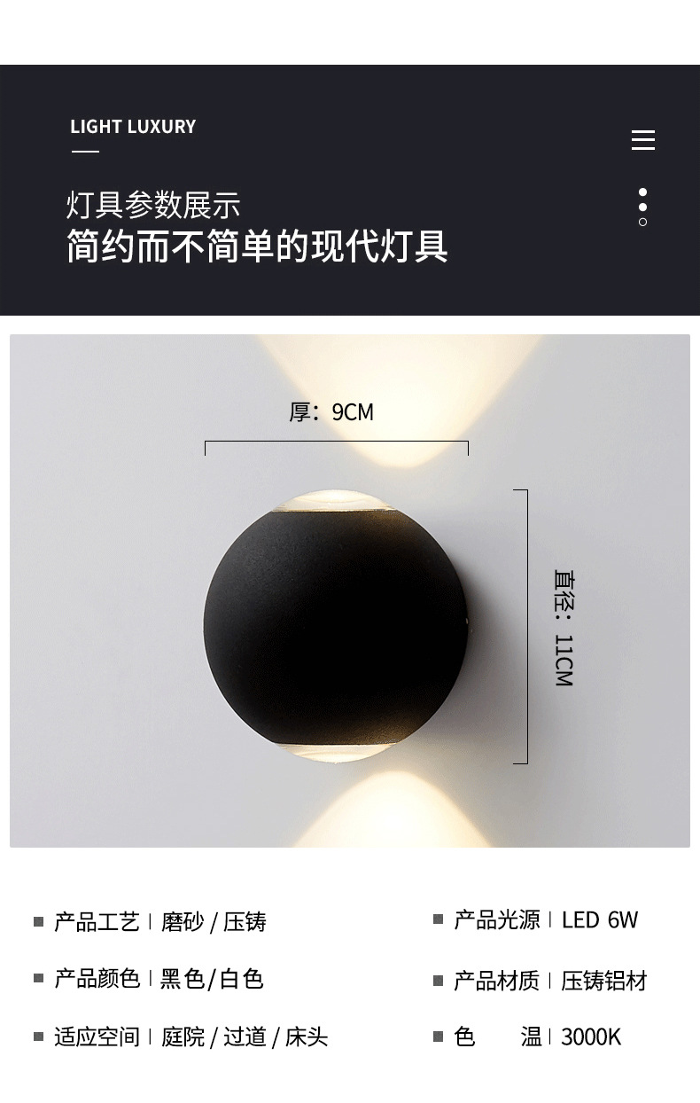 간단한 야외 방수 벽 램프 호텔 통로 빛 복도 빛 계단 정원 위아래로 빛나는 침실 장식 벽 조명