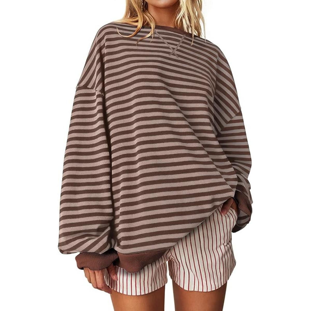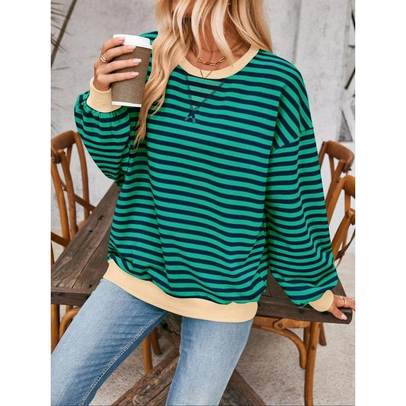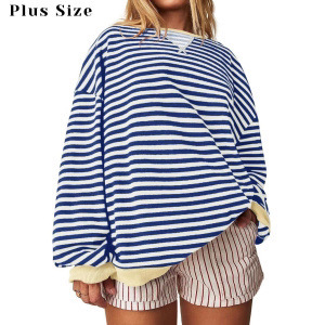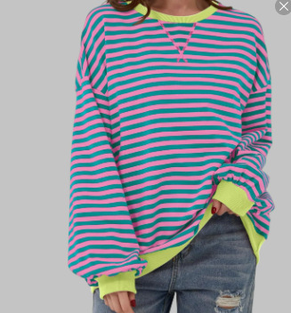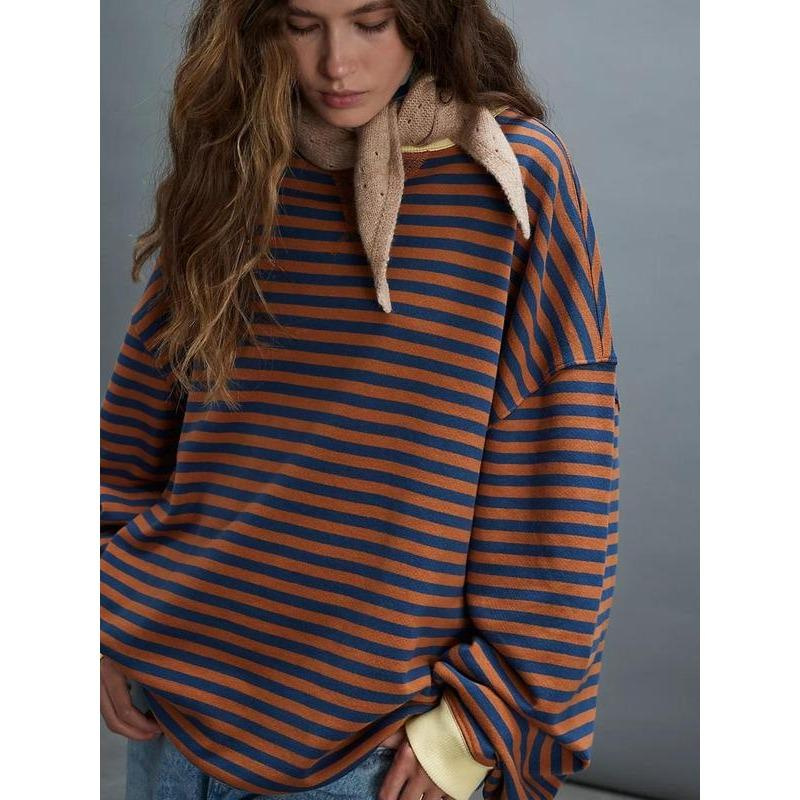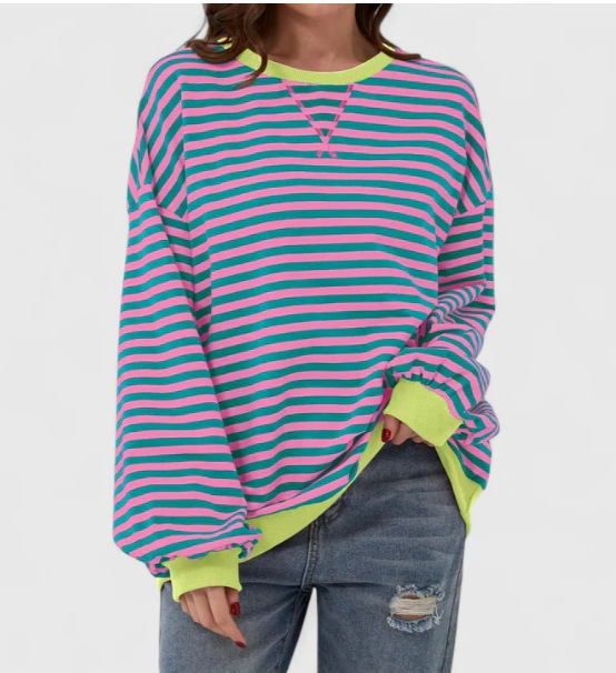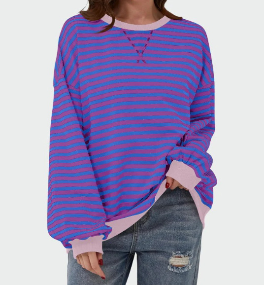 2024 년 가을과 겨울 아마존 TIKTOK 독립 역 유럽과 미국 국경 여성 느슨한 캐주얼 스트라이프 여성